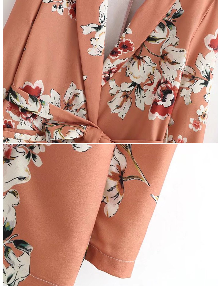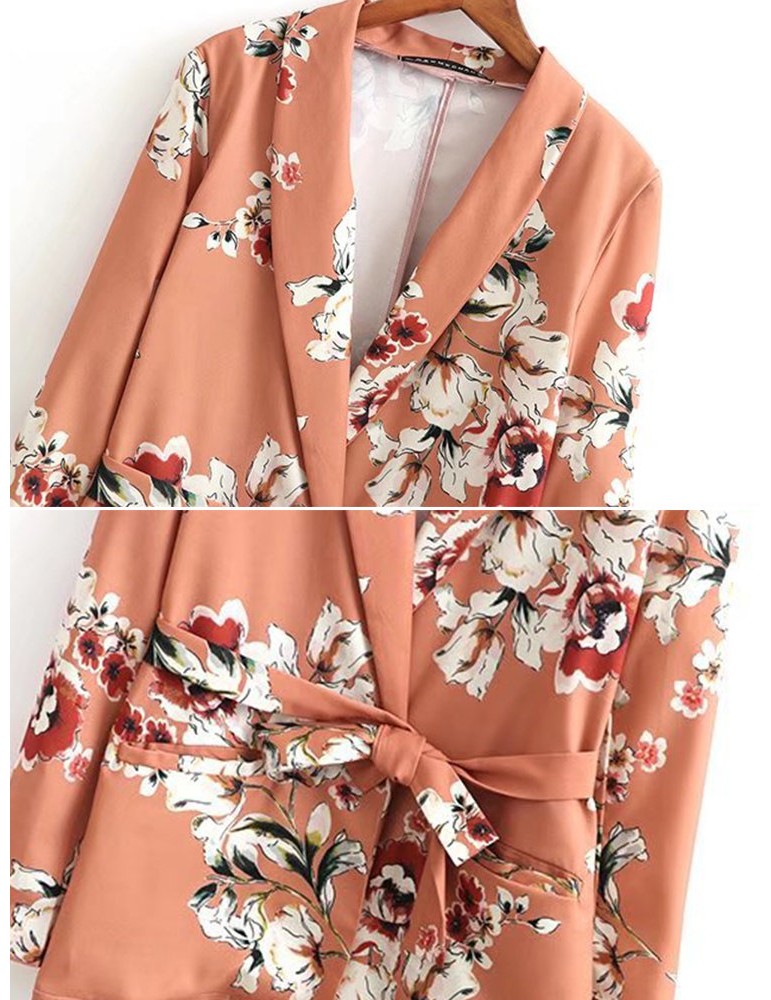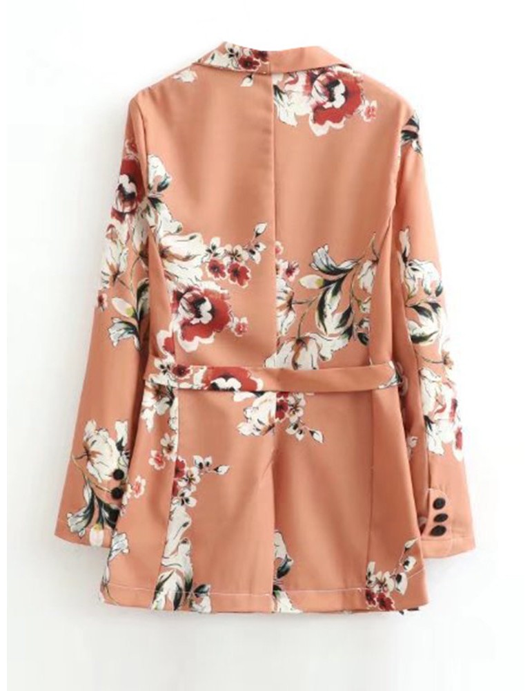 Vintage Floral Print Tie Waist Lapel Long Sleeve Women Jackets