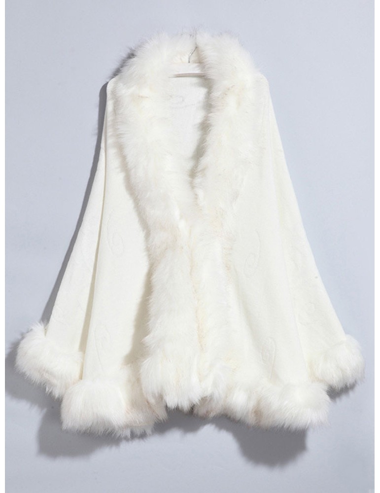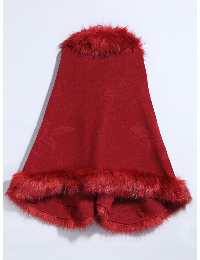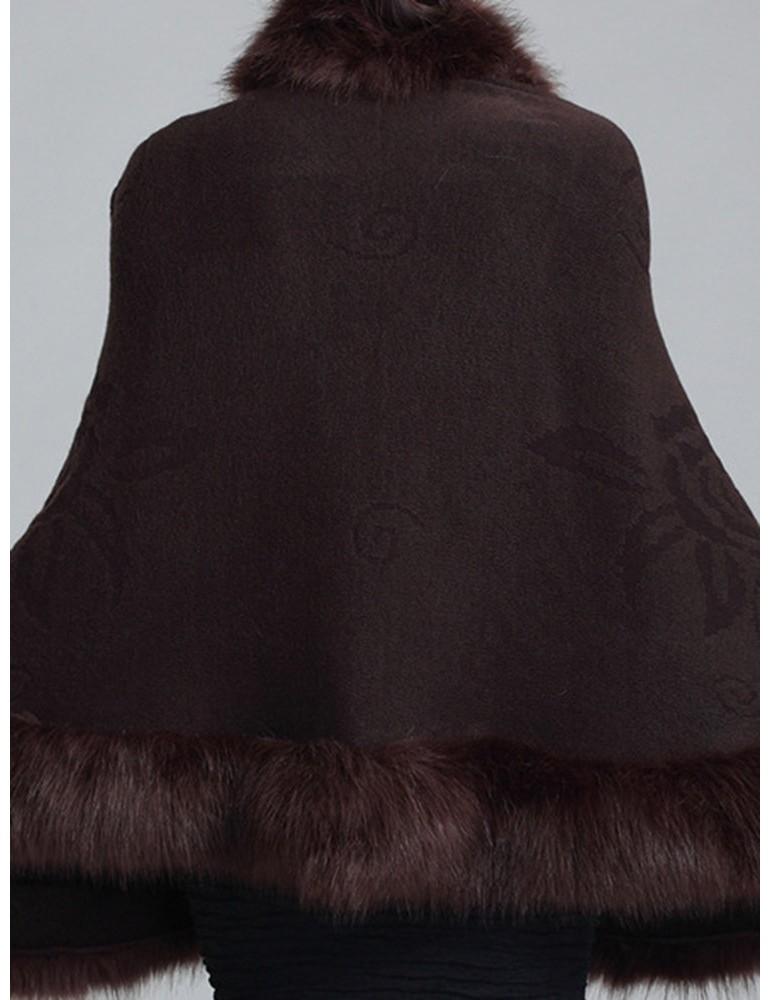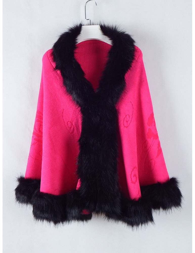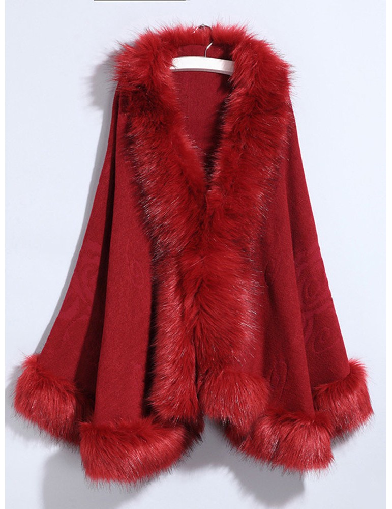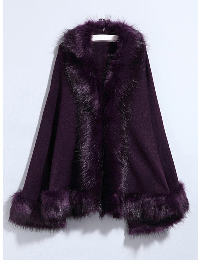 Women Faux Fur Collar Knitted Shawl Cloak Coats