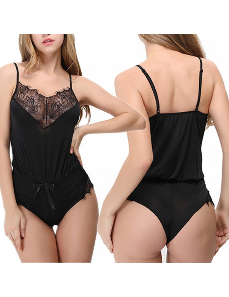 Sexy Perspective Eyelash Sleeveless Nightwear Sling Backless Seducing Teddies