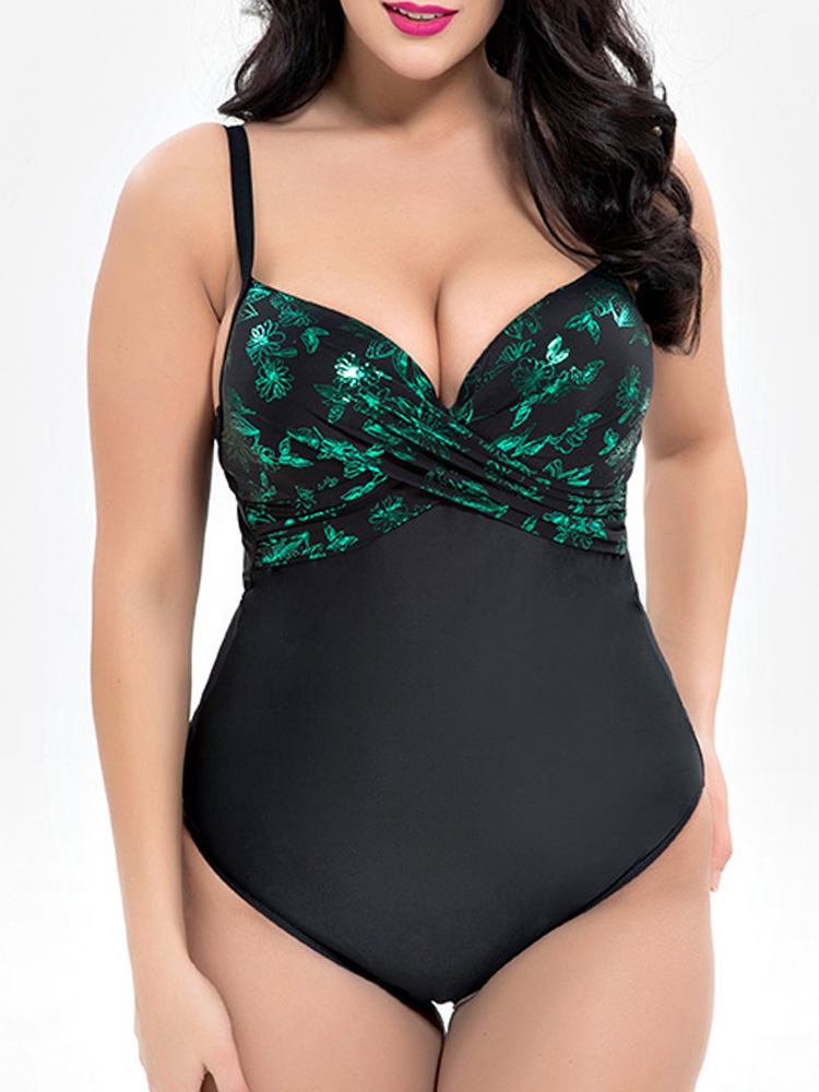 Plus Size Flattering Fit Strap Backless One Piece Swimsuit Swimwear For Women