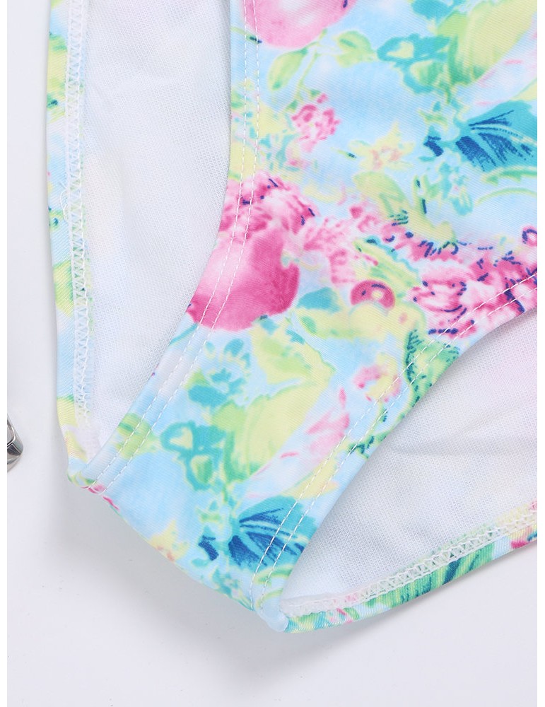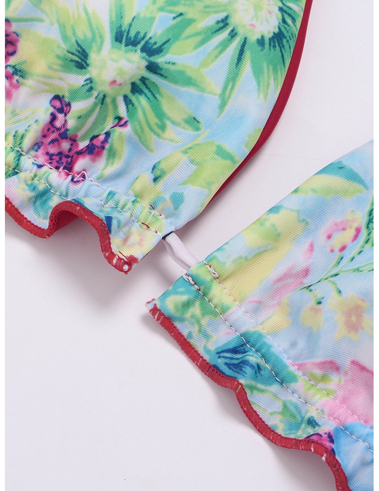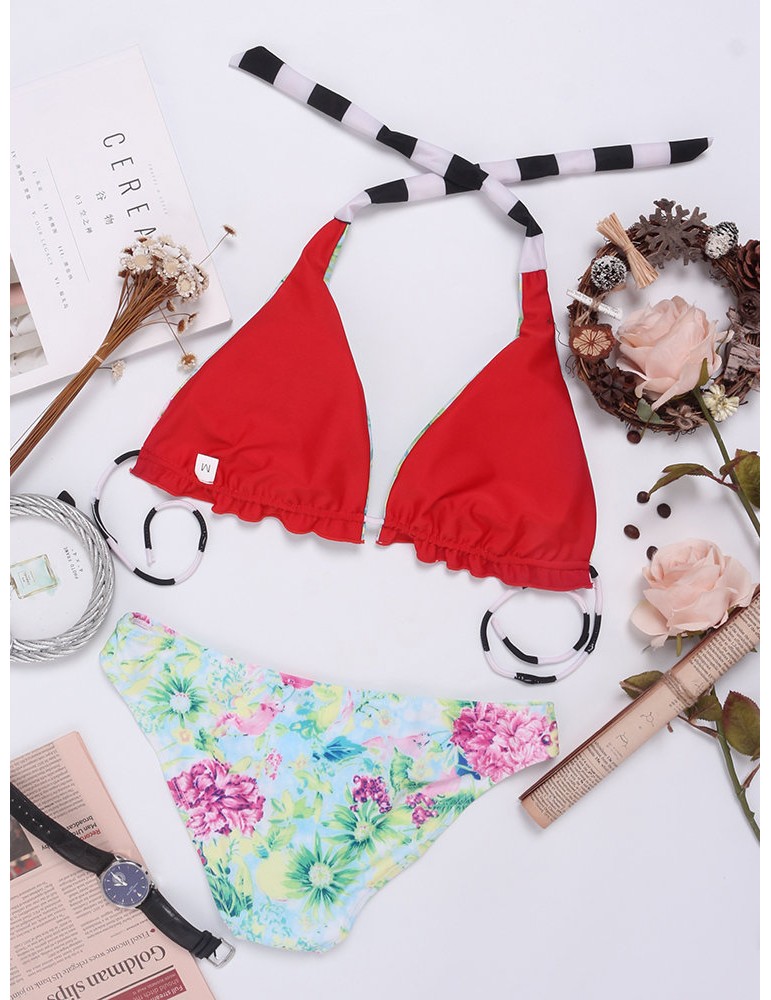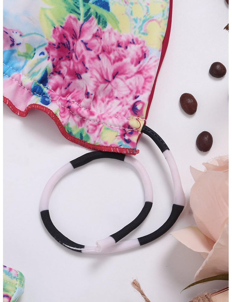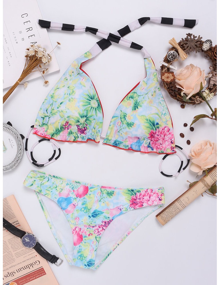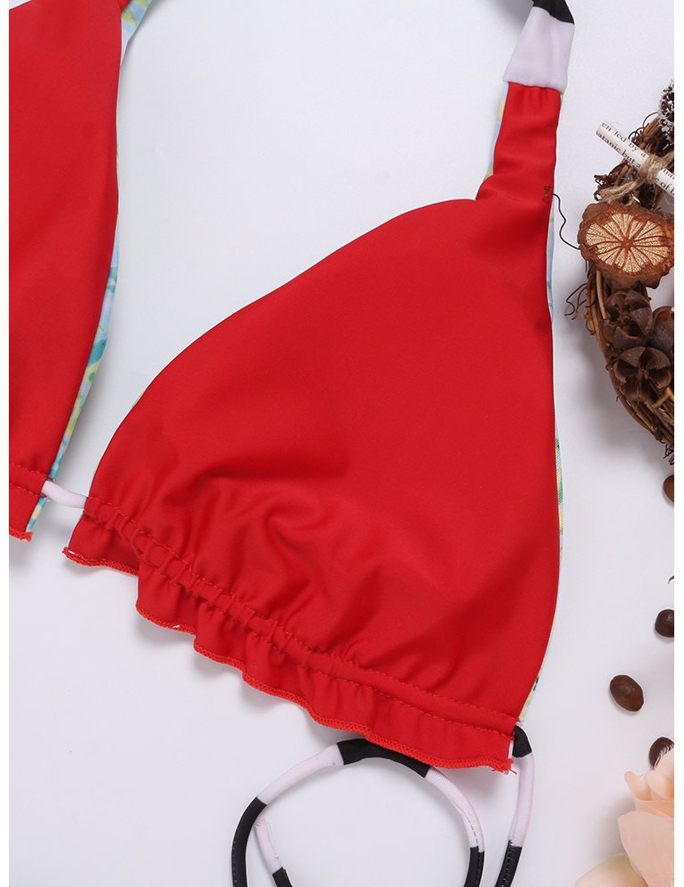 Printed Halter String Flounce Backless Sexy Low Waist Bikinis Swimsuits For Women