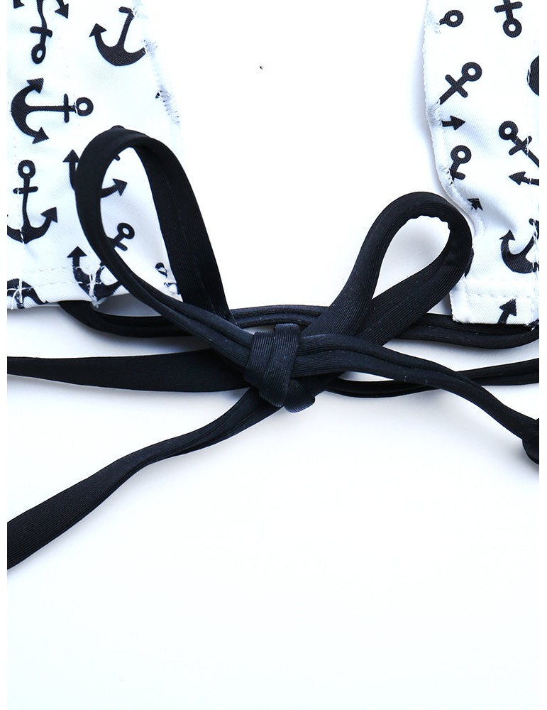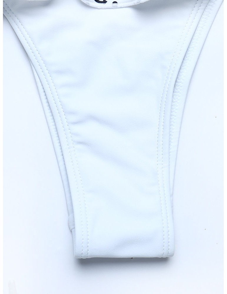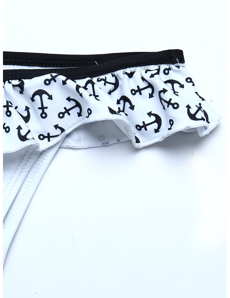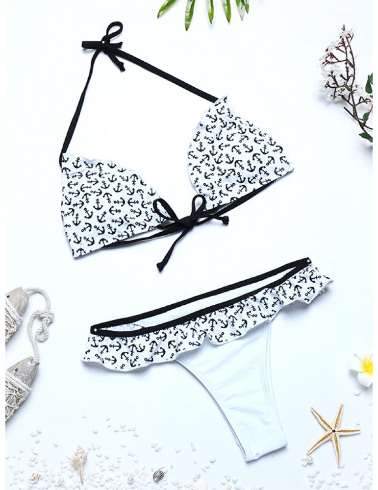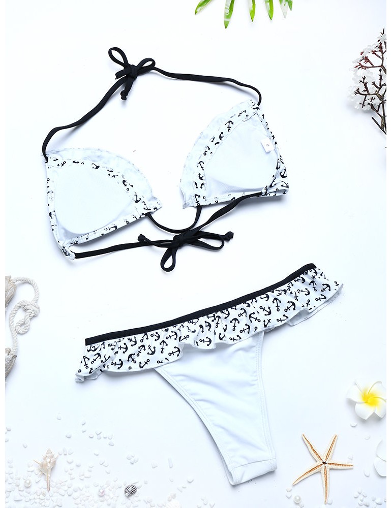 Printed Flounce Halter Sexy Bikinis Thong Scoop Back String Swimsuits For Women