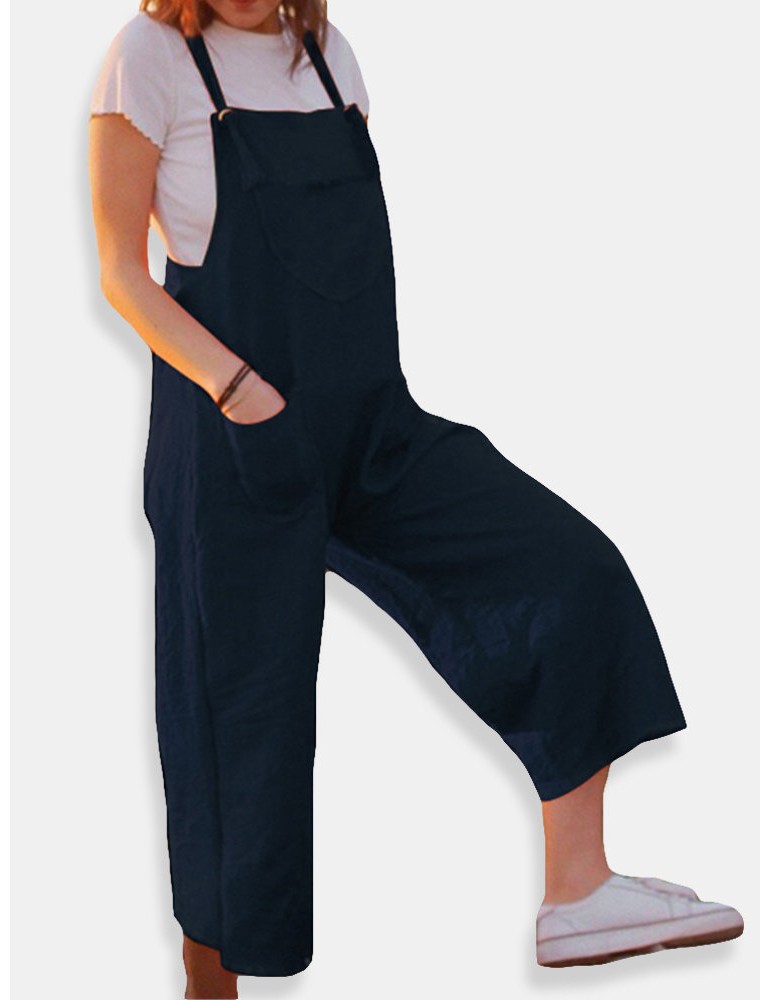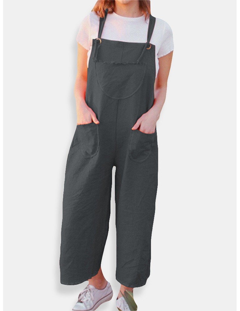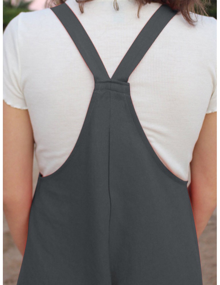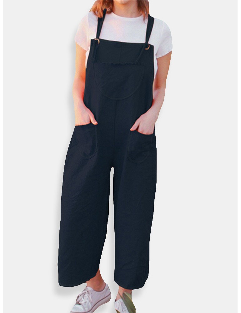 Wide Leg Pockets Solid Color Straps Jumpsuit