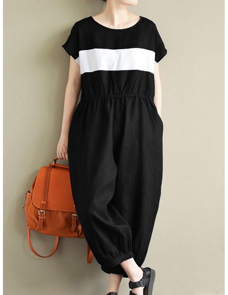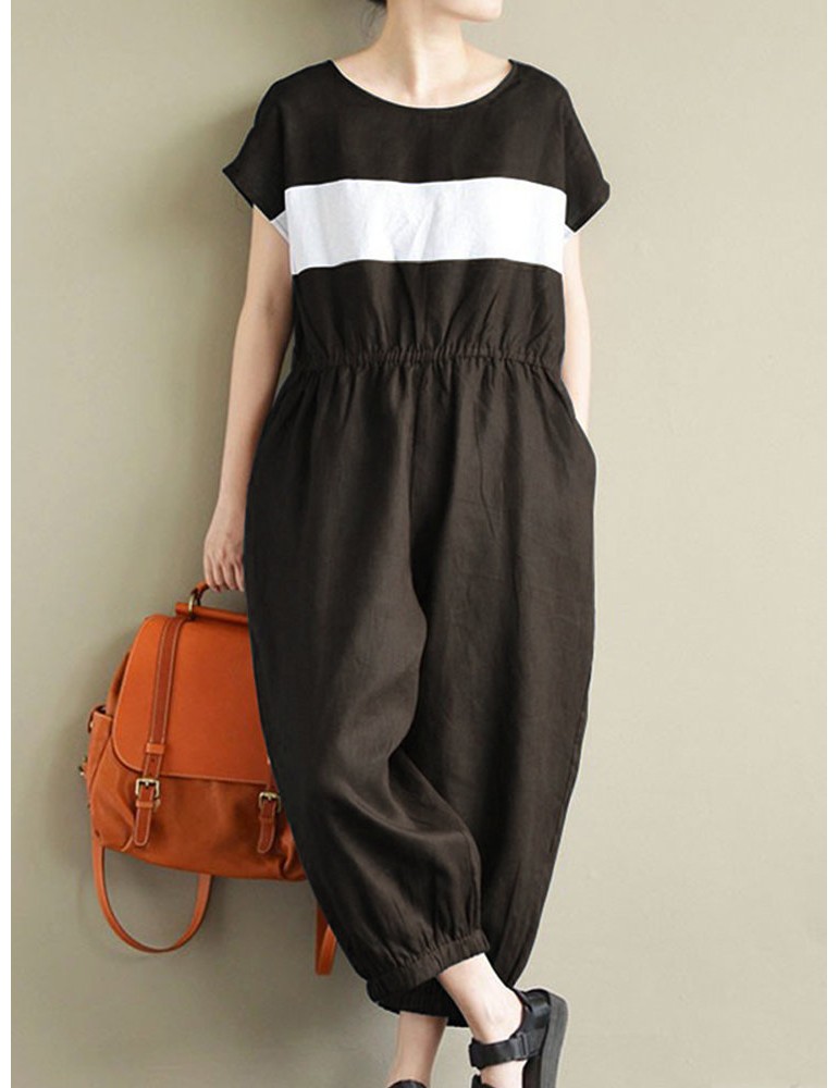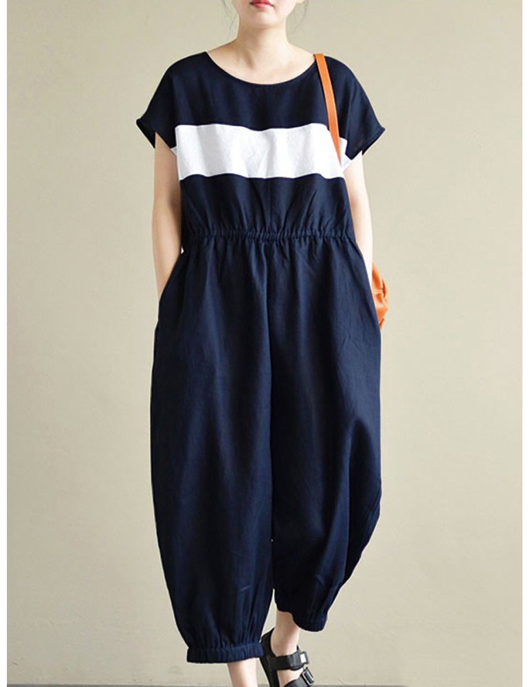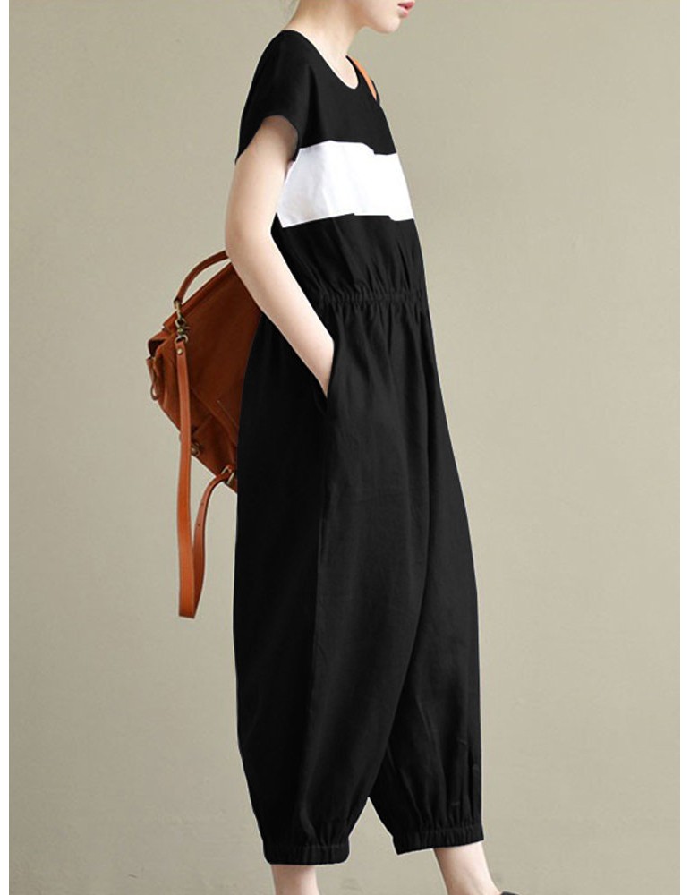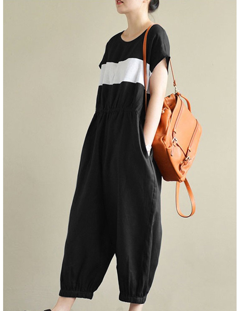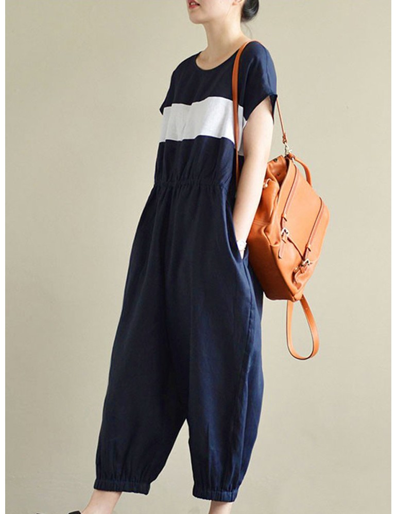 Stripe Casual Overalls Bib Cargo Pants Short Sleeve Long Jumpsuits