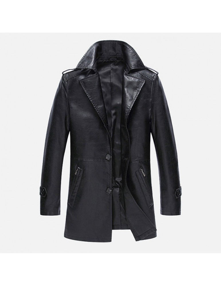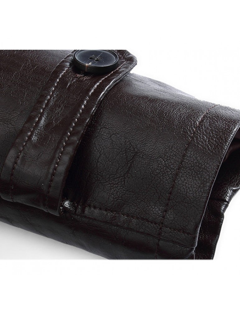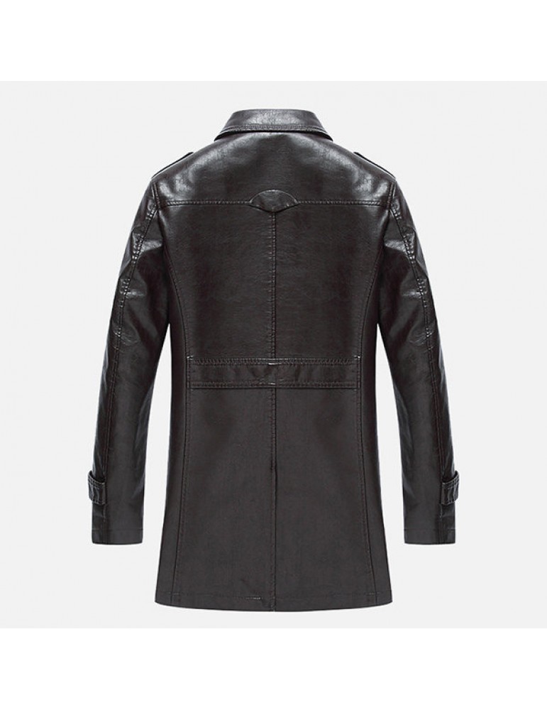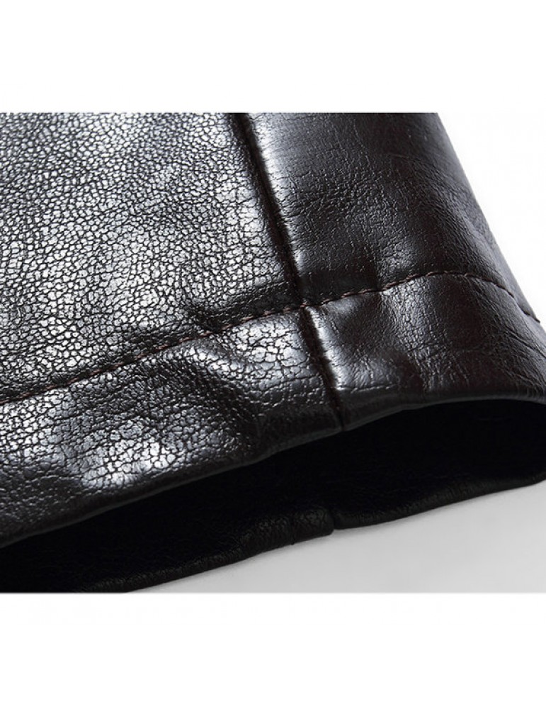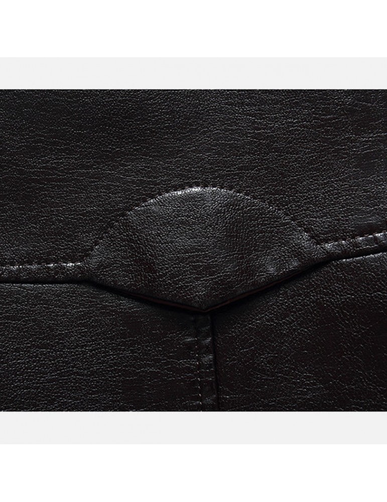 Lapel Collar Solid Color Motorcycle Epaulet Faux Leather Jacket for Men