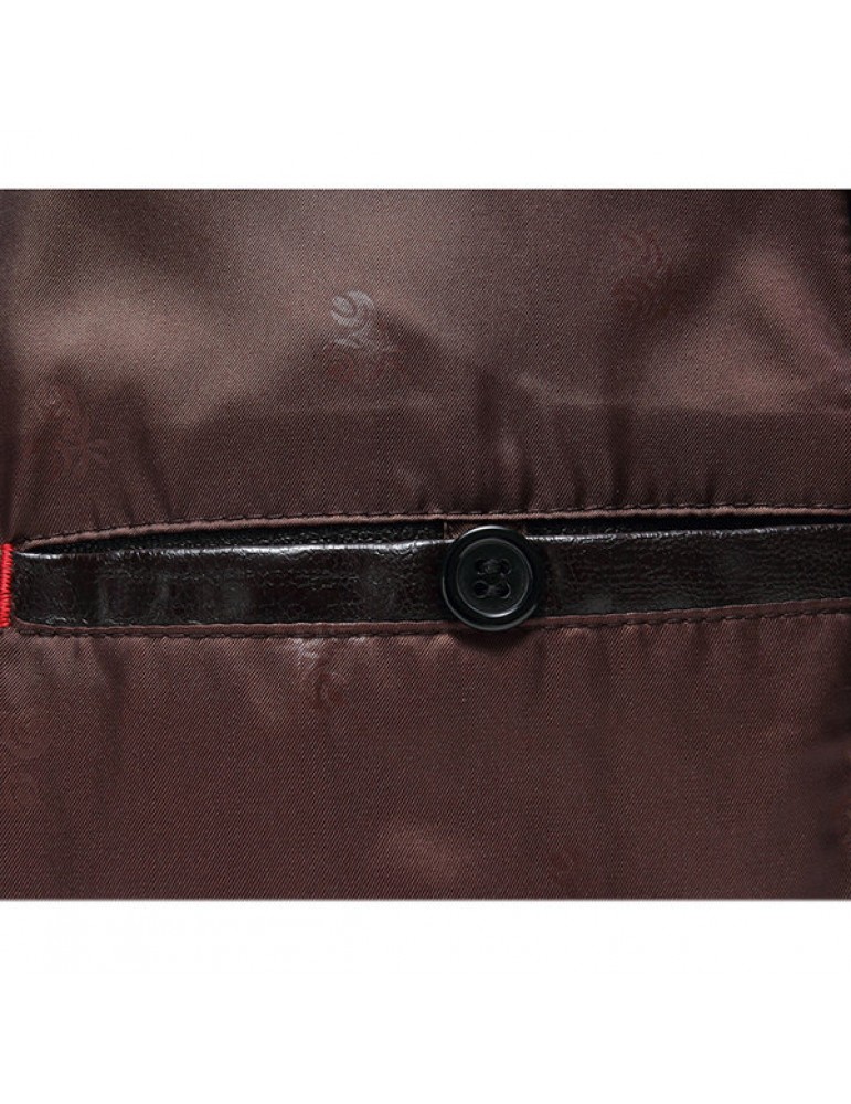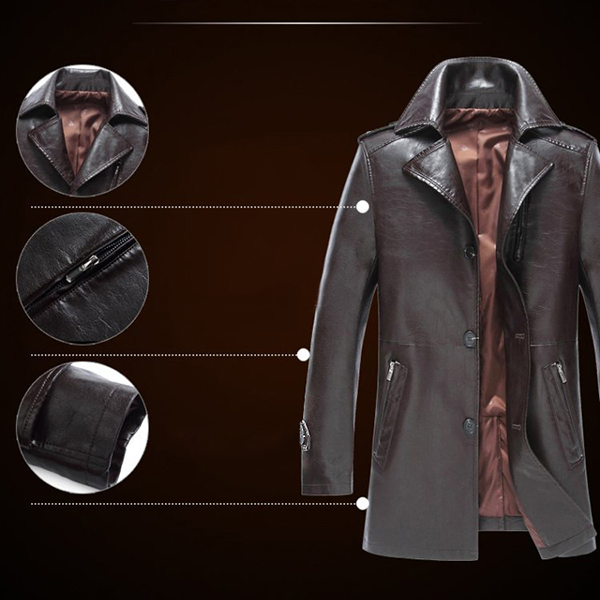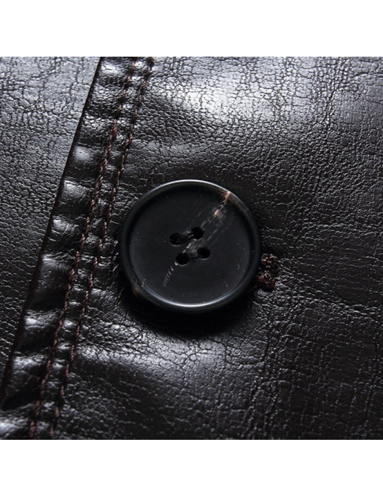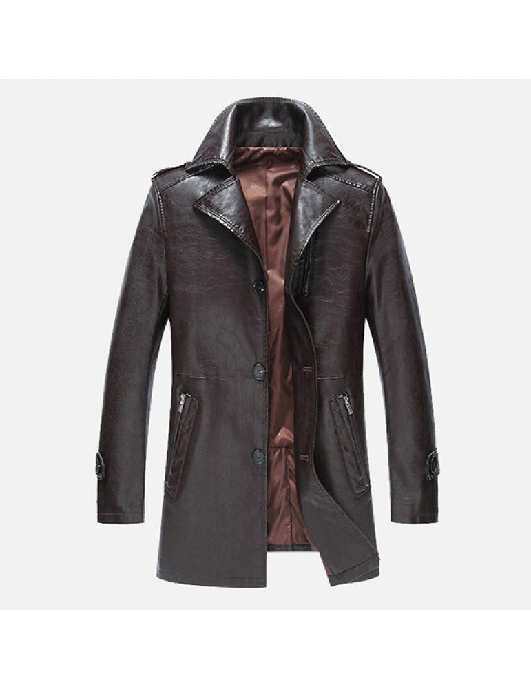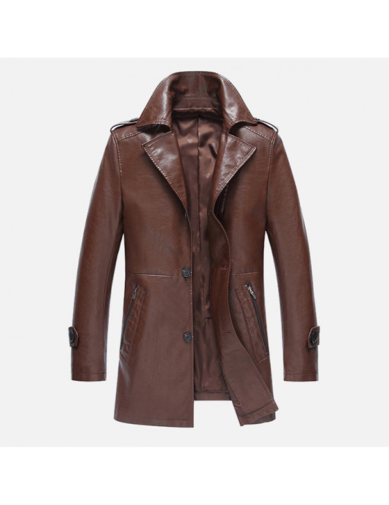 Lapel Collar Solid Color Motorcycle Epaulet Faux Leather Jacket for Men