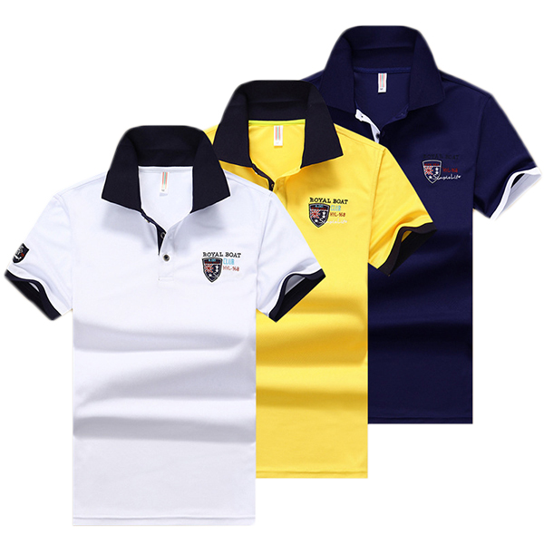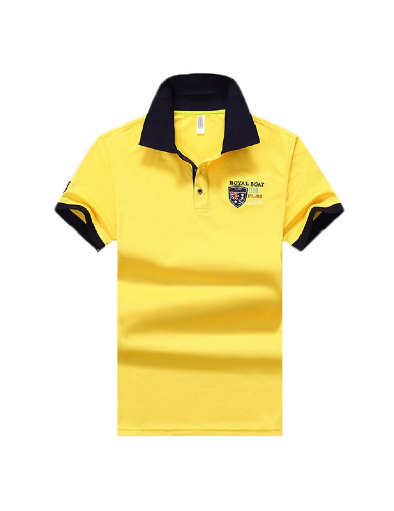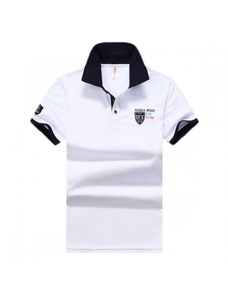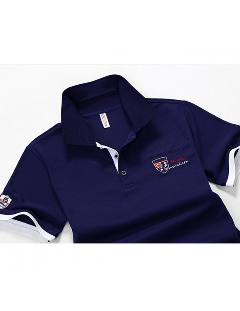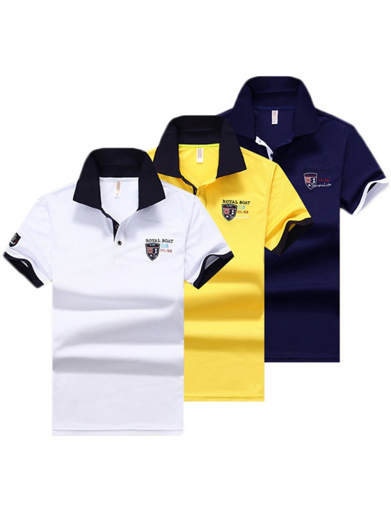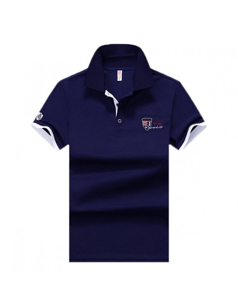 Mens Fashion Embroidery Logo Solid Color T Shirt Short Sleeve Casual Cotton Golf Shirt