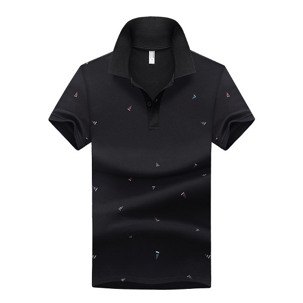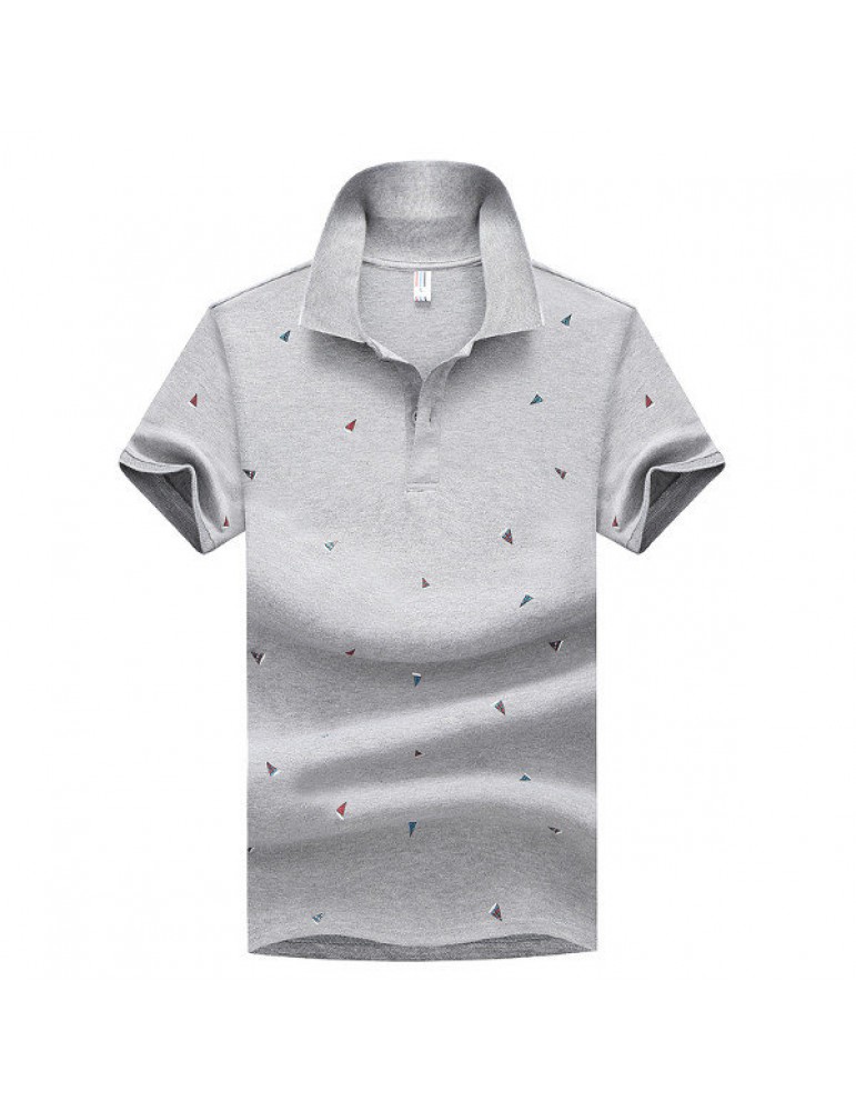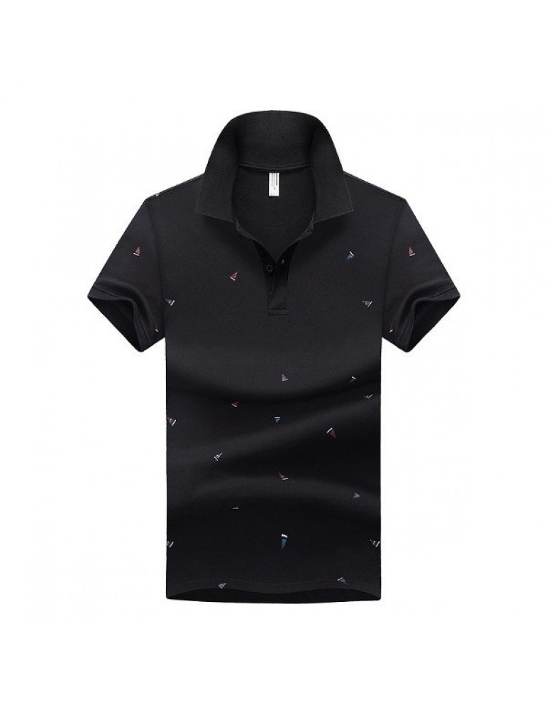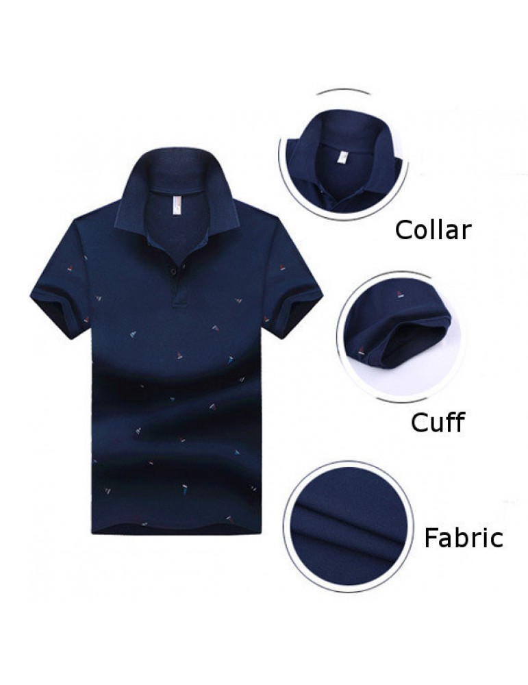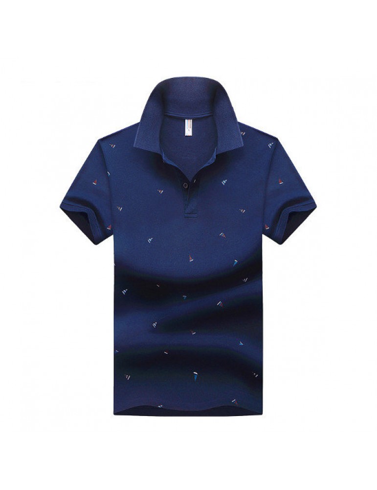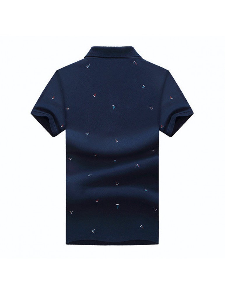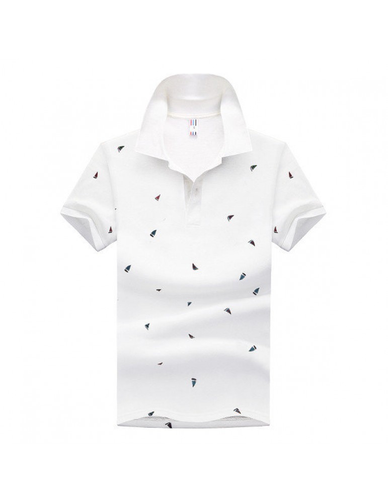 Summer Mens Short Sleeved Turndown Collar Sailing Boats Printing Golf Shirt