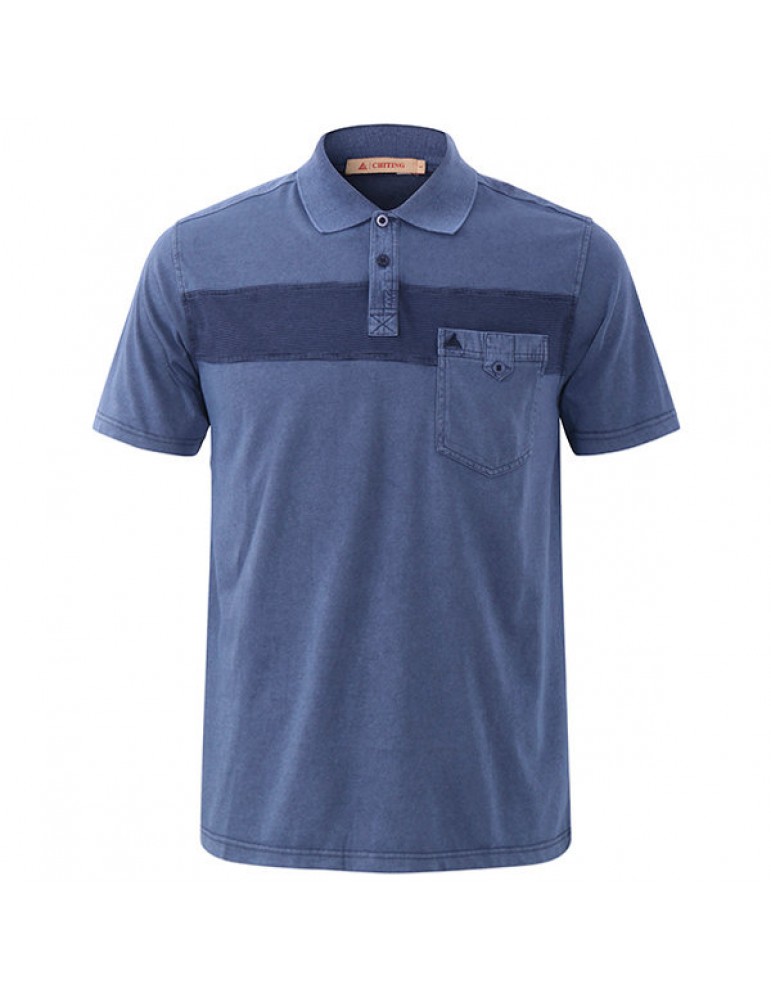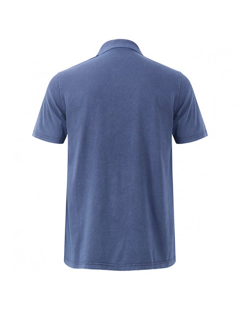Mens Summer Cotton Front Pocket Turn-down Collar Short Sleeve Casual Golf Shirt
