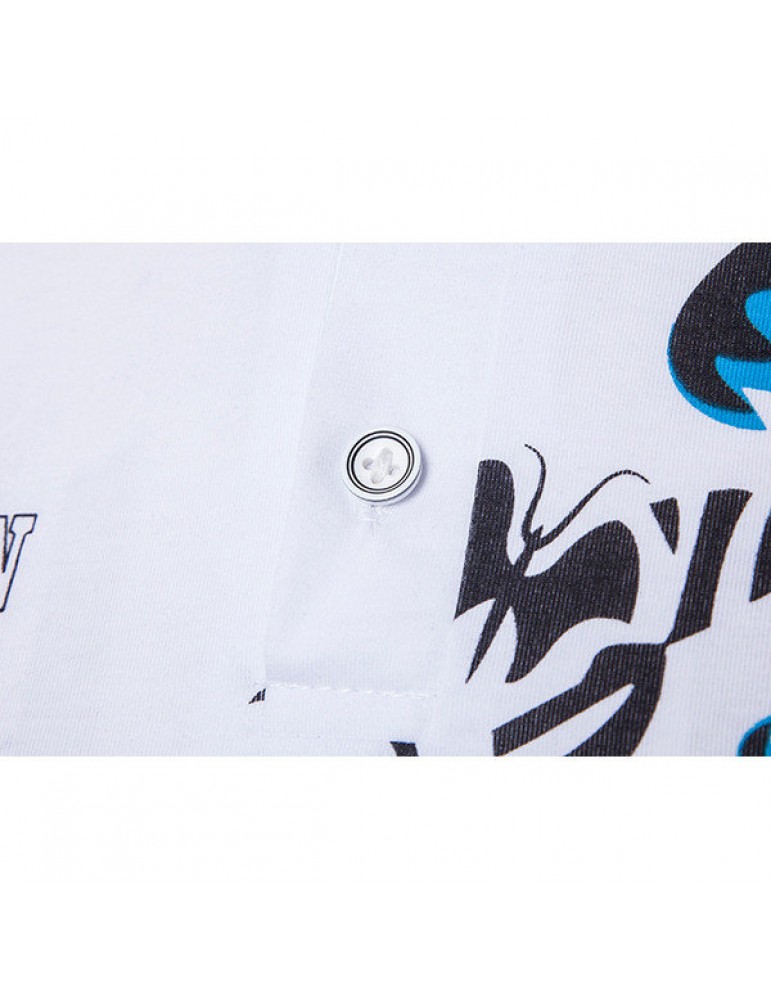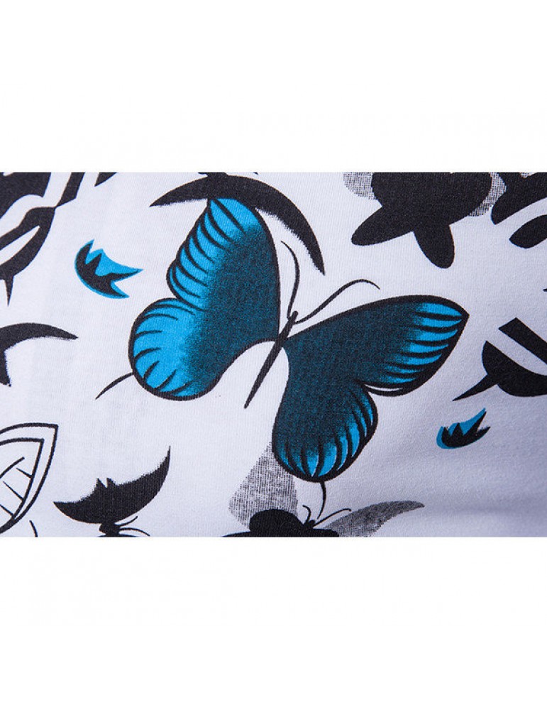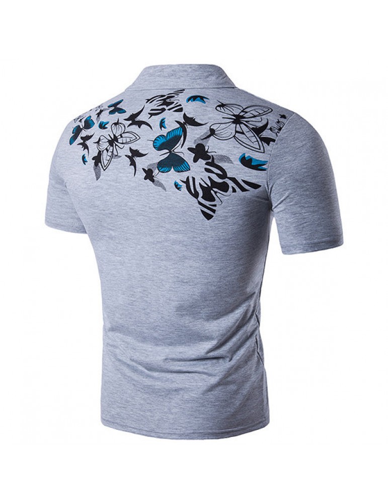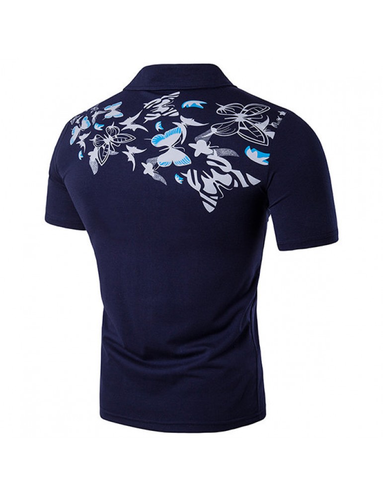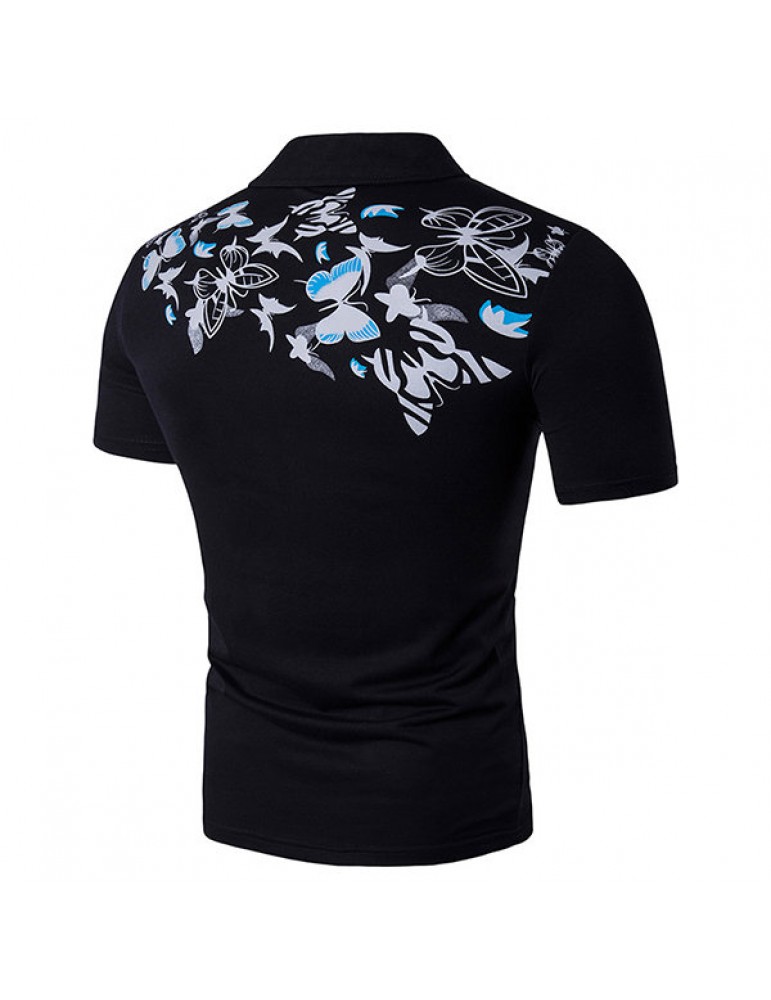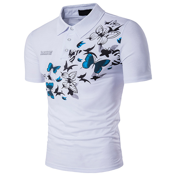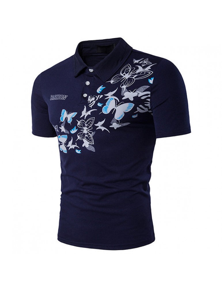 Mens Summer Butterfly Printed Short Sleeve Turn-down Collar Casual Golf Shirts