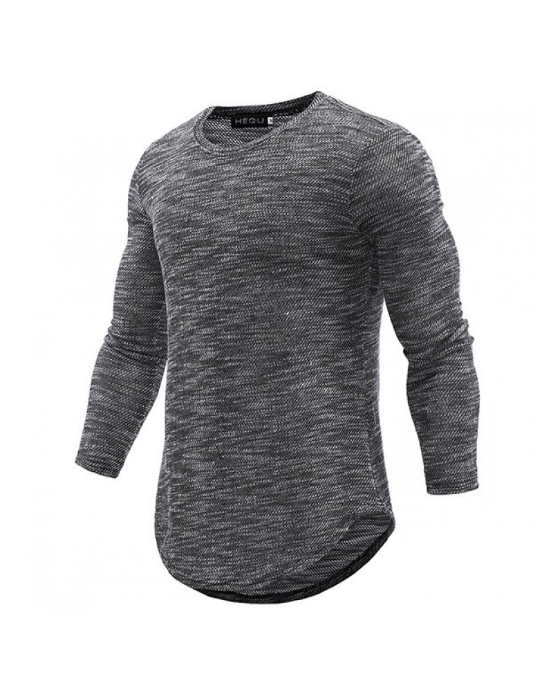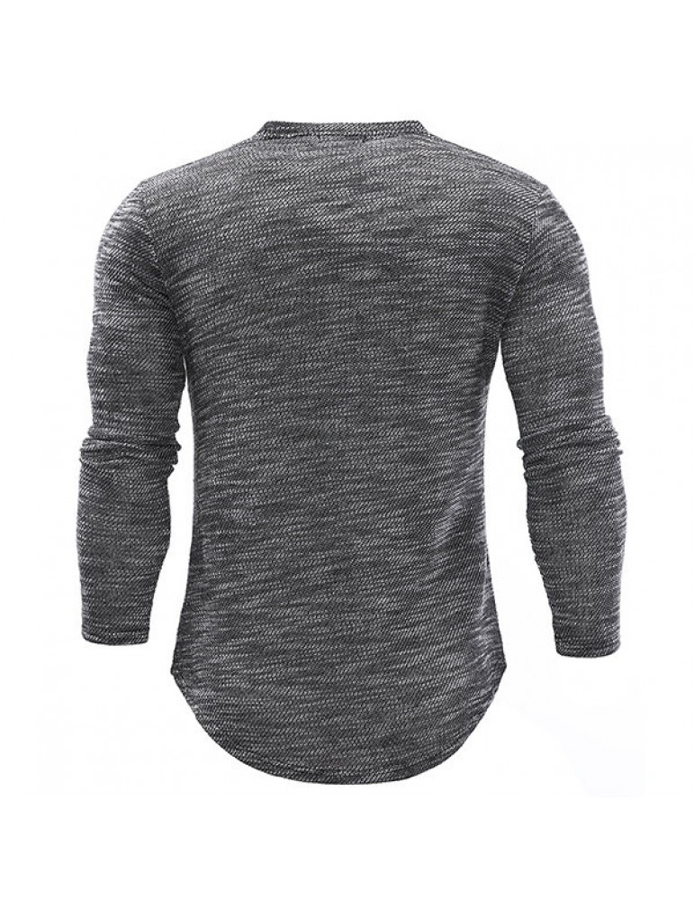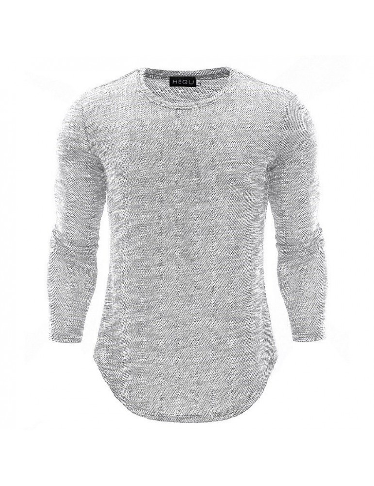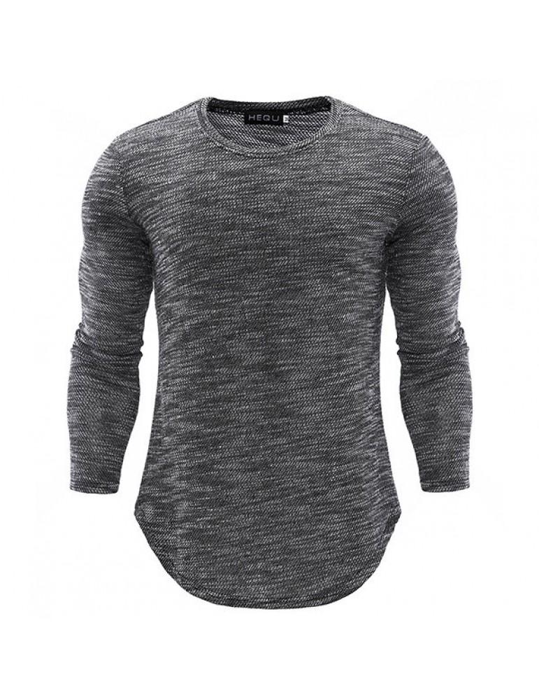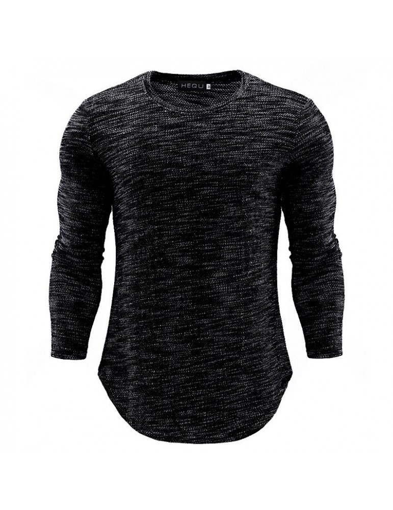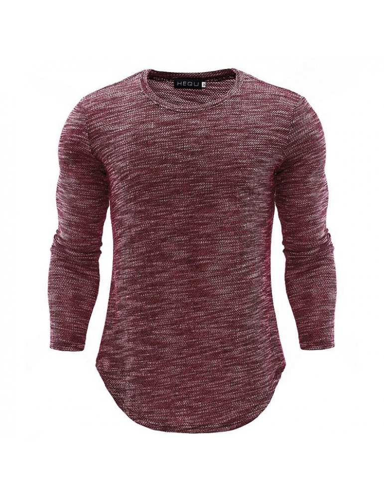 Mens Knitting Tops Solid Color Long-Sleeved O-Neck Regular Fit Casual T shirt
