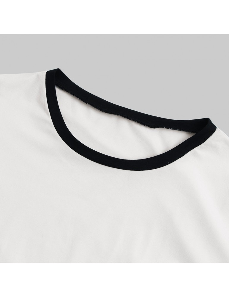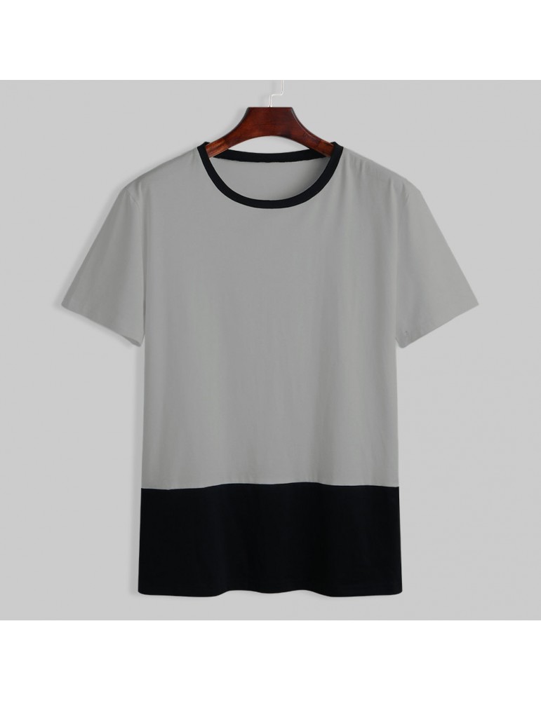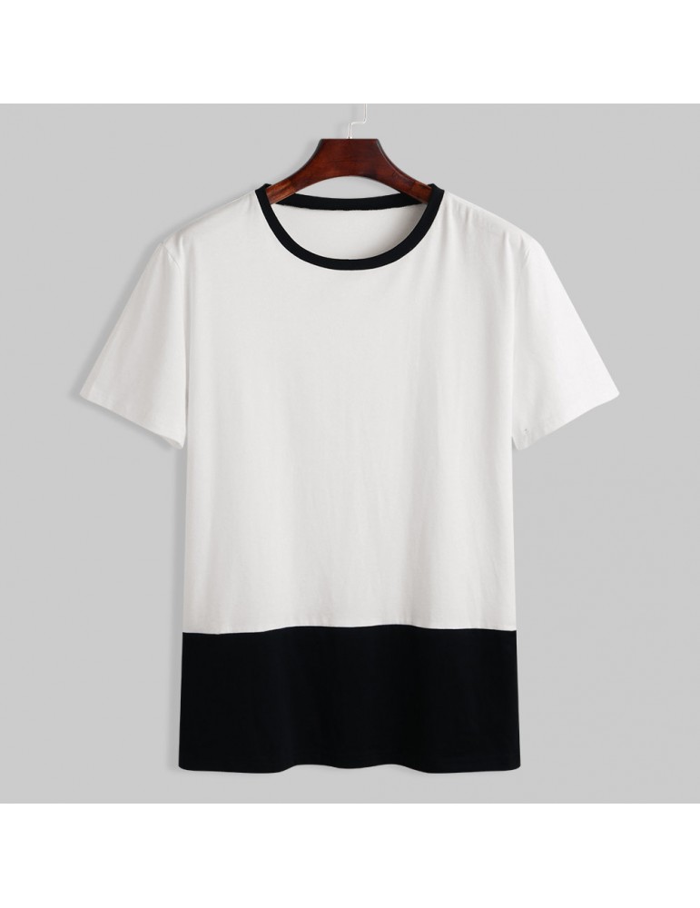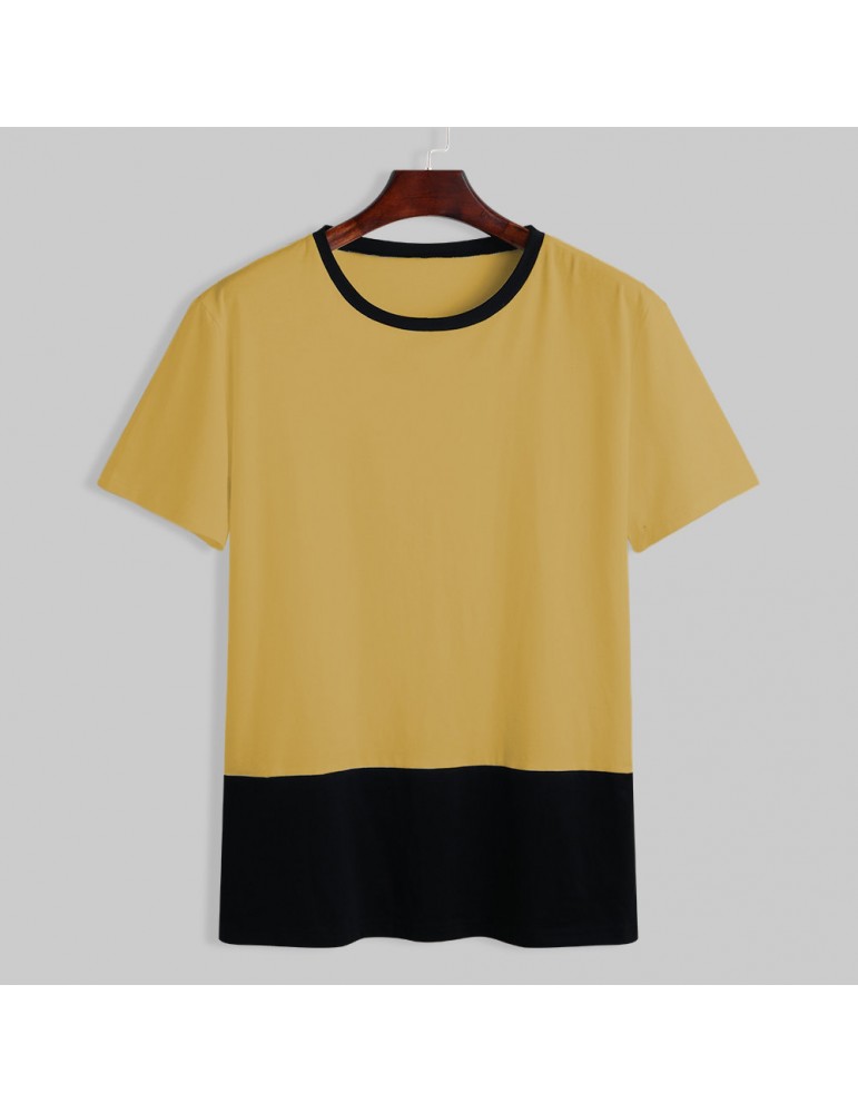 Mens 100% Cotton Breathable Contrast Color Short Sleeve Casual T-Shirts