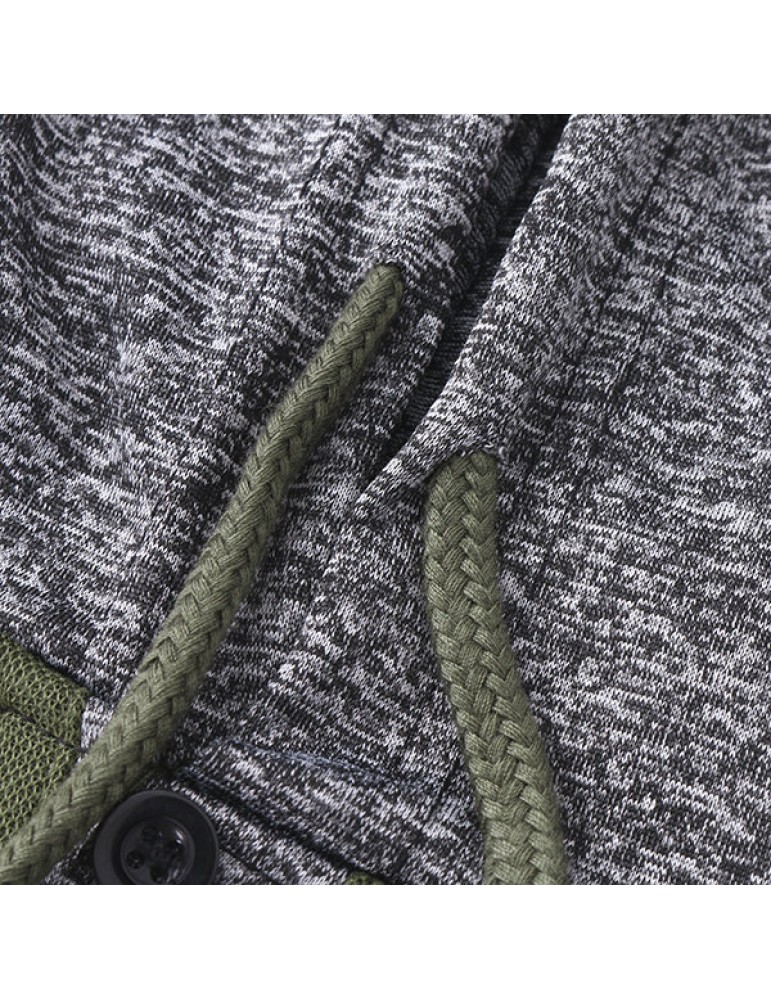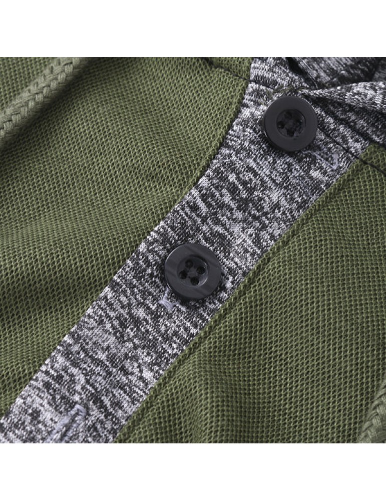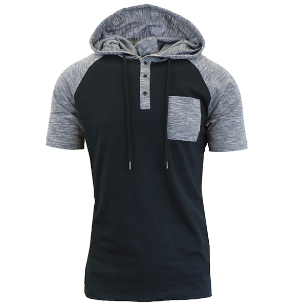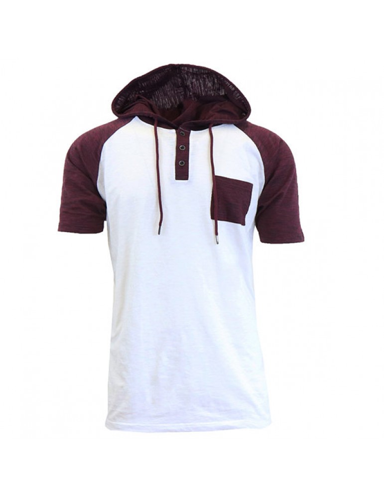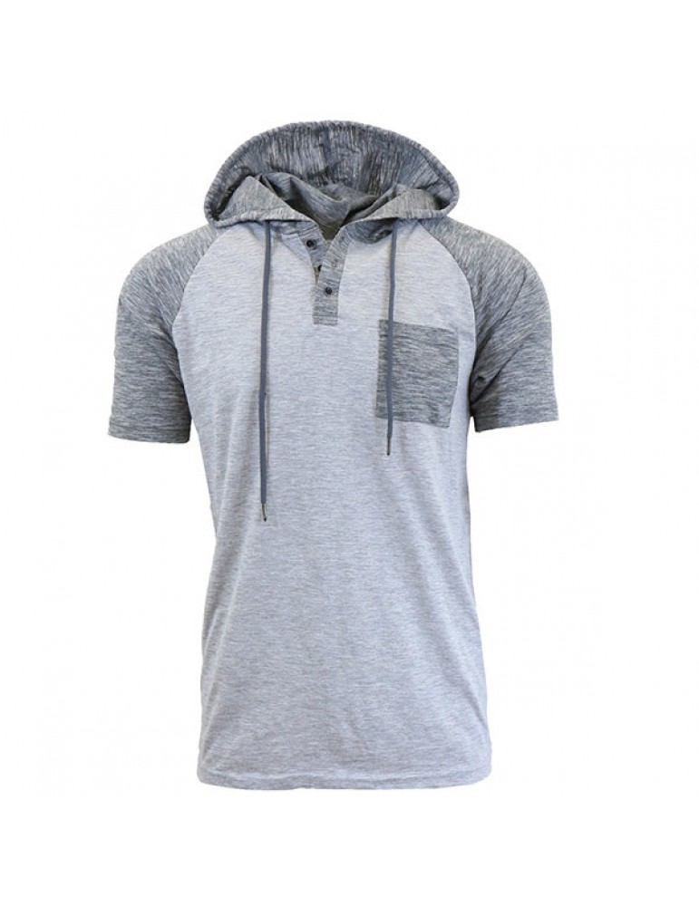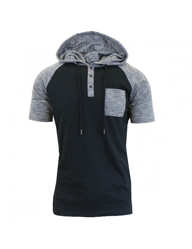 Mens Summer High Street Stylish Hit Color Front Pocket Short Sleeve Casual Hooded T-shirt