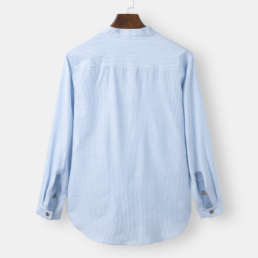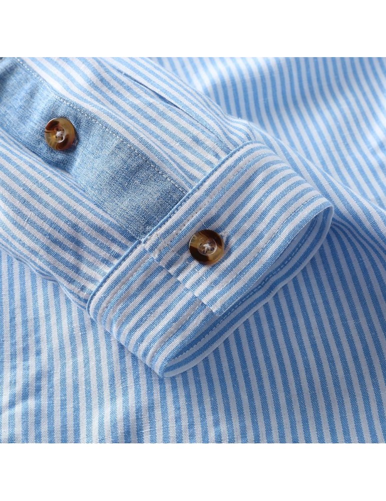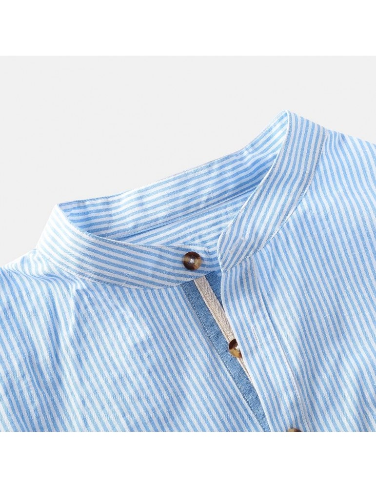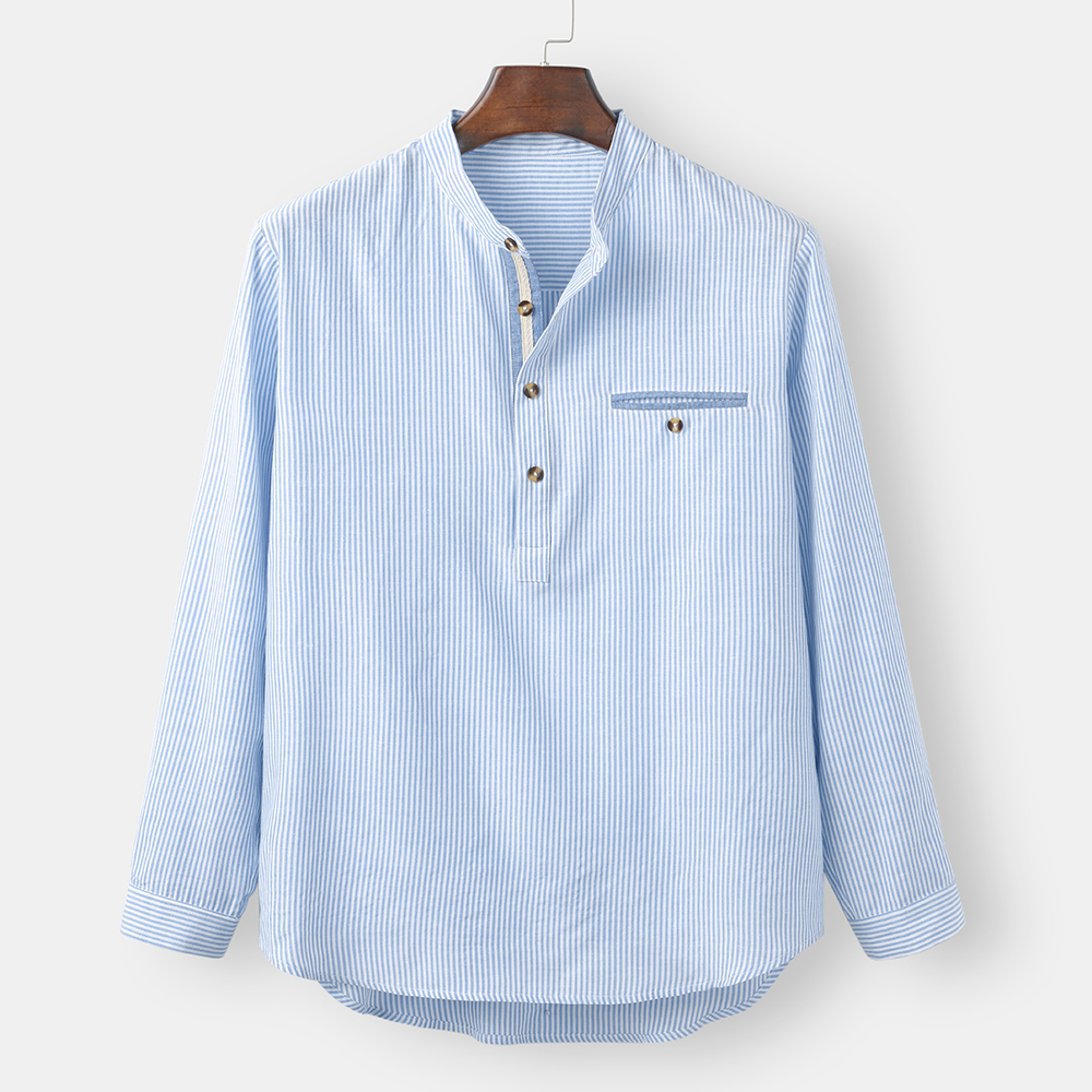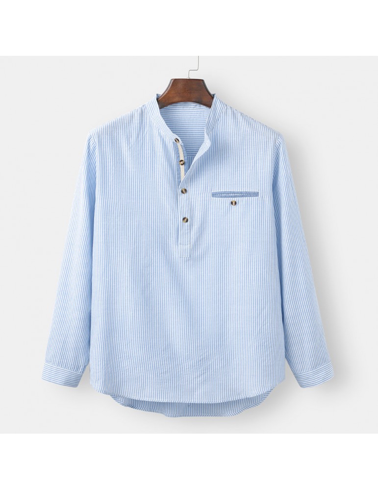 Mens Stripe Cotton Loose Long Sleeve Buttons Fly Casual Henley Shirt