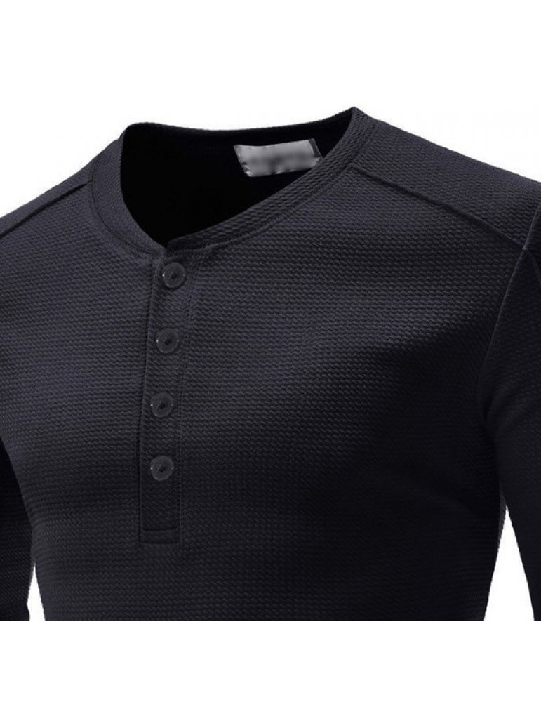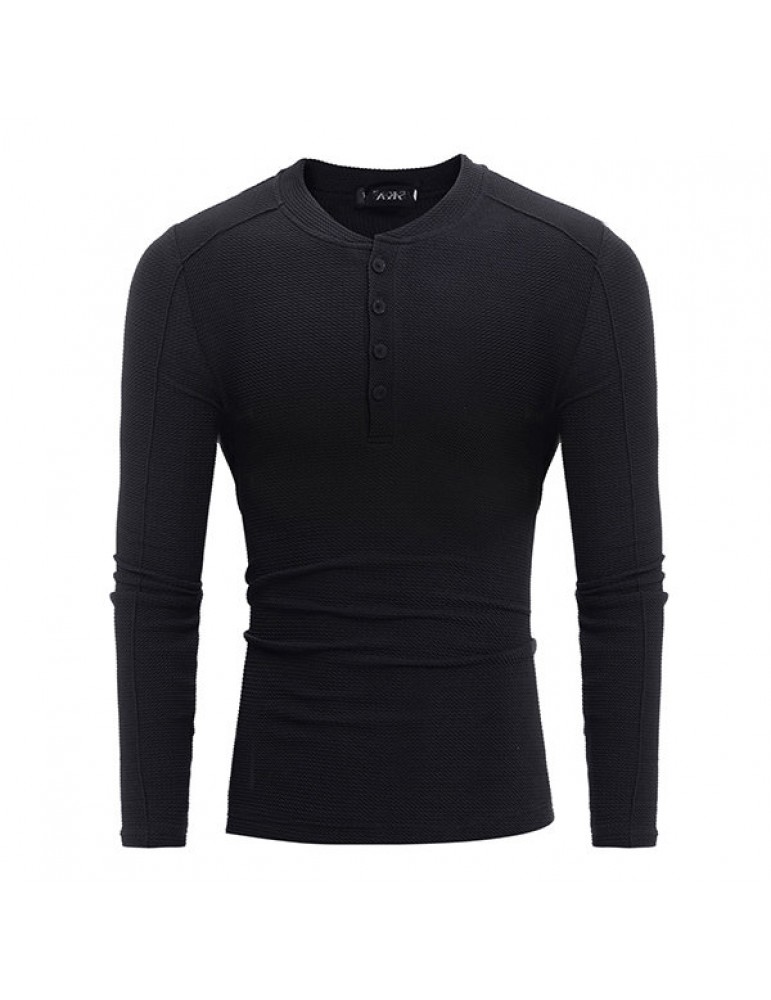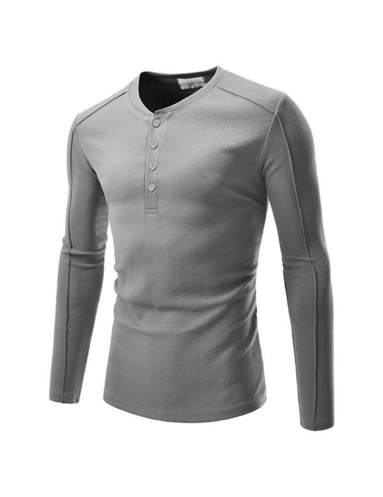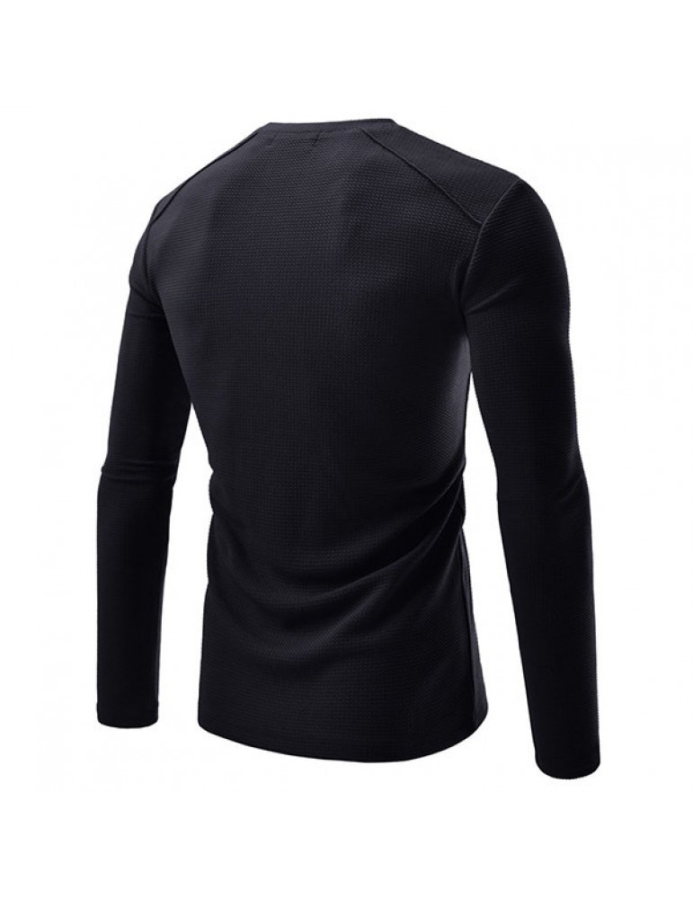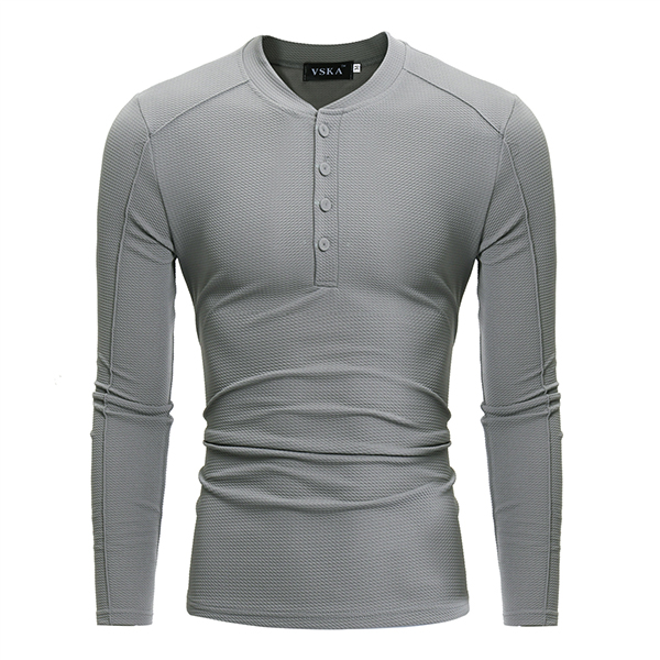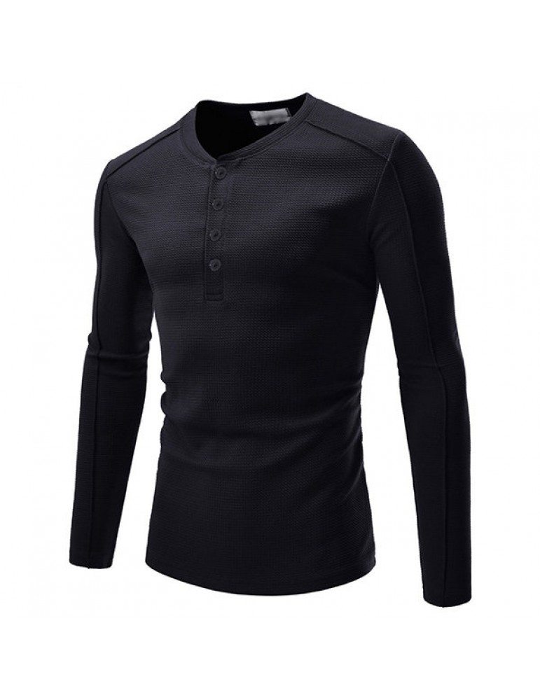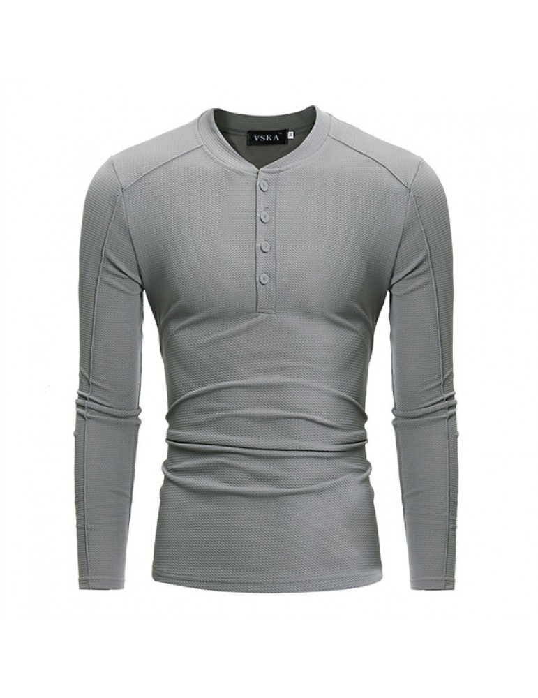 Mens Solid V-neck Long Sleeve Slim Fit Knit T-shirt