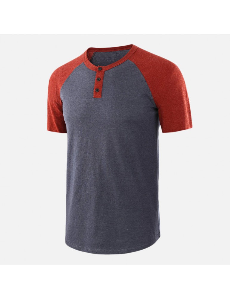 Men's Casual O-Neck Contrast Colour Bottom Short Sleeve T-shirt