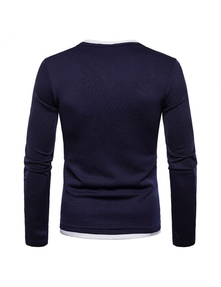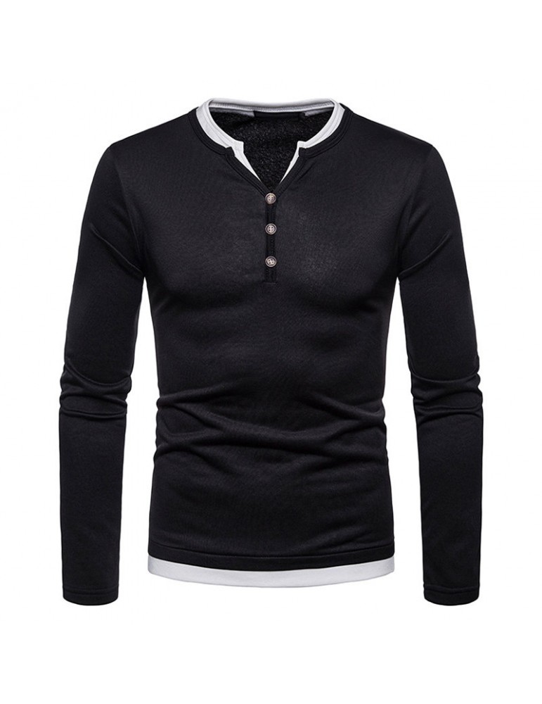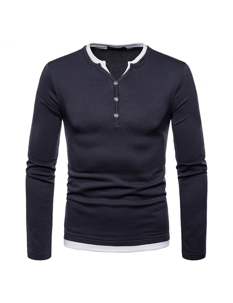 100% Cotton V-neck Long Sleeve Half Button Down T-shirt for Men