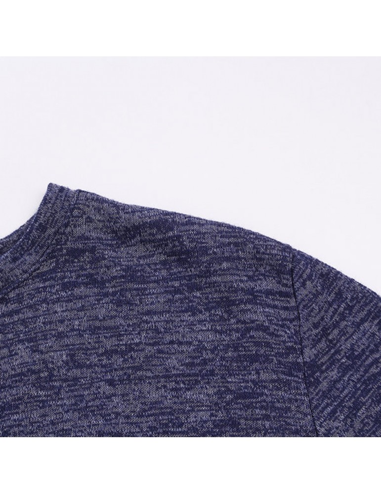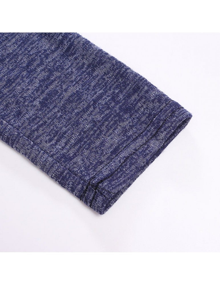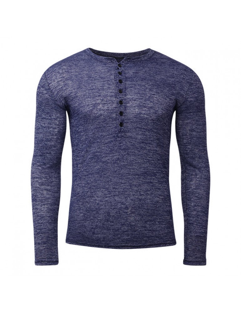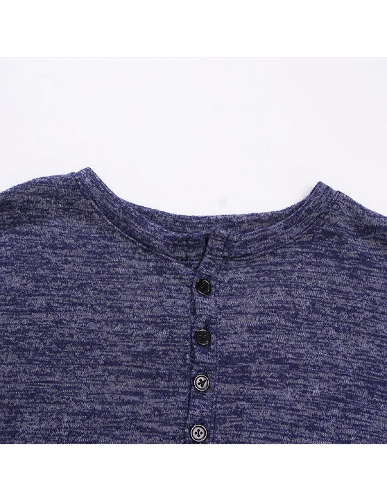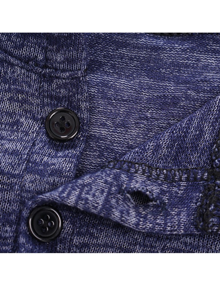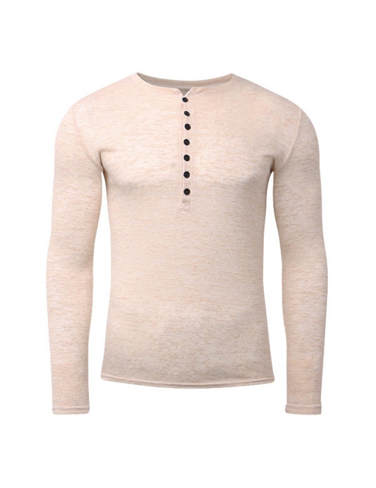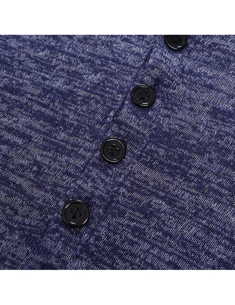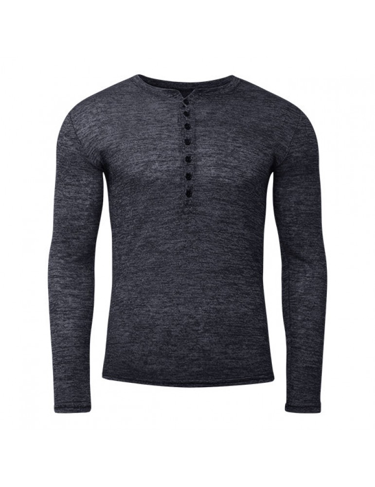 Mens Breathable Cotton Casual T shirt Buttons Design Half-cardigan Slim Fit Long Sleeve Tops