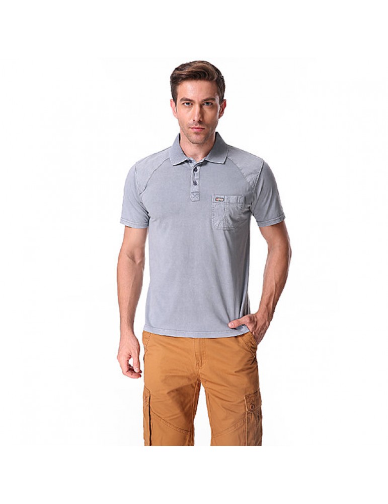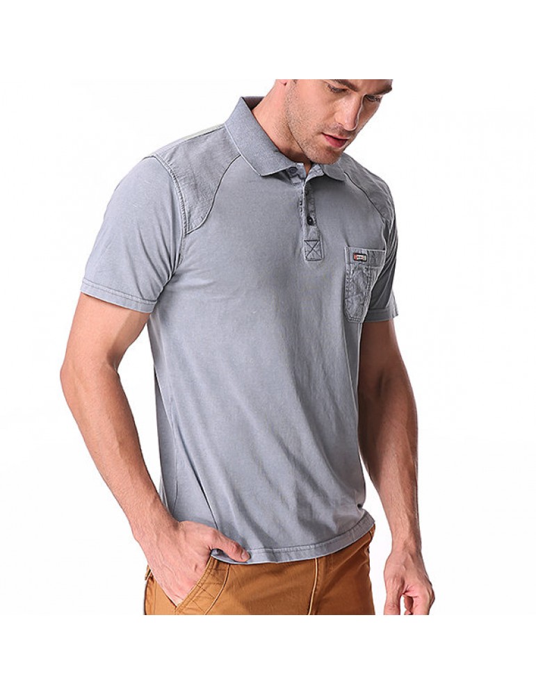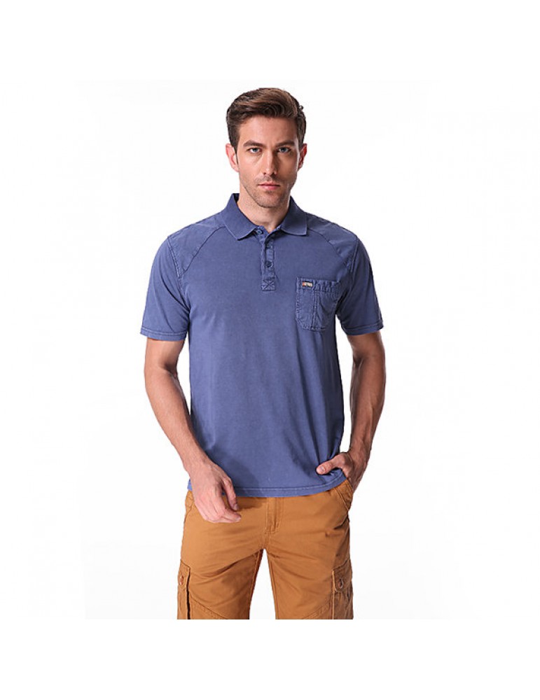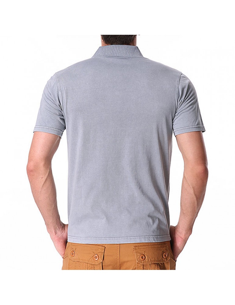Mens Cotton Breathable Solid Color Turn-down Collar Short Sleeve Casual Golf Shirt