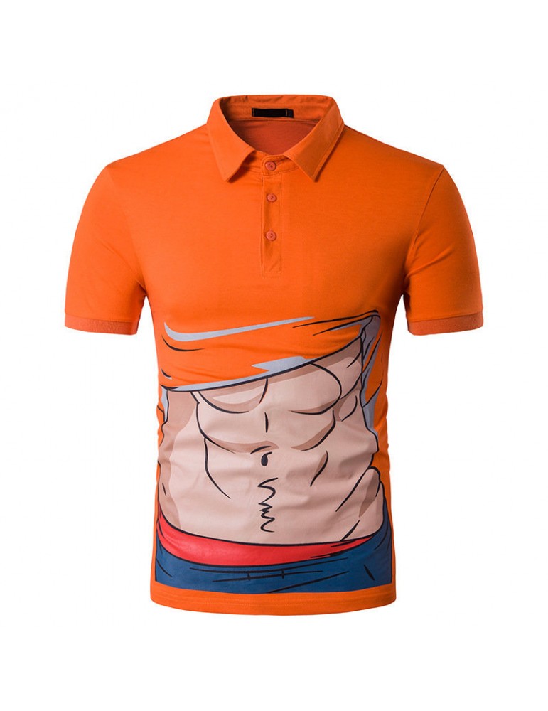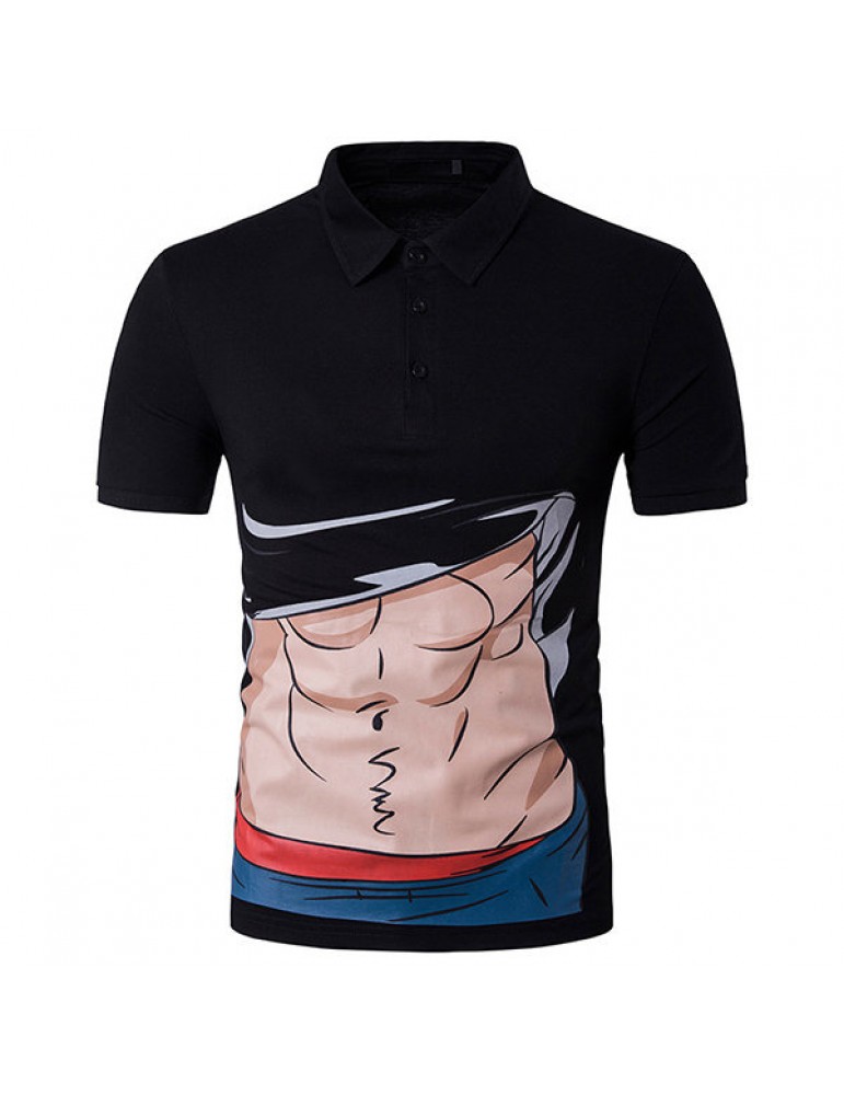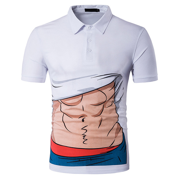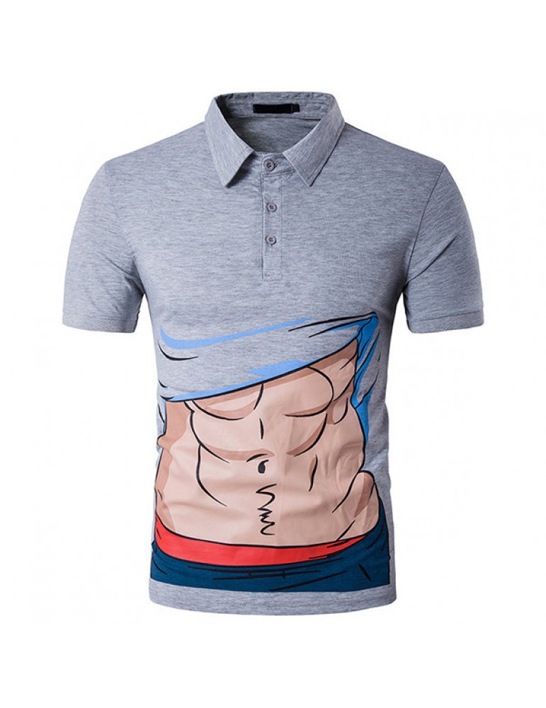 Mens Creative Muscle Cartoon Printed Short Sleeve Slim Fit Casual Golf Shirt