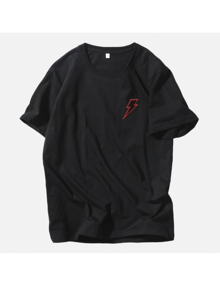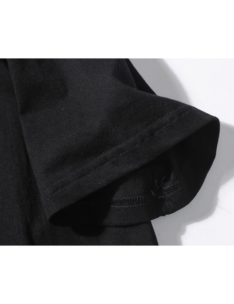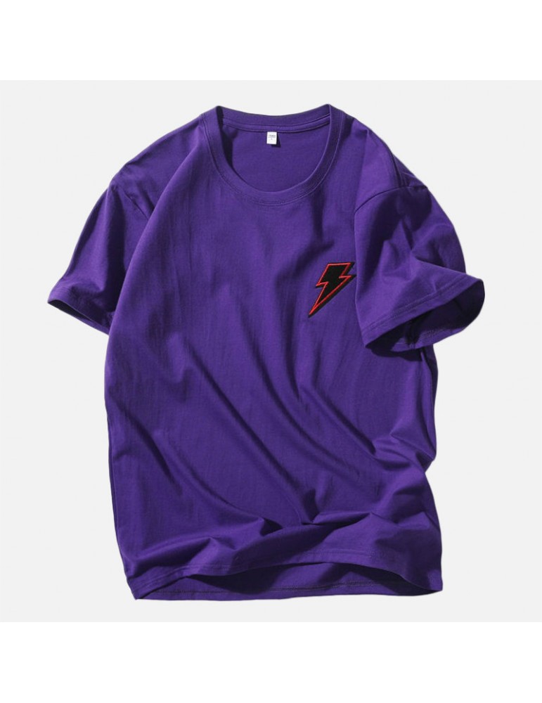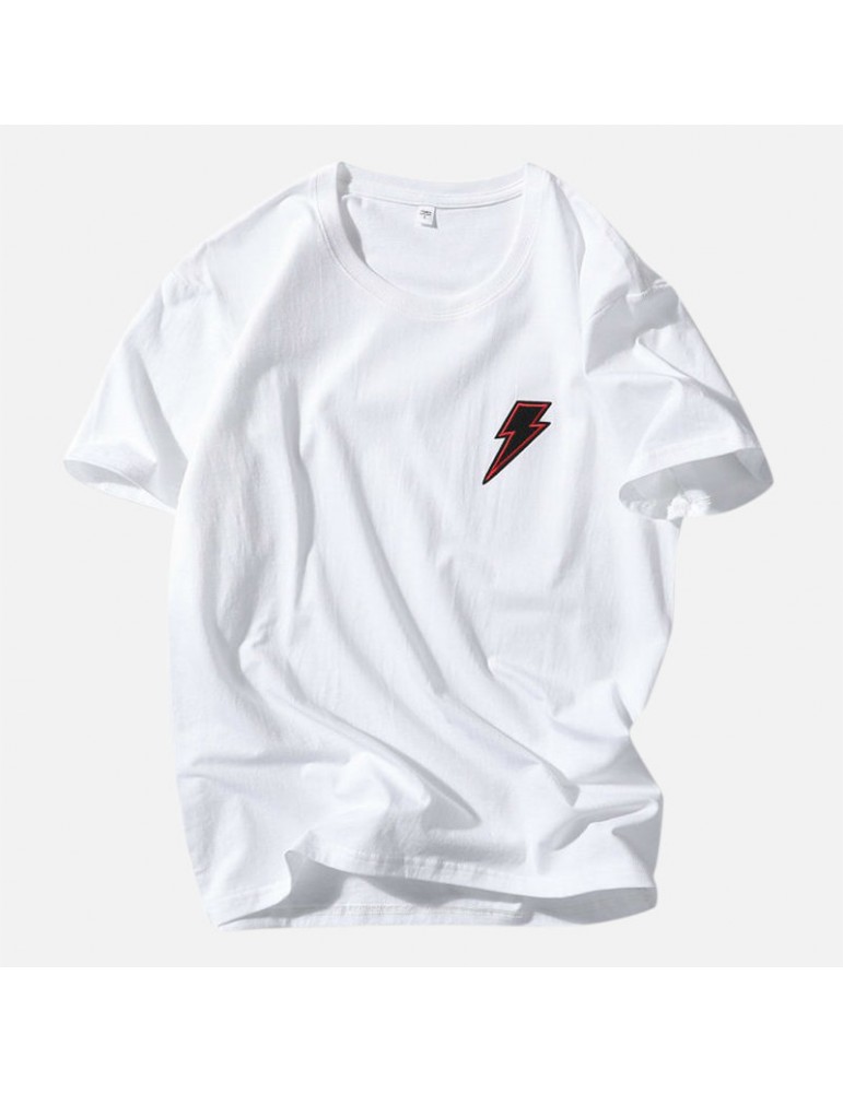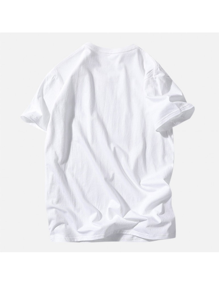 Mens Embroider Cotton Round Neck Short Sleeve Loose Casual T-shirt
