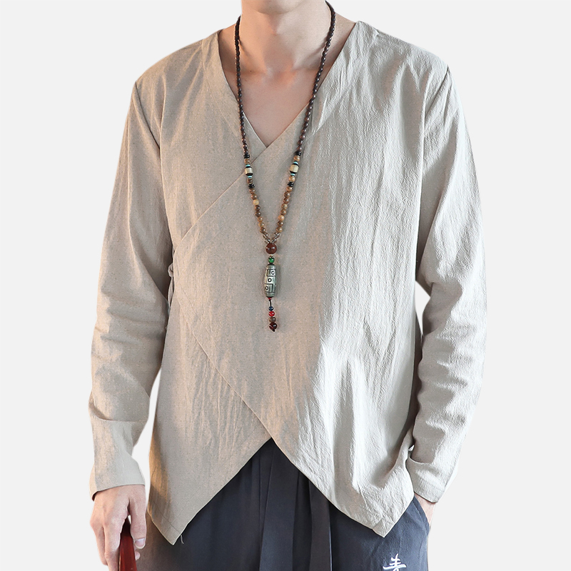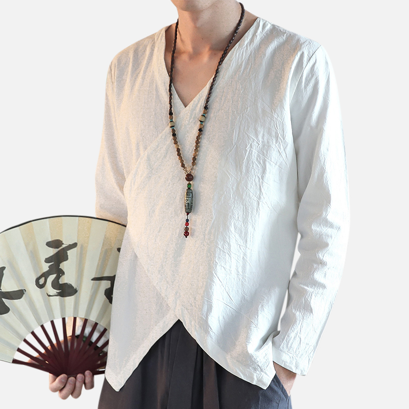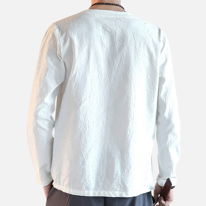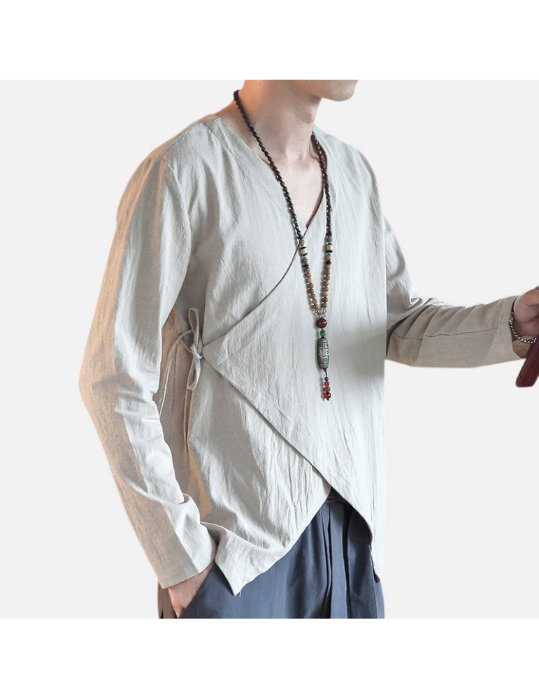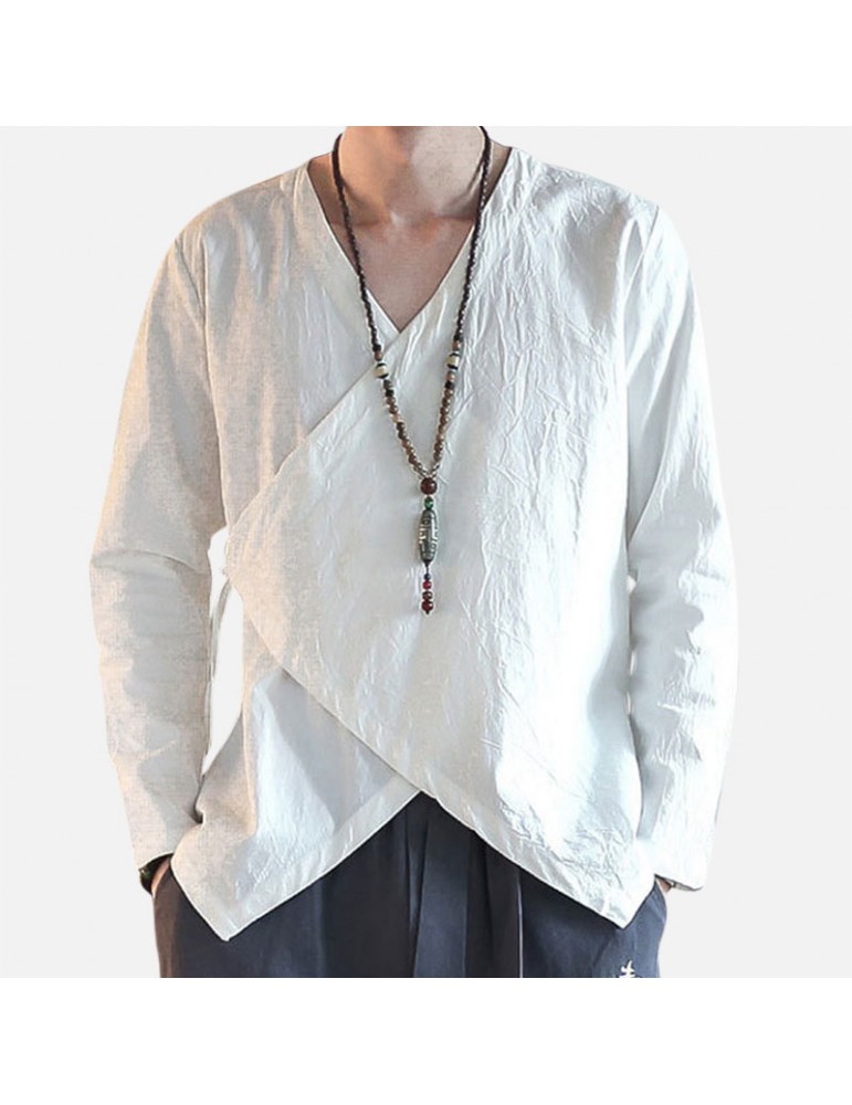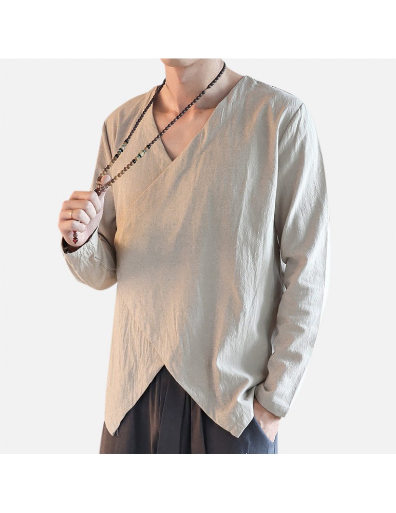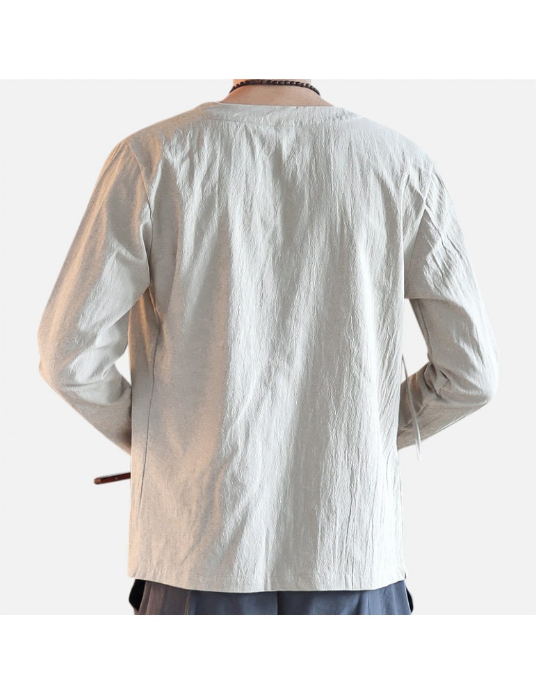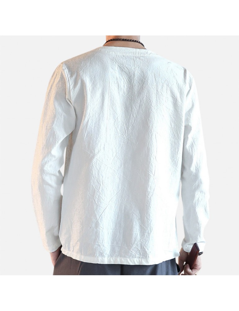 Mens Casual Chinese Style Antique Long-sleeved T-shirt Retro National Tops