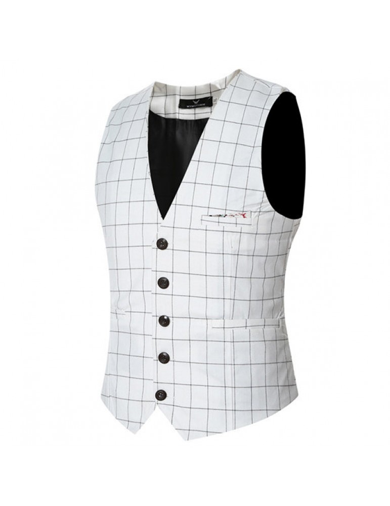 Fashion Wedding Dress Plaid Vest Slim Fit Business Suit Vest For Men
