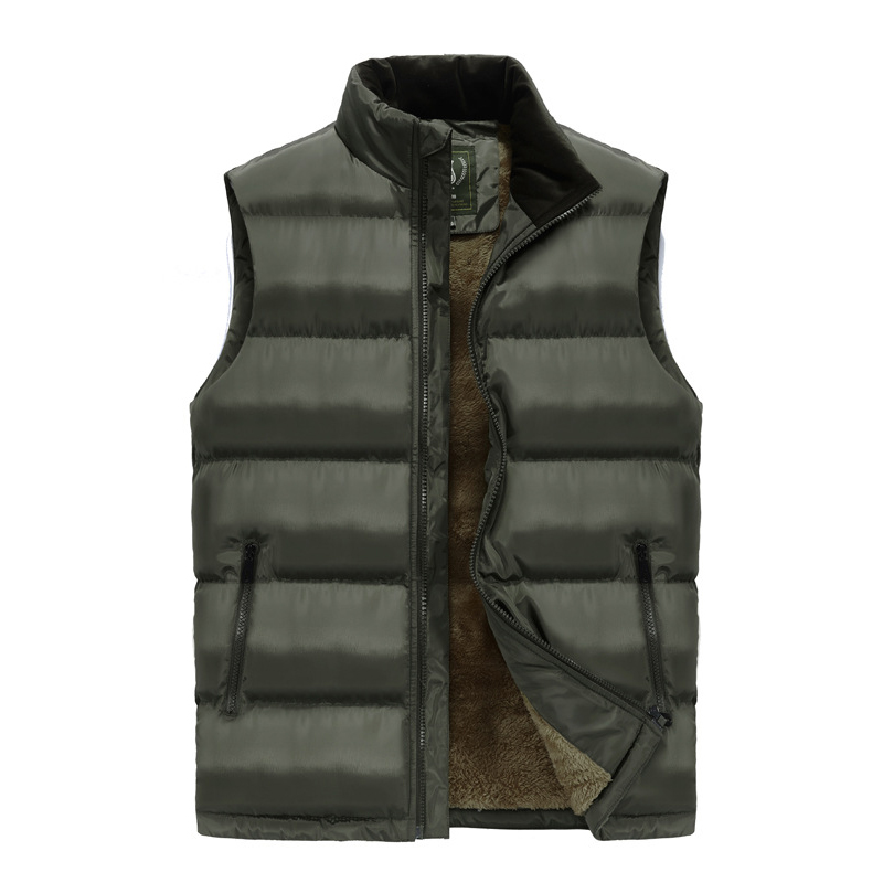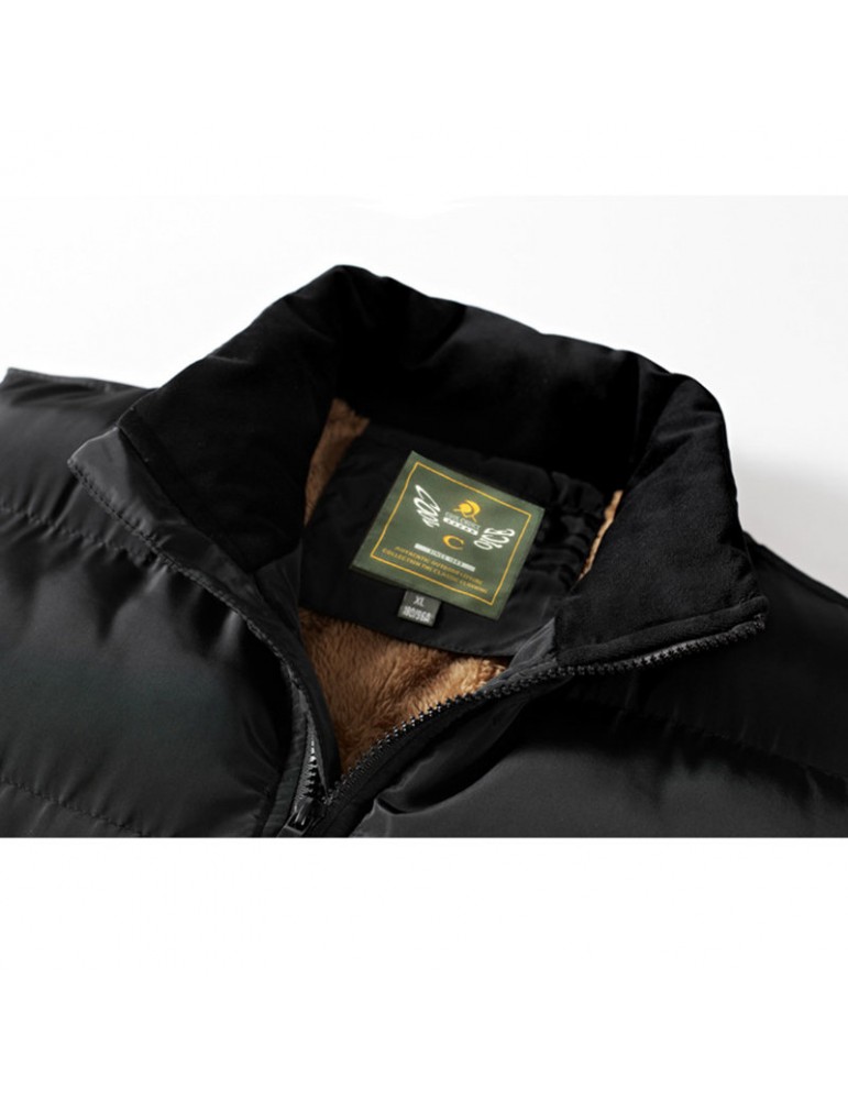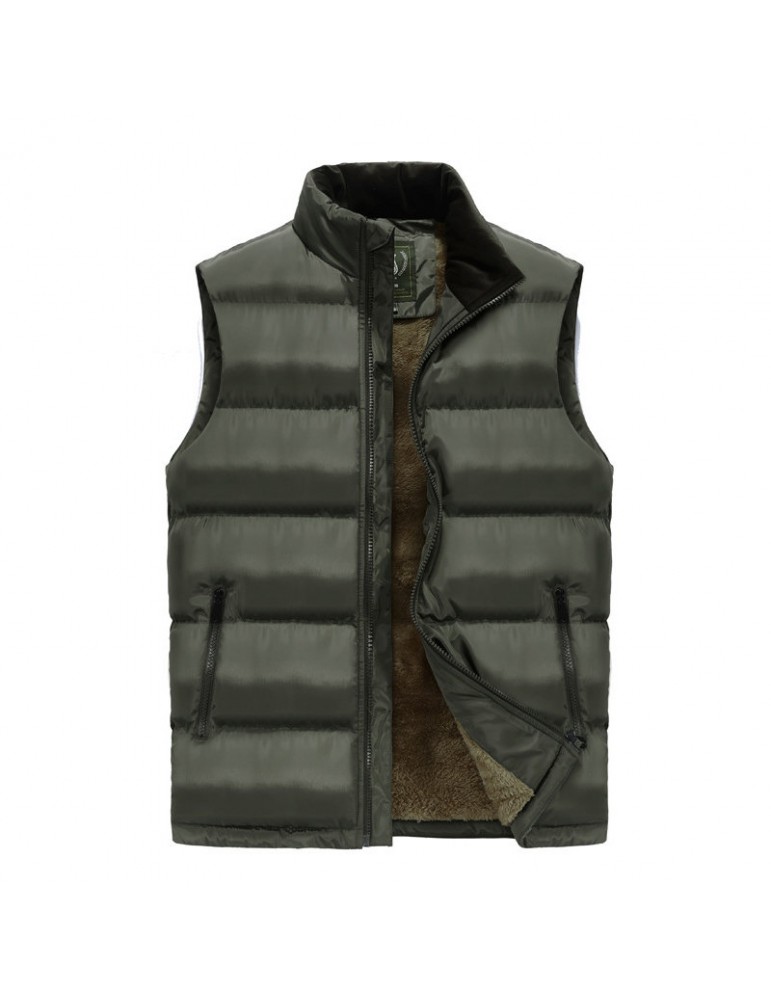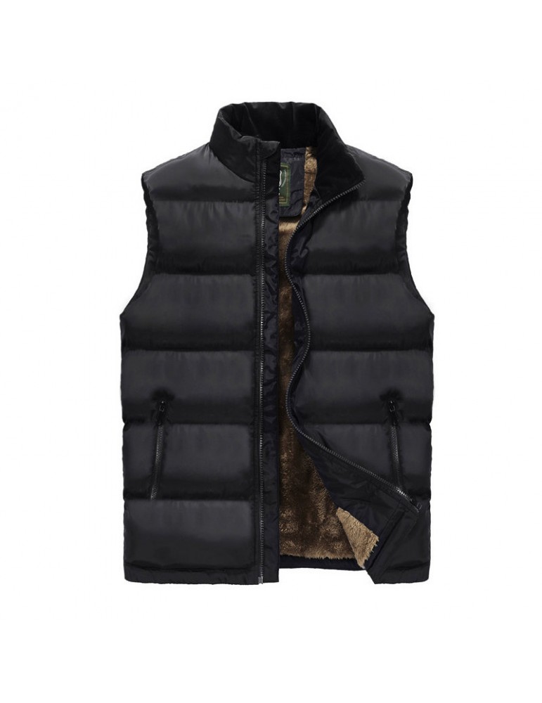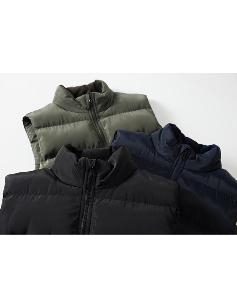Men's Casual Thicken Plus Velvet Stand Collar Solid Color Down Vest