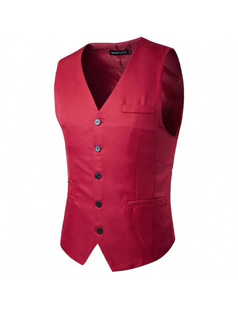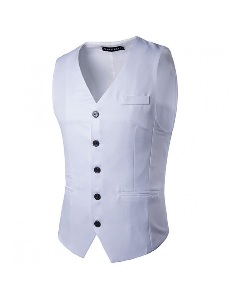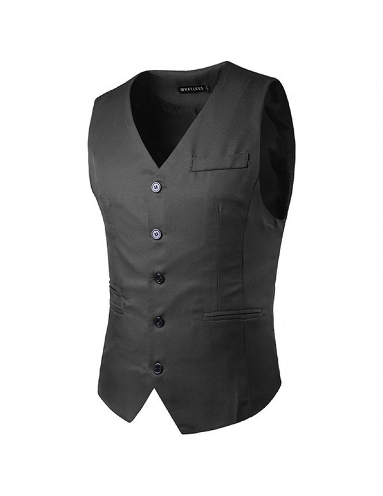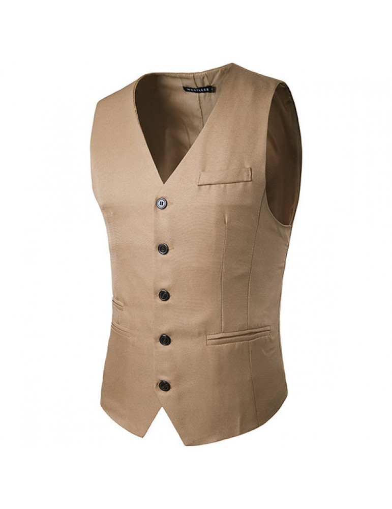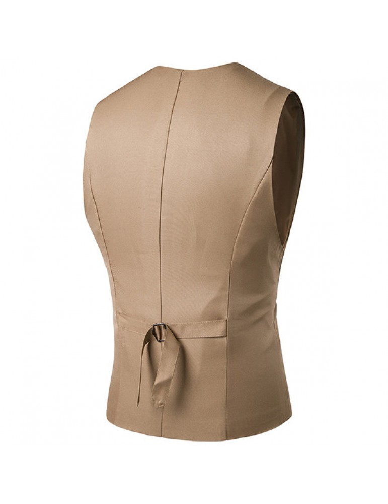 Casual Formal Business Slim Fit Multi Pockets Fashion Pure Color Suit Vest for Men