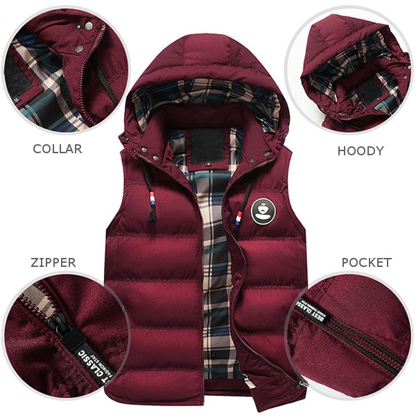 Casual Hooded Thicken Winter Fall Cotton Coat Vest for Men