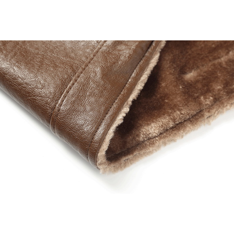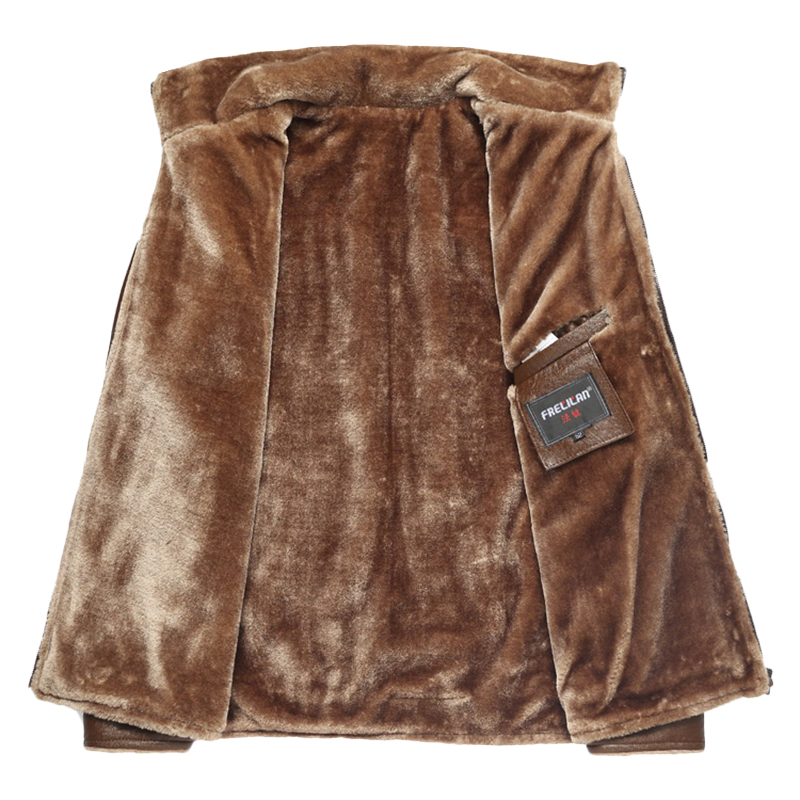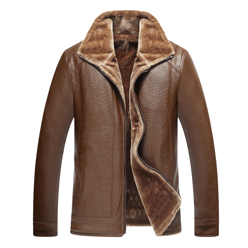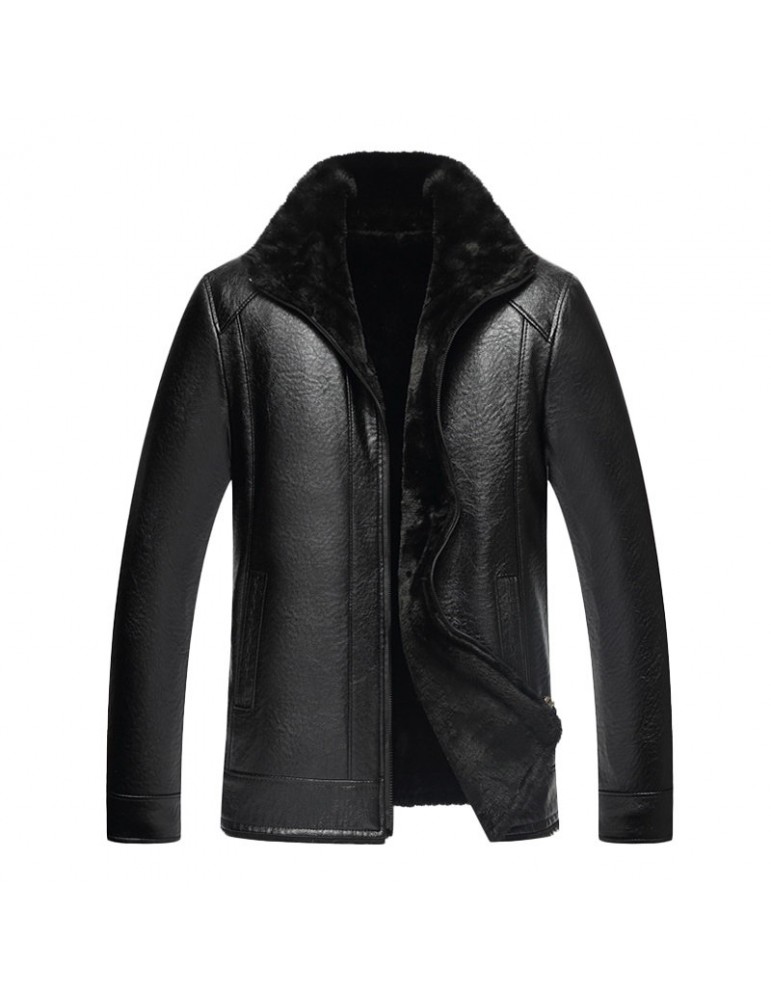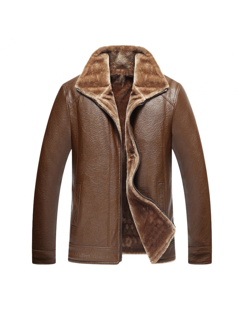 Mens Winter Washed PU Leather Fleece Lined Coat Thicken Warm Zipper Jacket