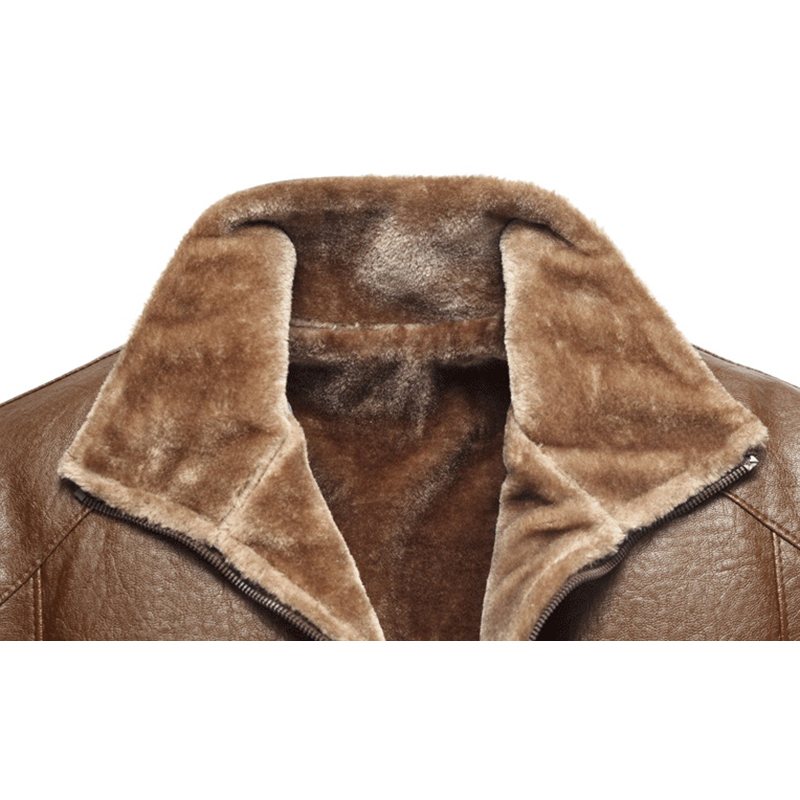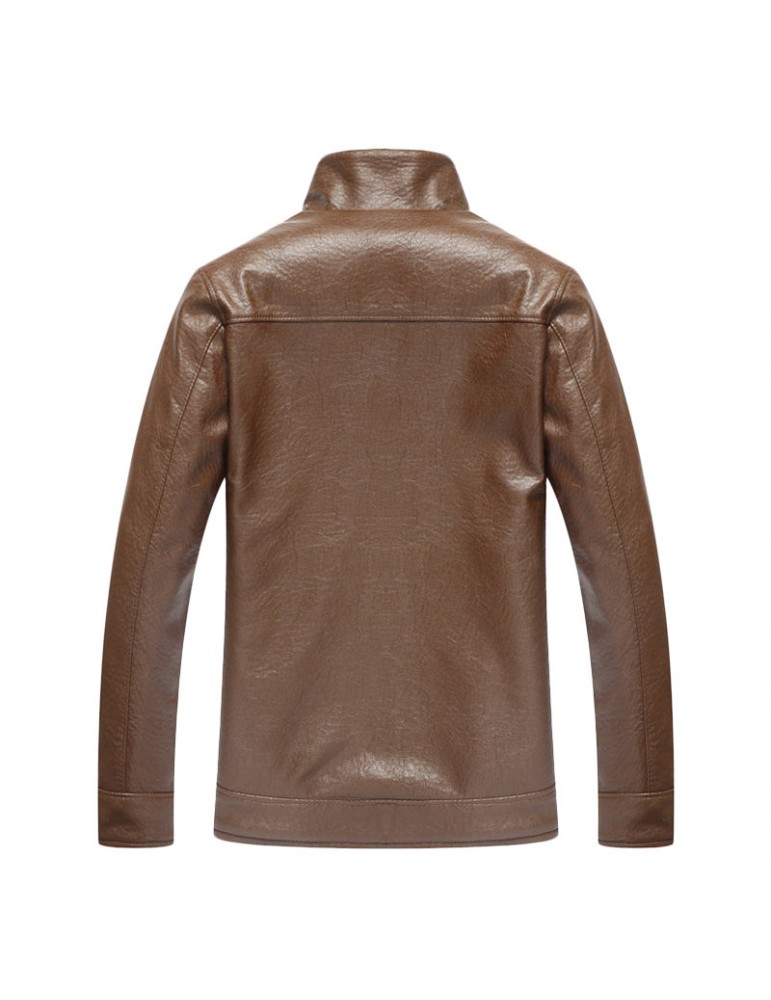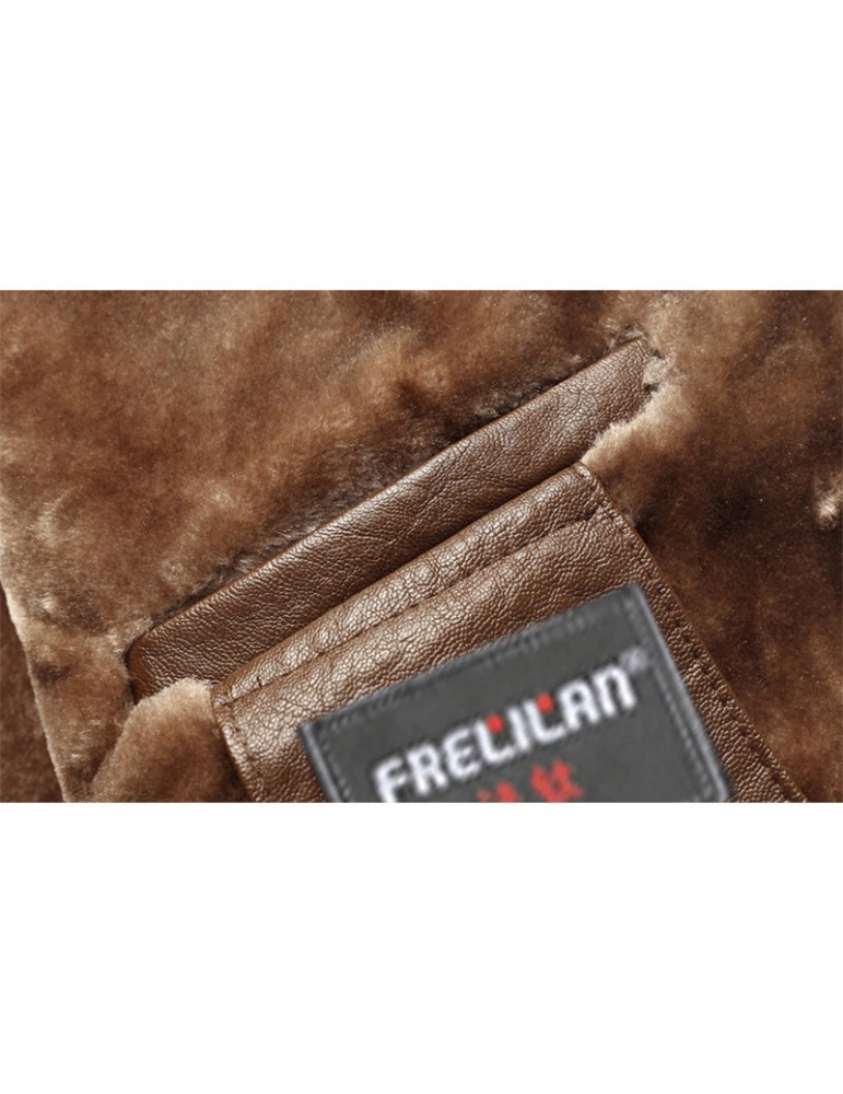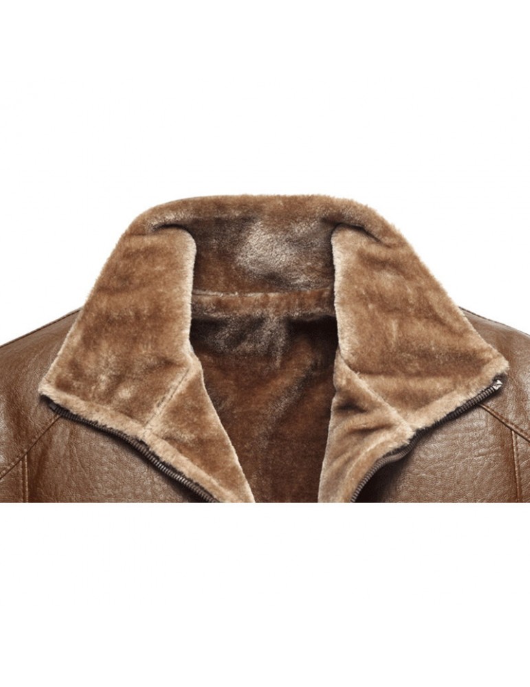 Mens Winter Washed PU Leather Fleece Lined Coat Thicken Warm Zipper Jacket