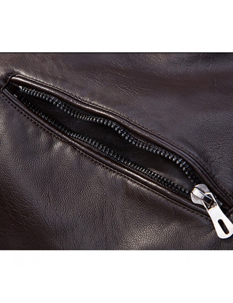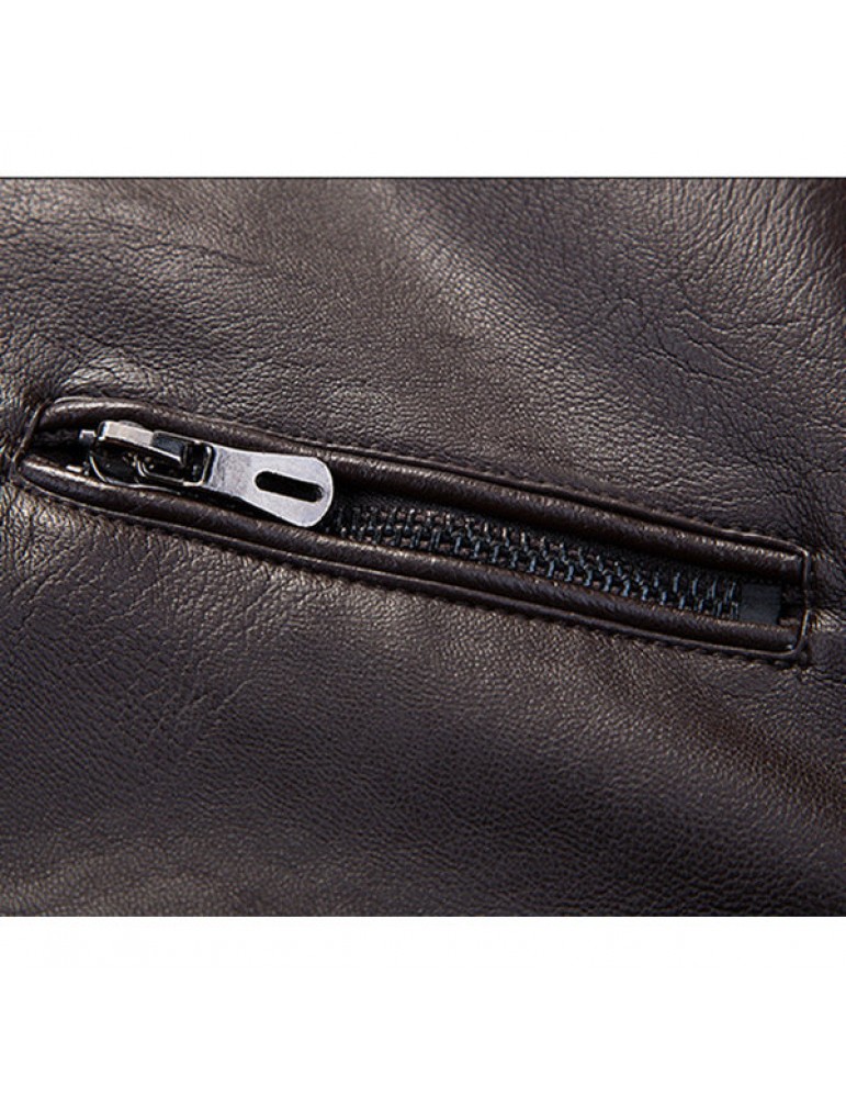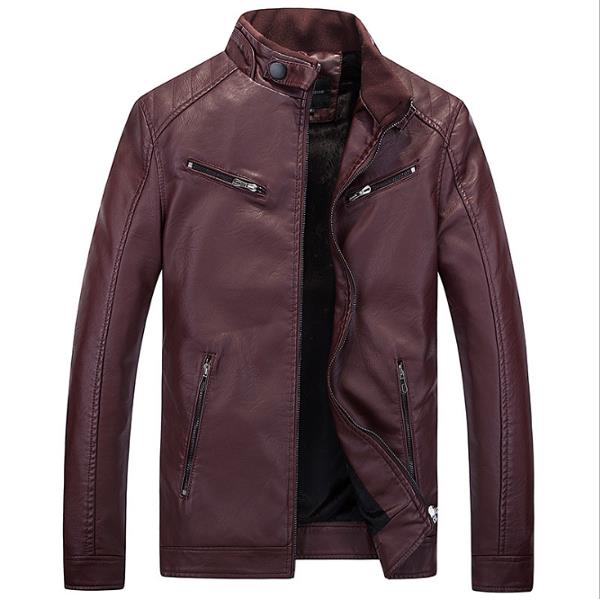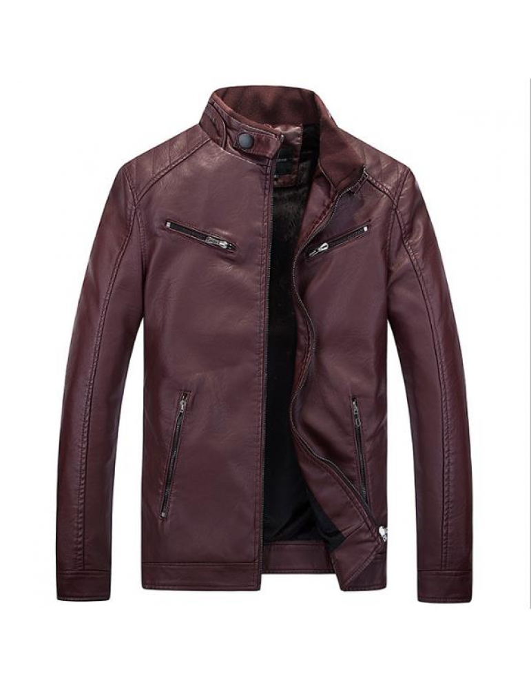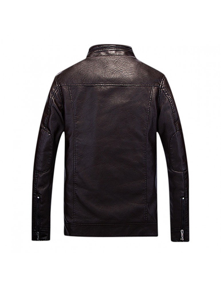 Thick Fleece Motorcycle PU Leather Double Chest Pockets Buckle Stand Collar Jacket For Men
