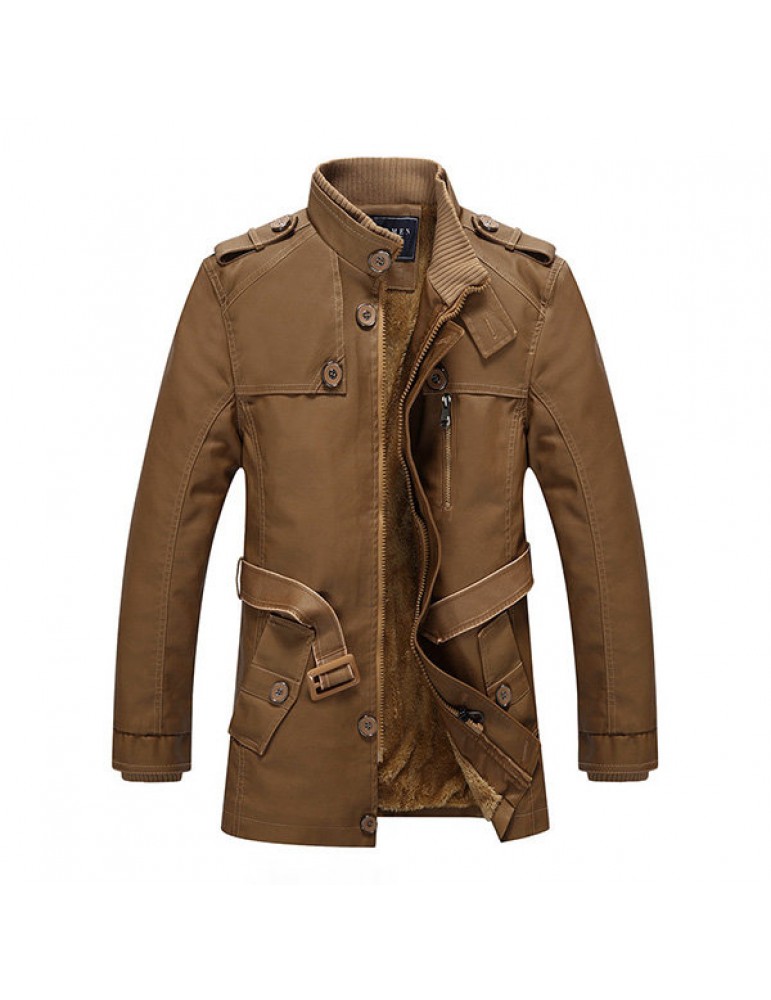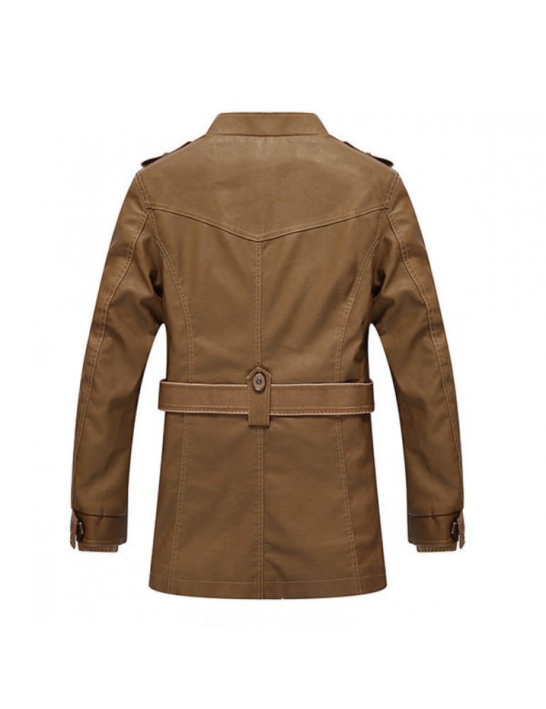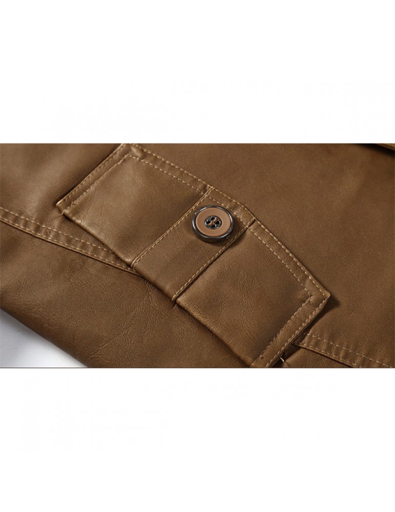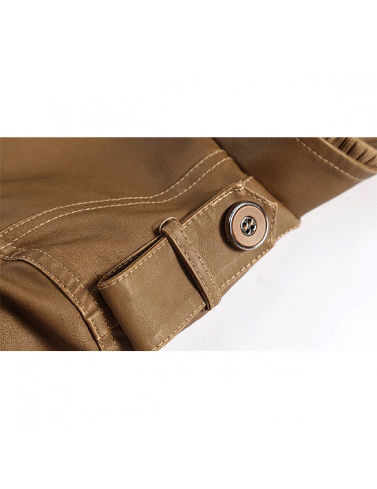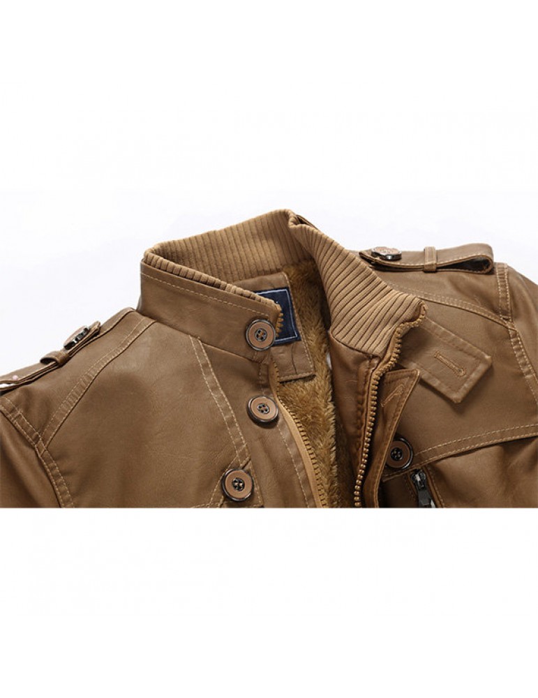 Mens Fashion Stand Collar Jacket PU Leather Fluffy Lined Warm Slim Fit Coat