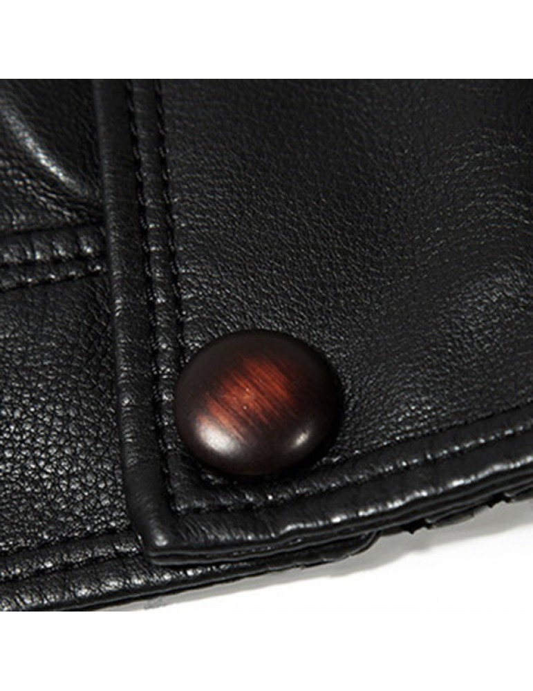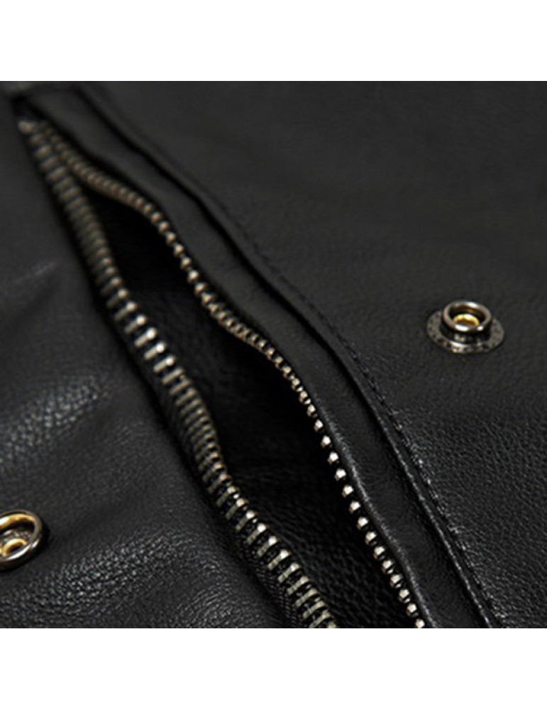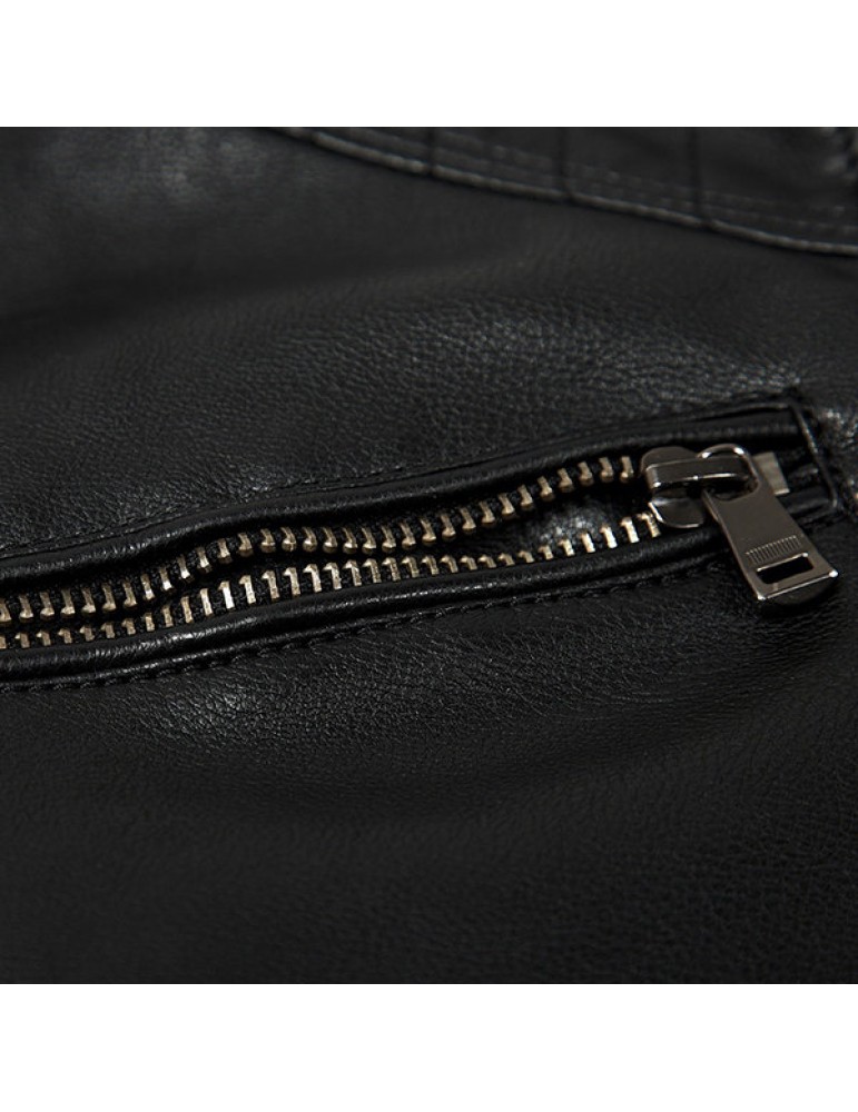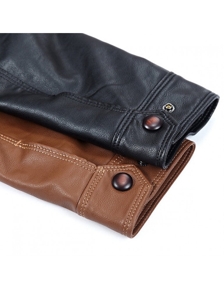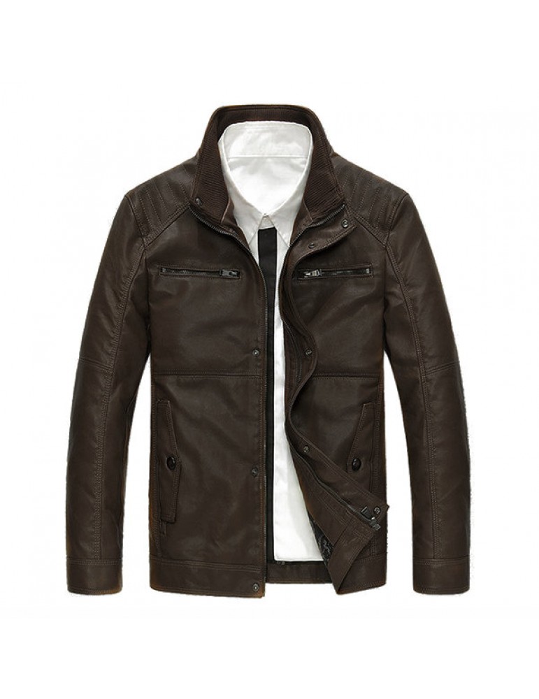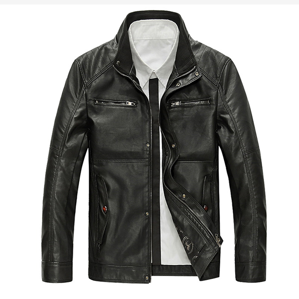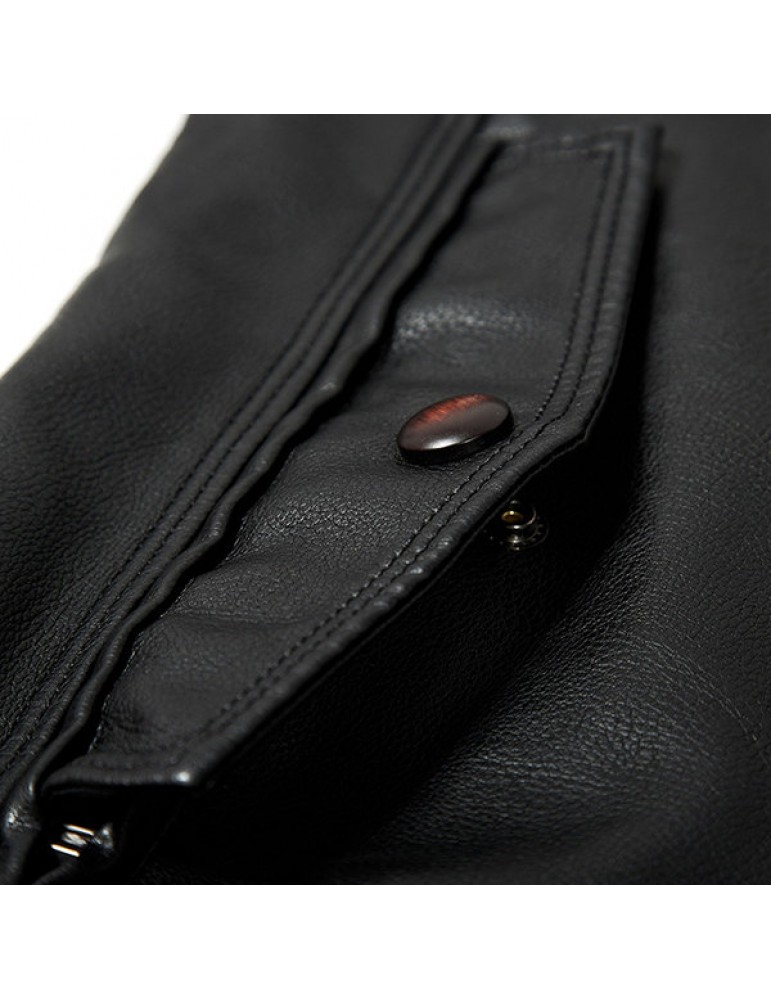 Motorcycle Style Outdoor PU Leather Multi Pockets Solid Color Jacket for Men