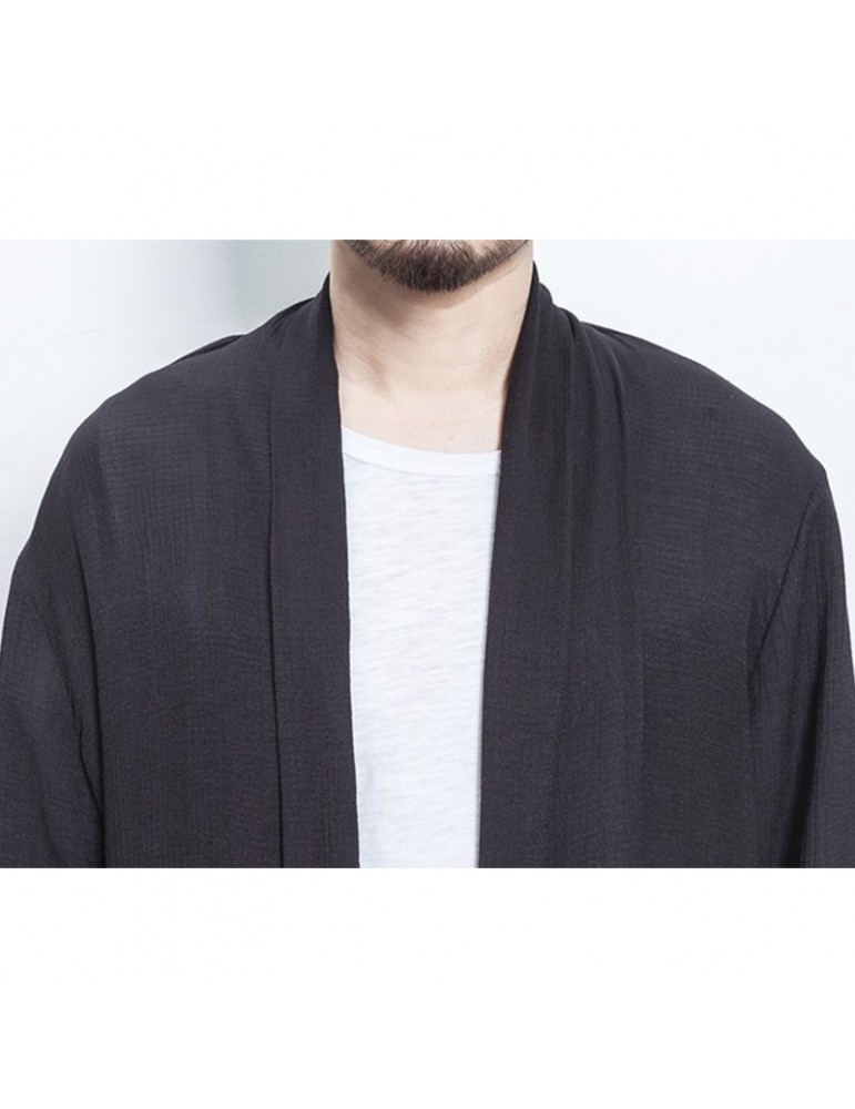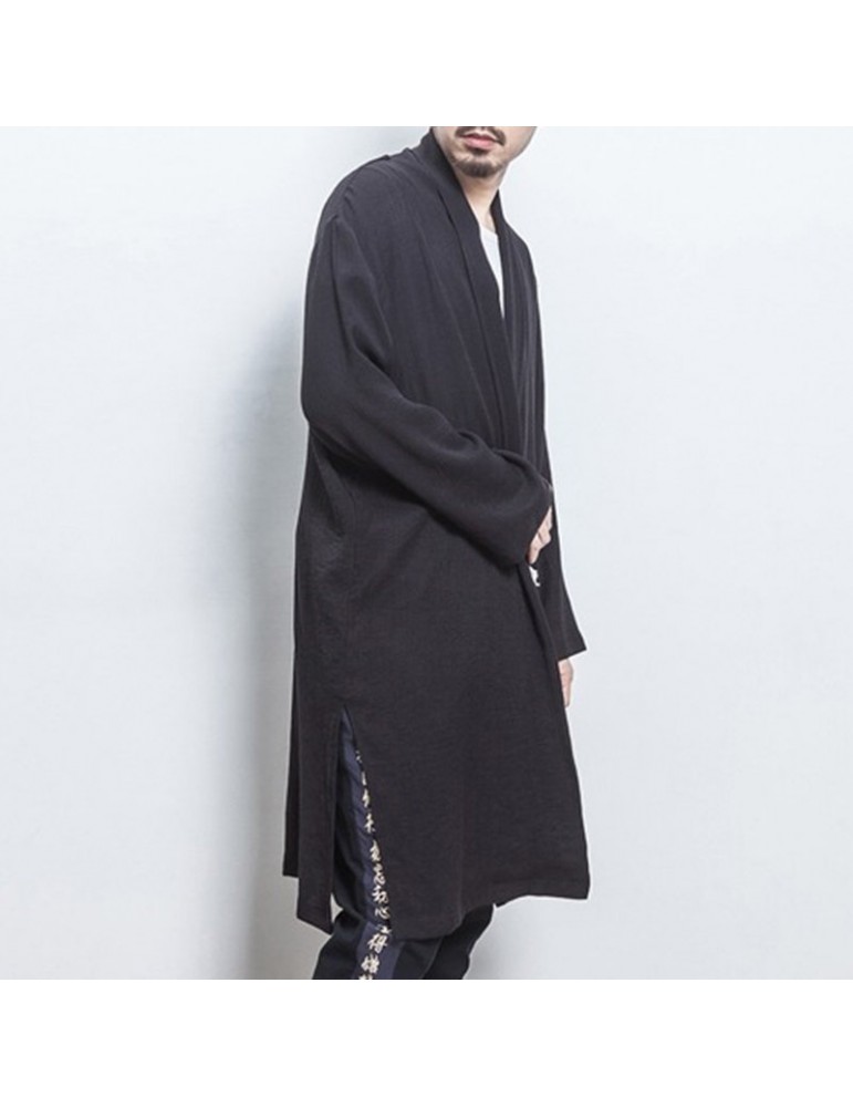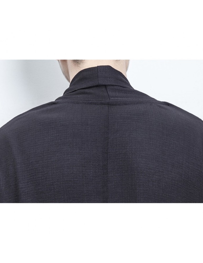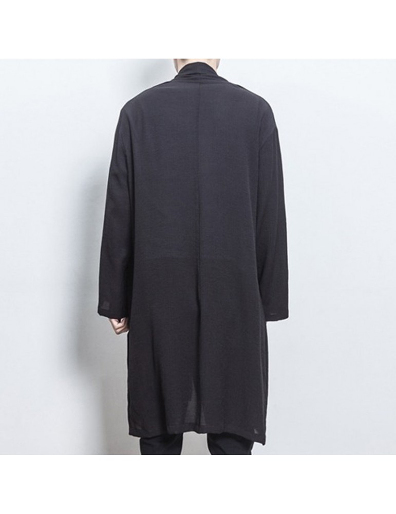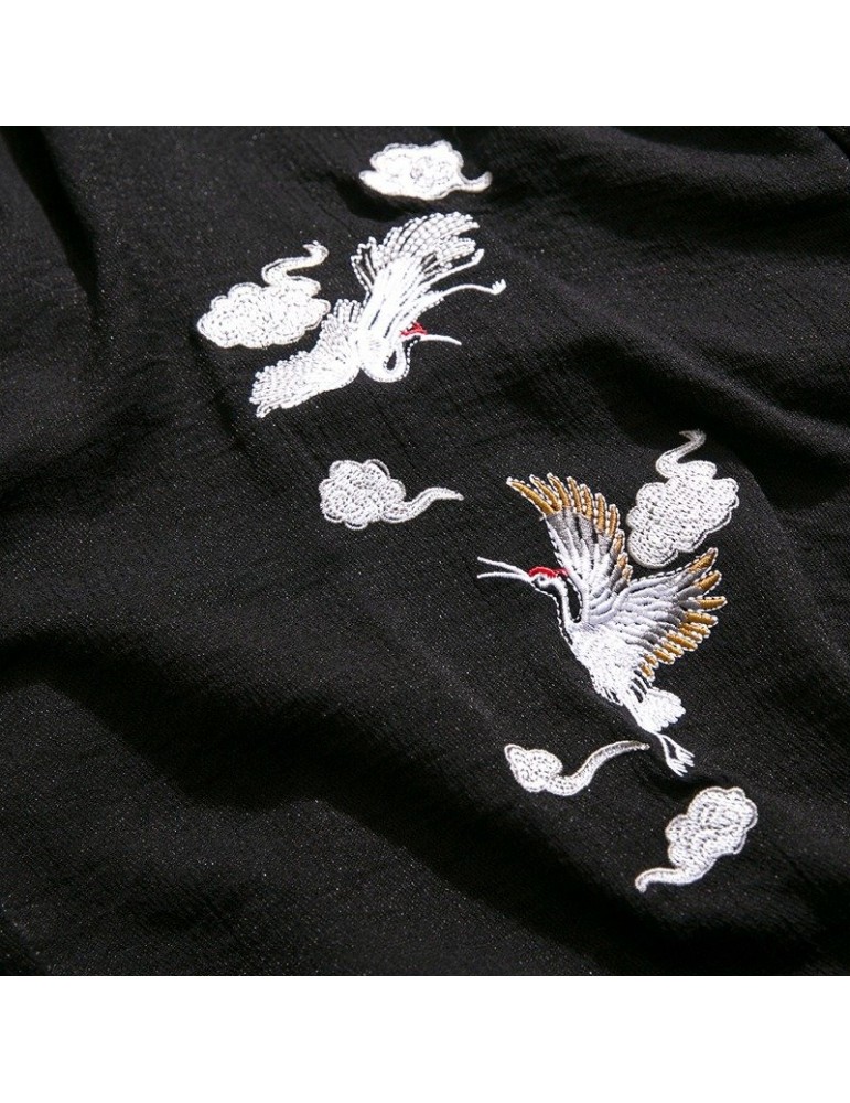 Mens Mid-long Crane Embroidered National Style Long Sleeve Open Up Black Casual Jacket