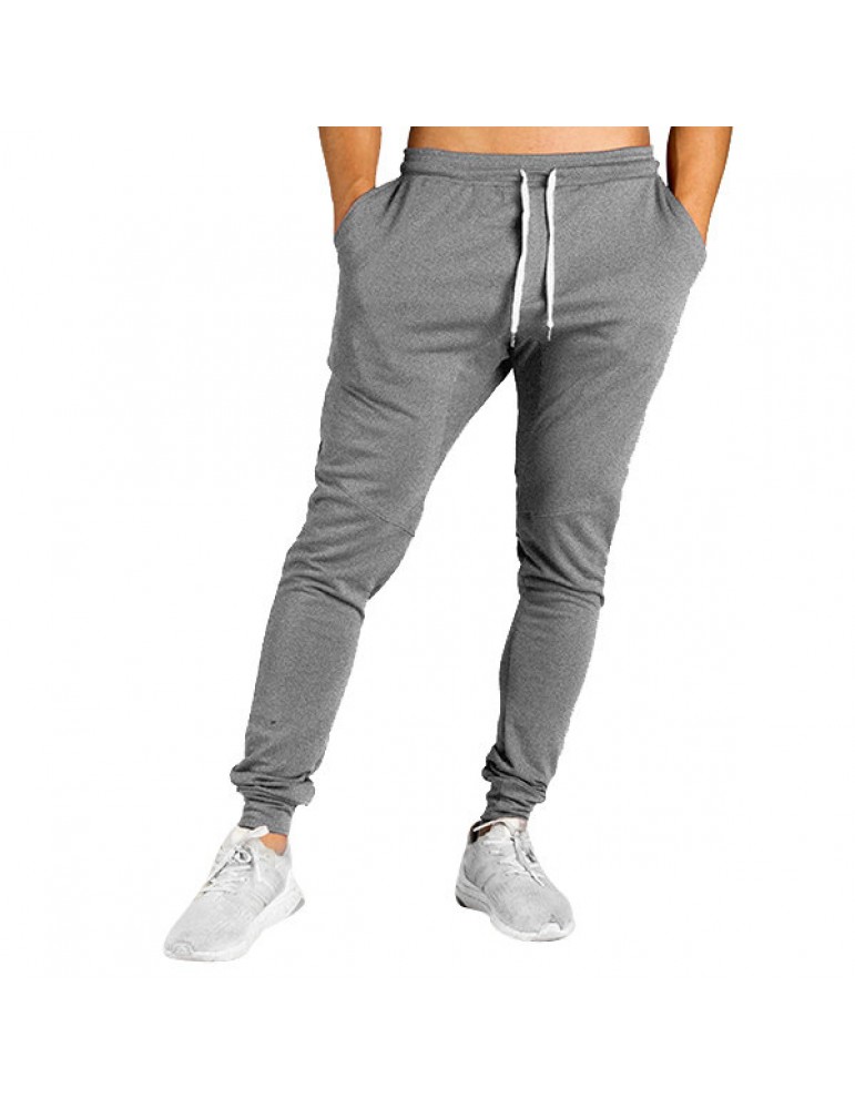 Mens Drawstring Elastic Waist Slim Fit Fitness Running Casual Sport Pants