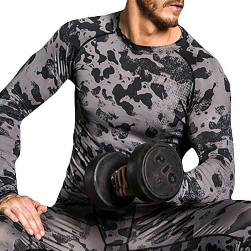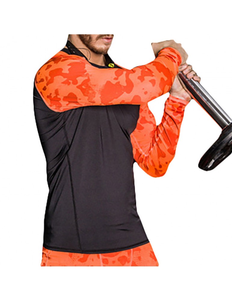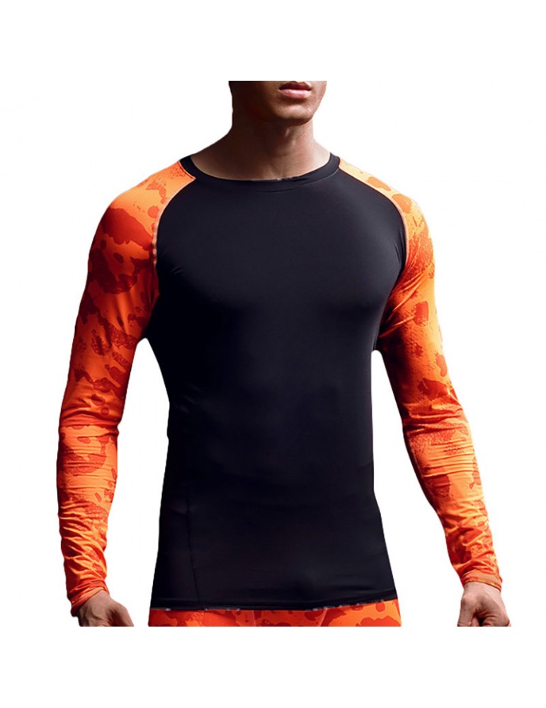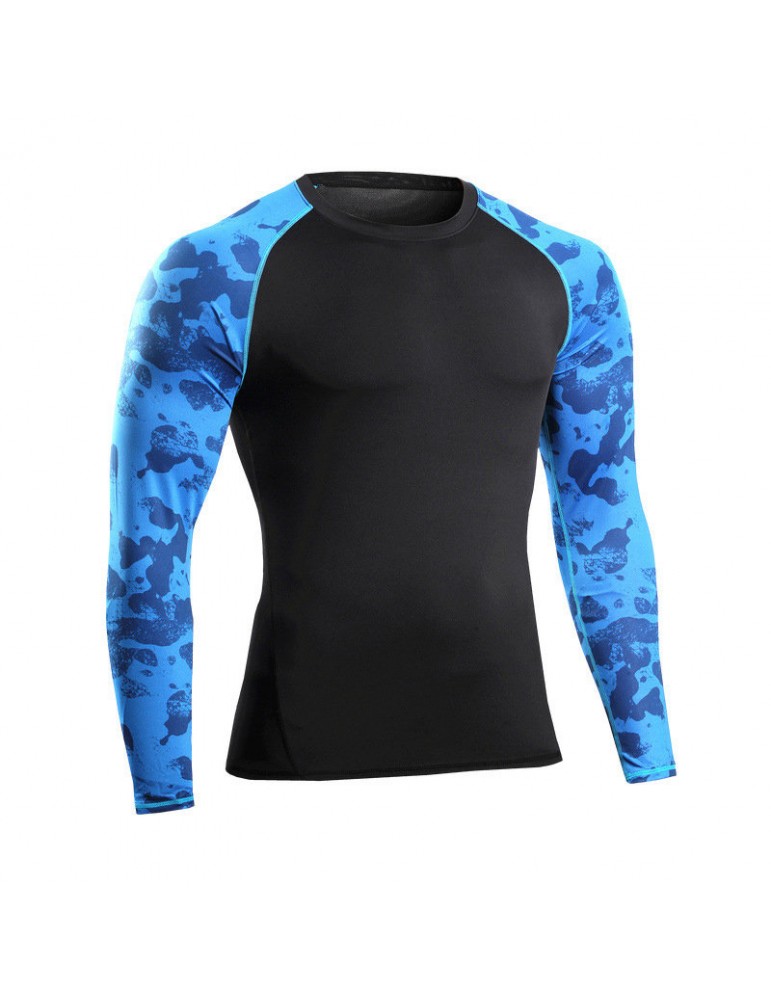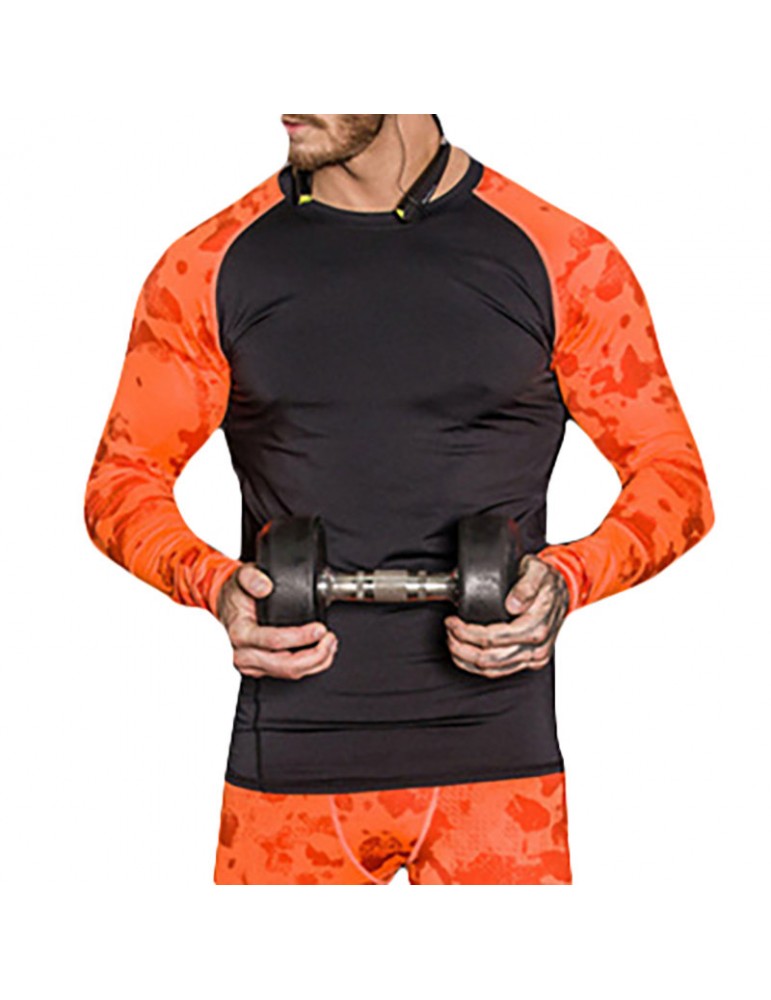Mens Running Patchwork Long Sleeve Skinny Tops Elastic Quick-drying Jogging Sport T Shirts