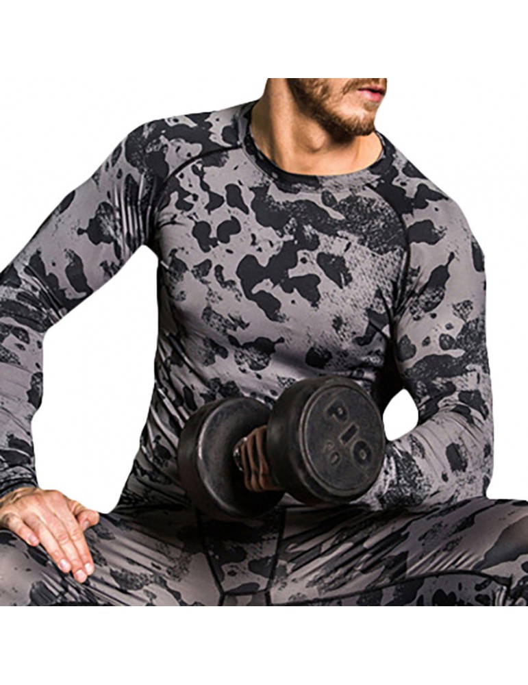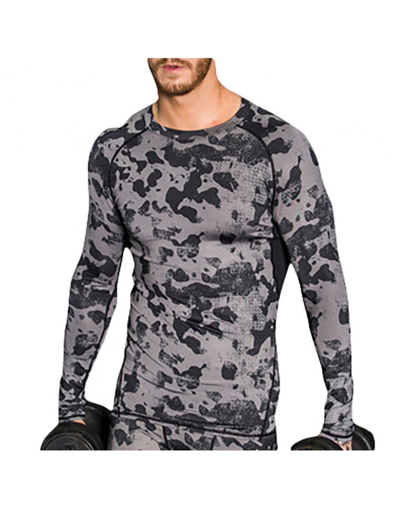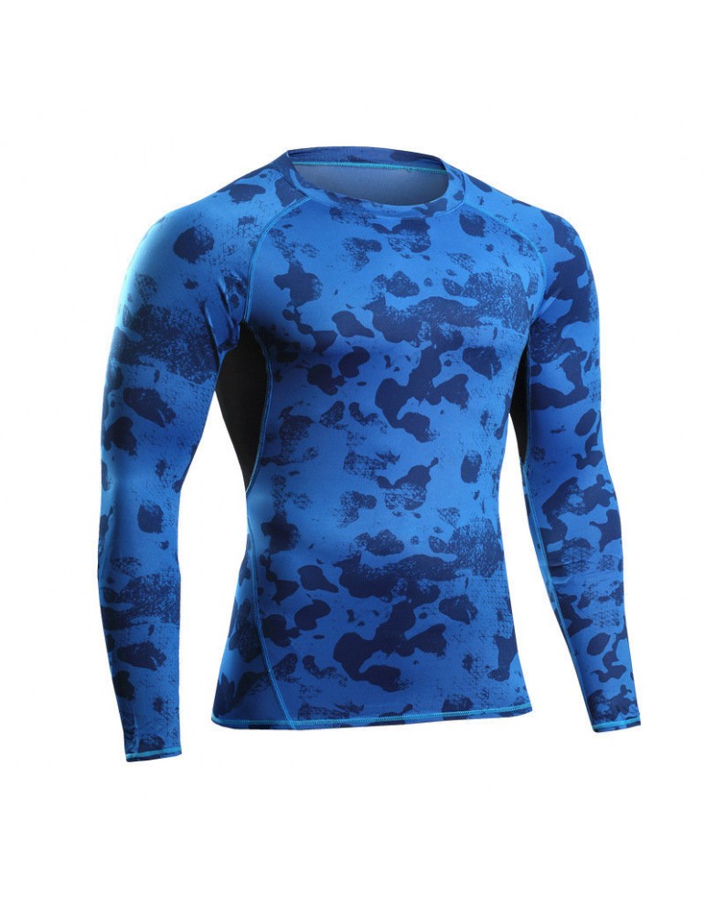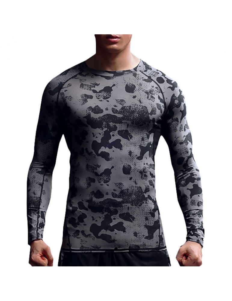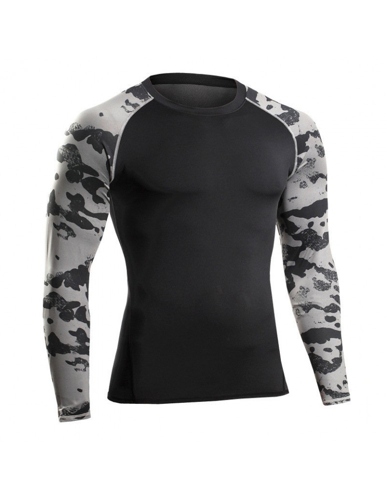 Mens Running Patchwork Long Sleeve Skinny Tops Elastic Quick-drying Jogging Sport T Shirts