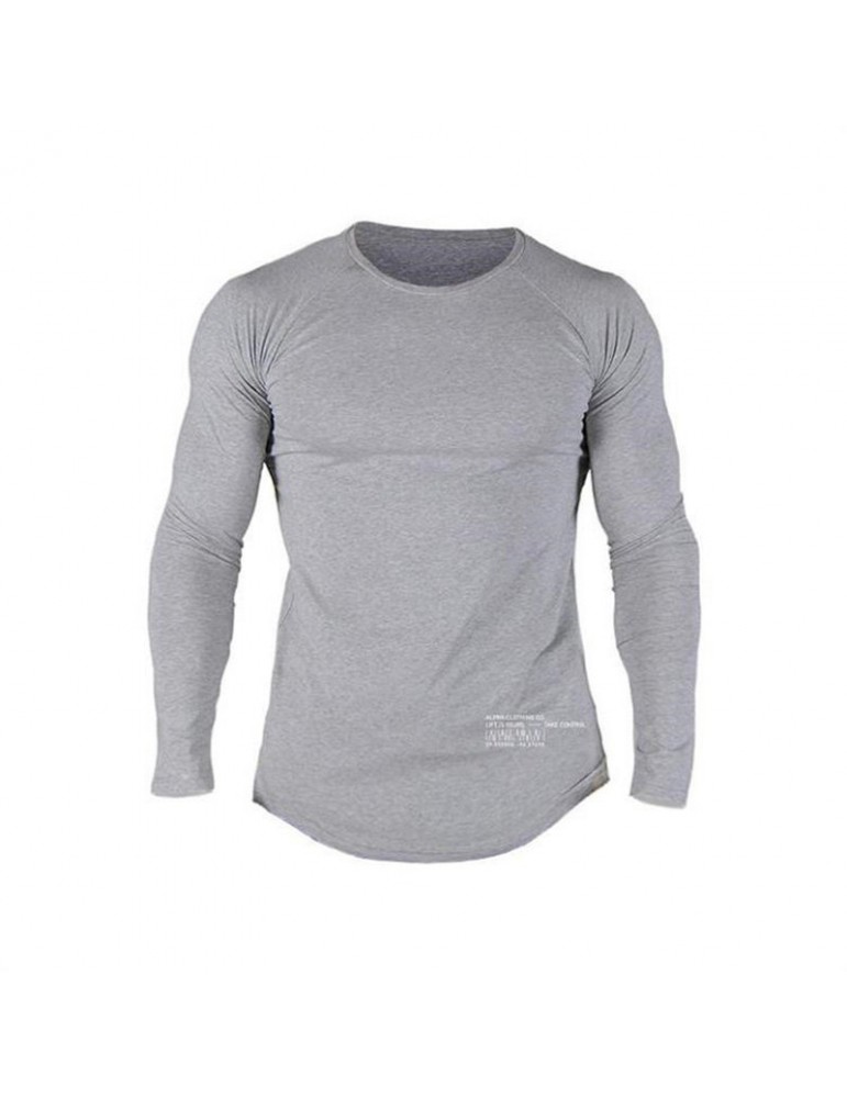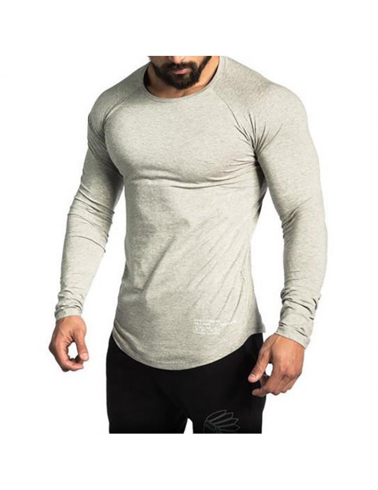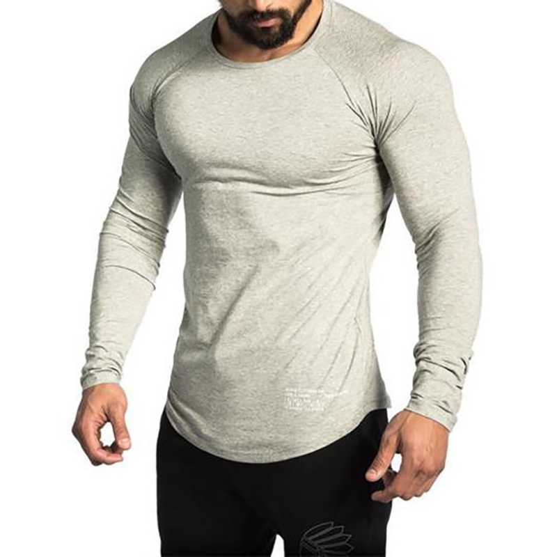 Mens Sport Cotton Breathable Tops Solid Color O-neck Long Sleeve Casual T shirt