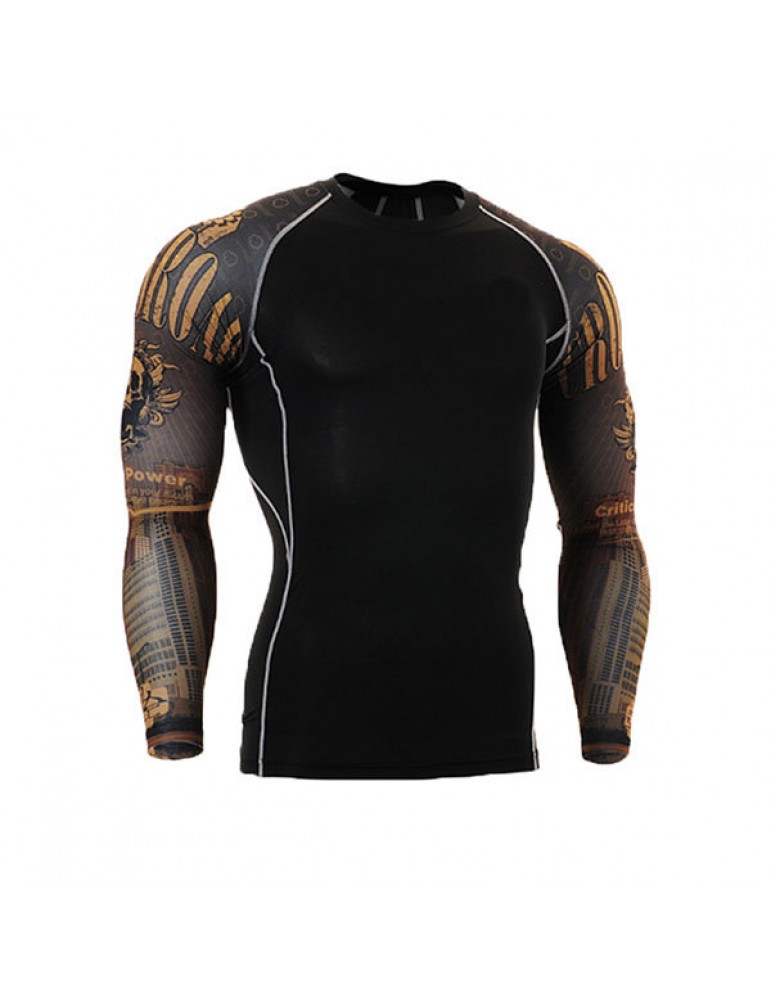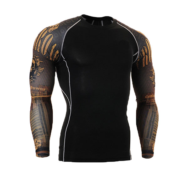 Mens Breathable Elastic Tight Fitting Bodybuilding Sport Quick-Dry Long Sleeve T-Shirt