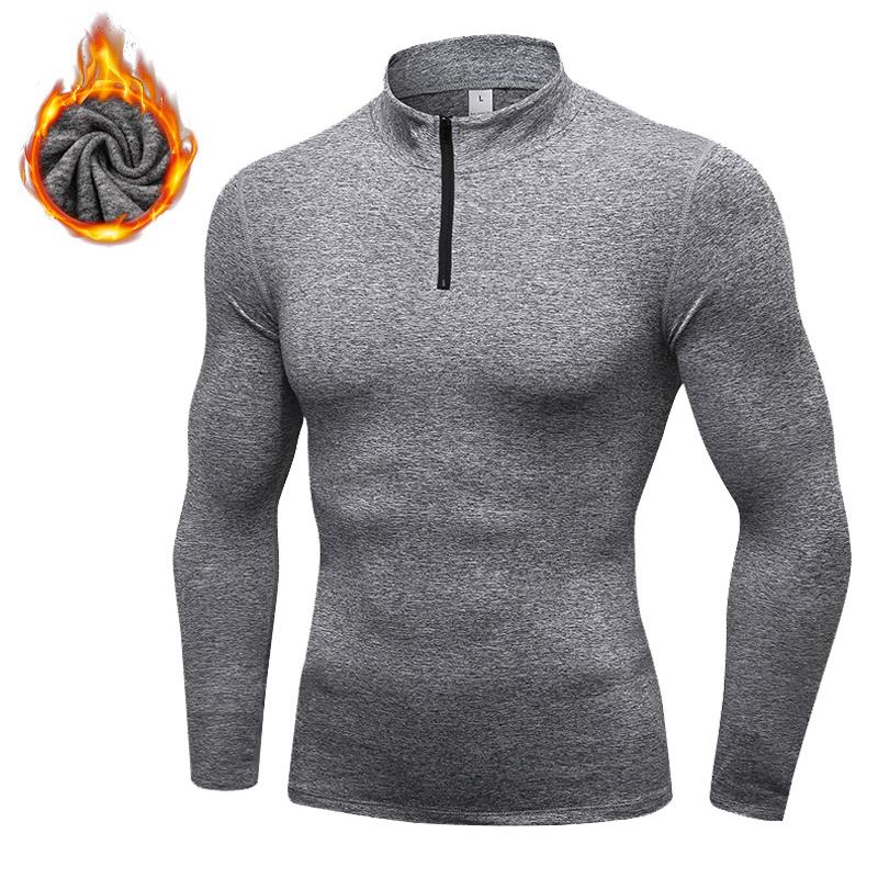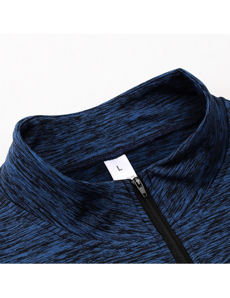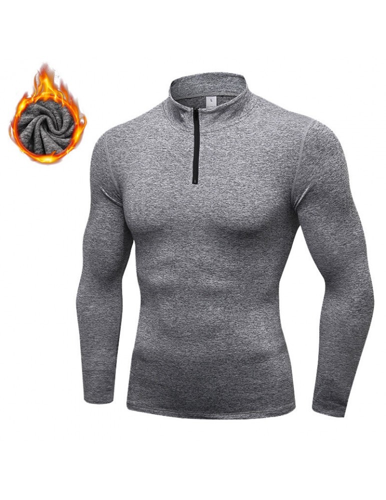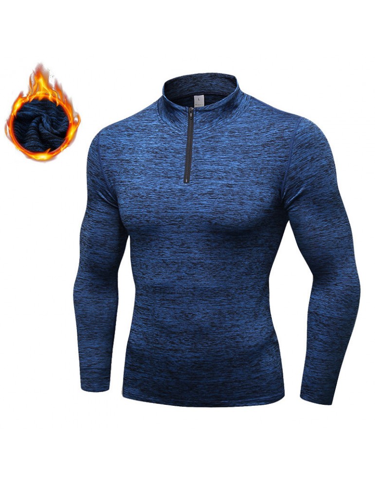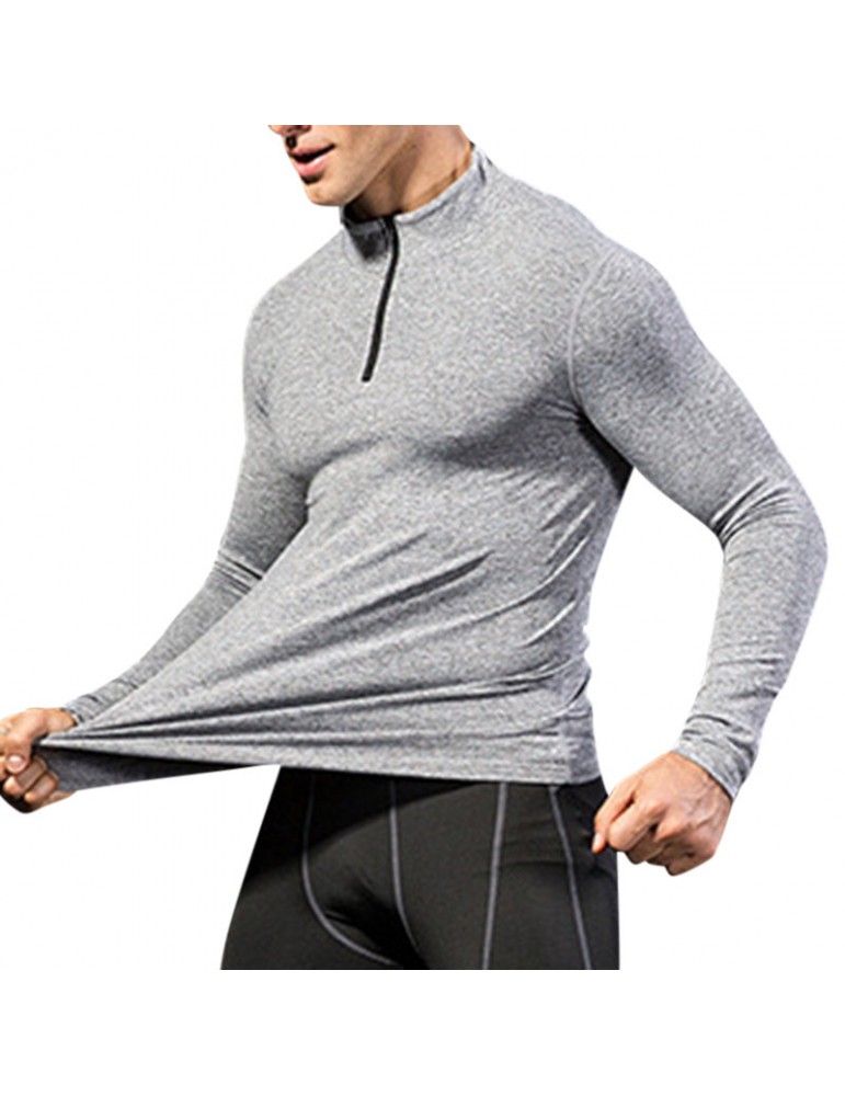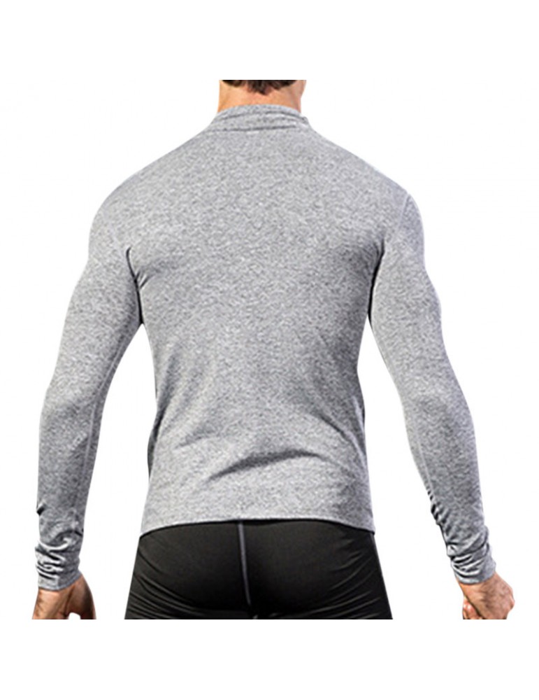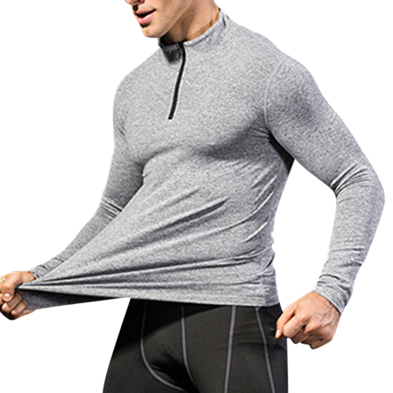Men Fleece Long Sleeve Running Collar Half Zip Quick Dry Sport Solid Color T-shirt Tops