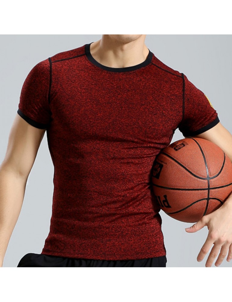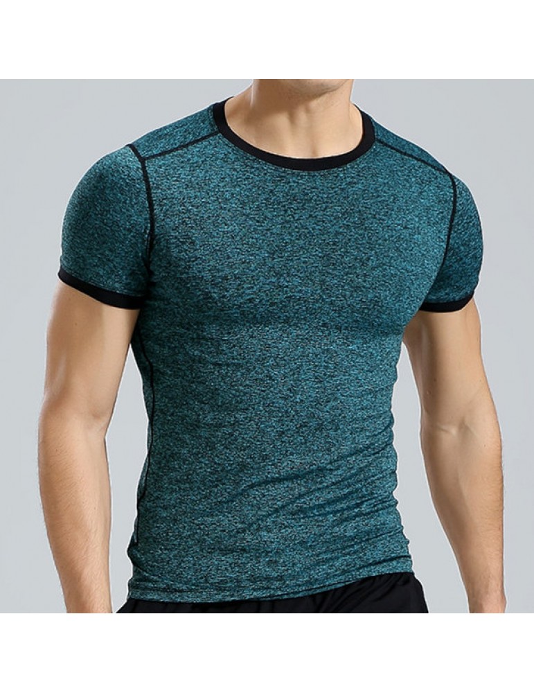 Mens Quick-drying Skinny Fit Solid Color Tops Fitness Training Jogging Sport T-shirt