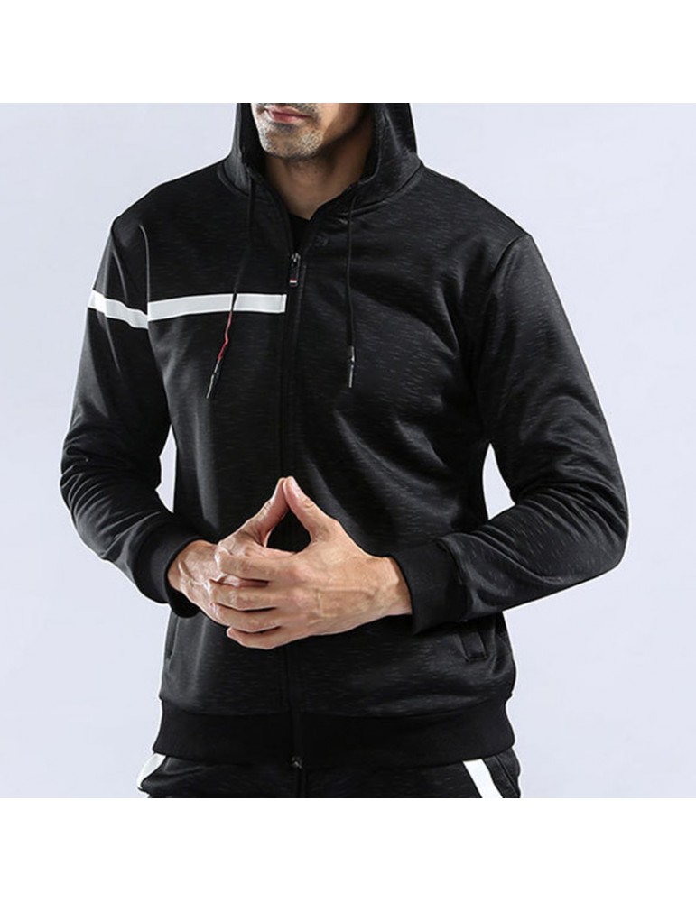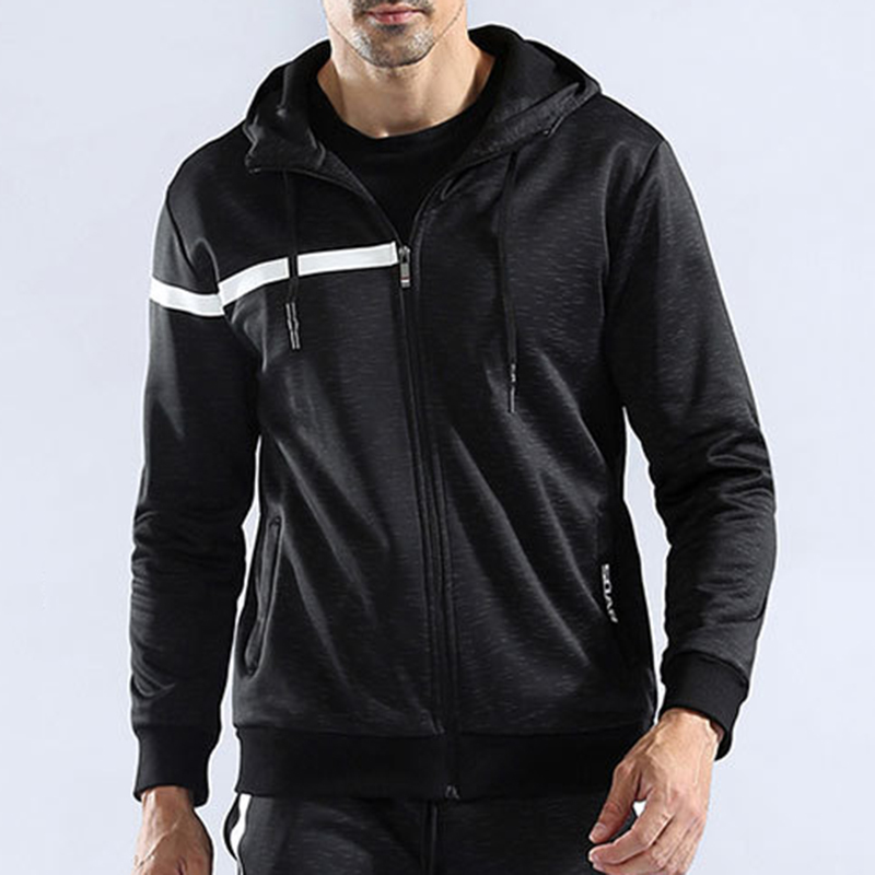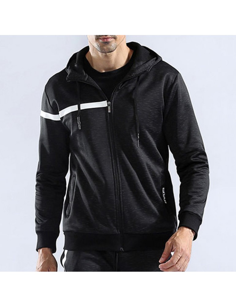 Mens Sport Zip Up Hooded Tops Thick Warm Solid Color Casual Hoodies