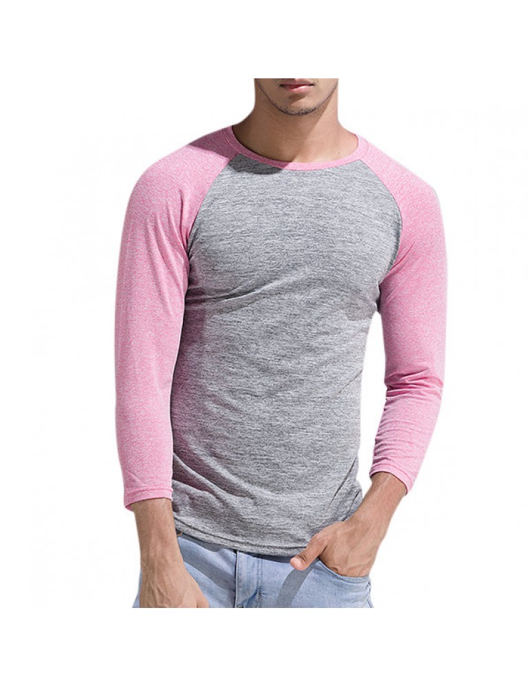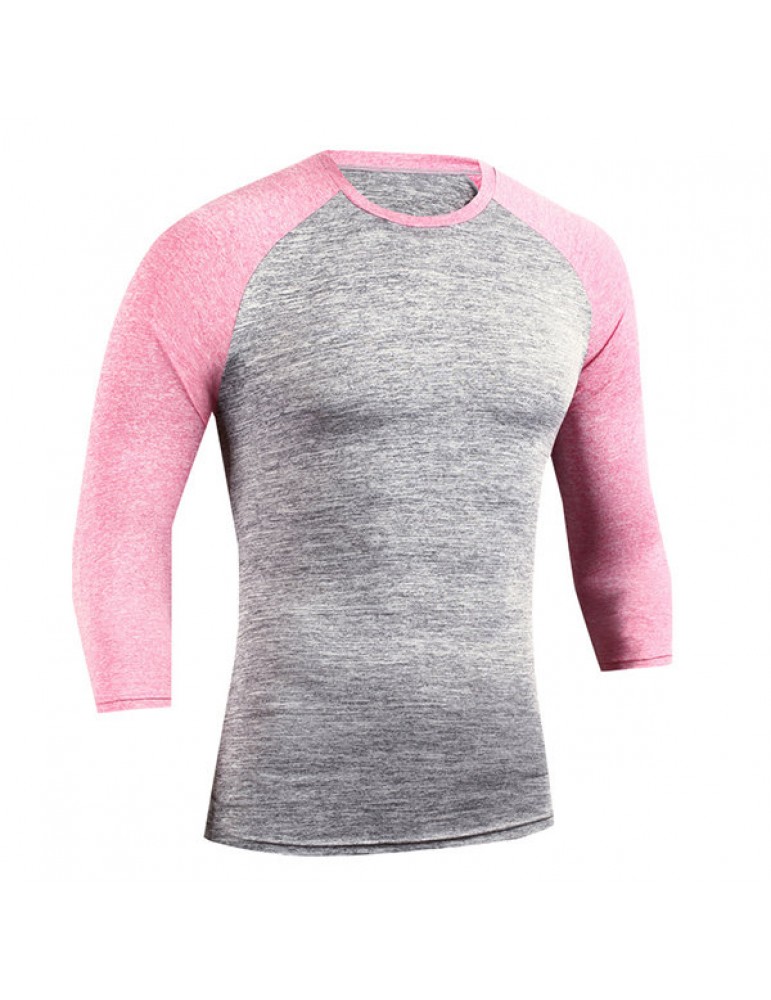 Mens Quick-drying Hit Color Fitness Trainning Sport Three Quarter Sleeve Casual T-shirt