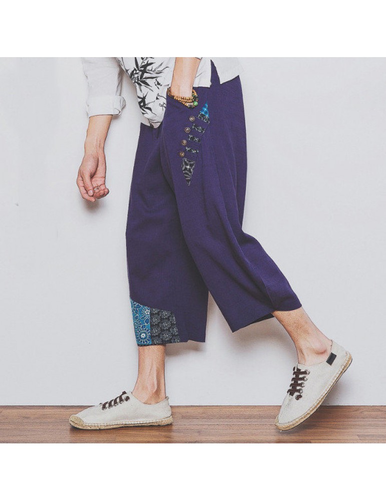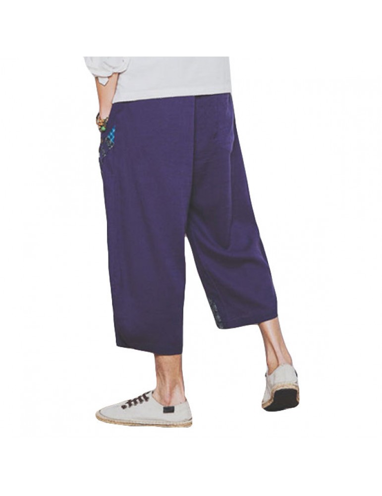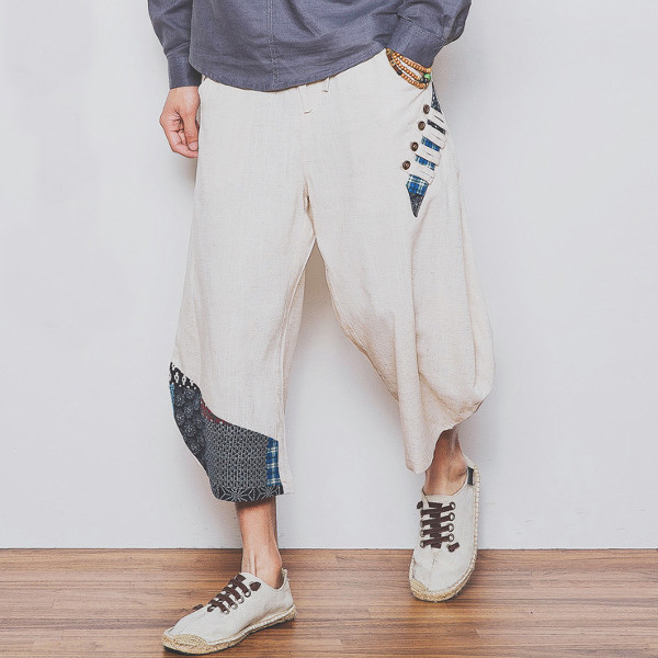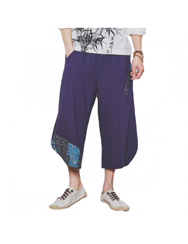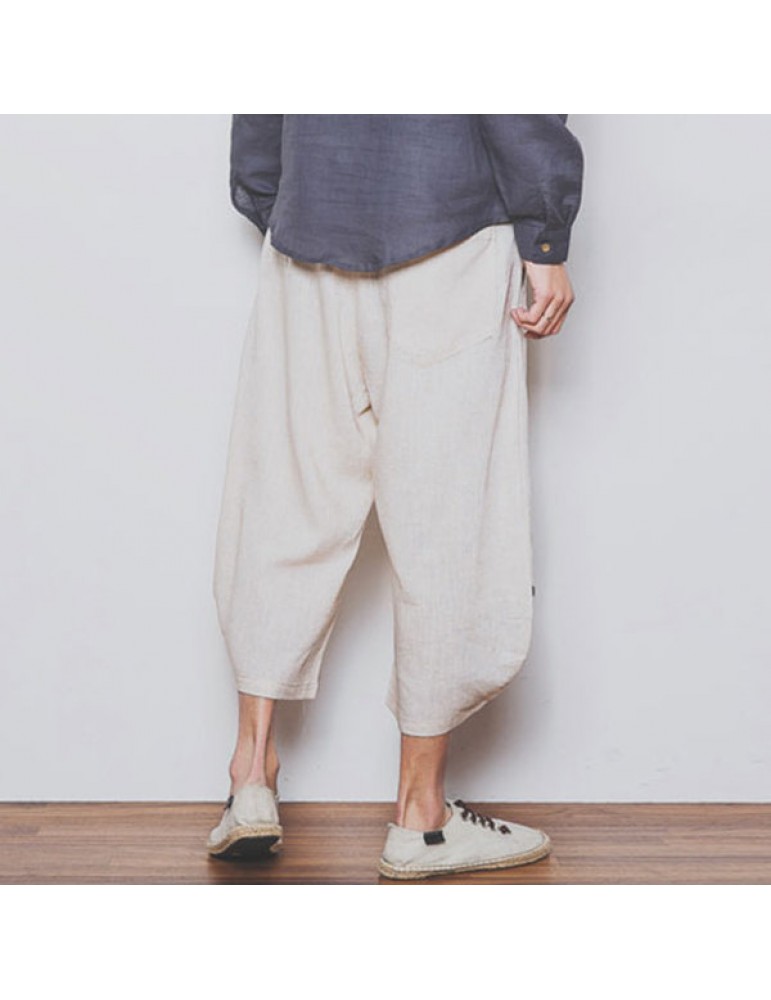 Mens Breathable Cotton Linen Calf Length Harem Pants Baggy Loose Drawstring Casual Shorts