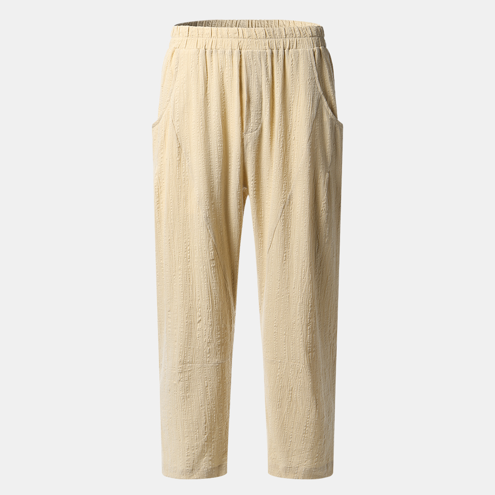 Mens Cotton Linen National Style Breathable Elastic Casual Straight Pants