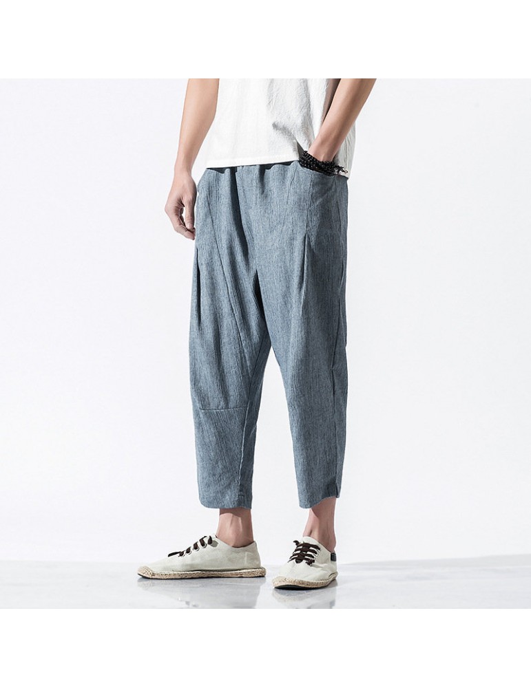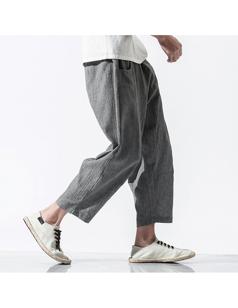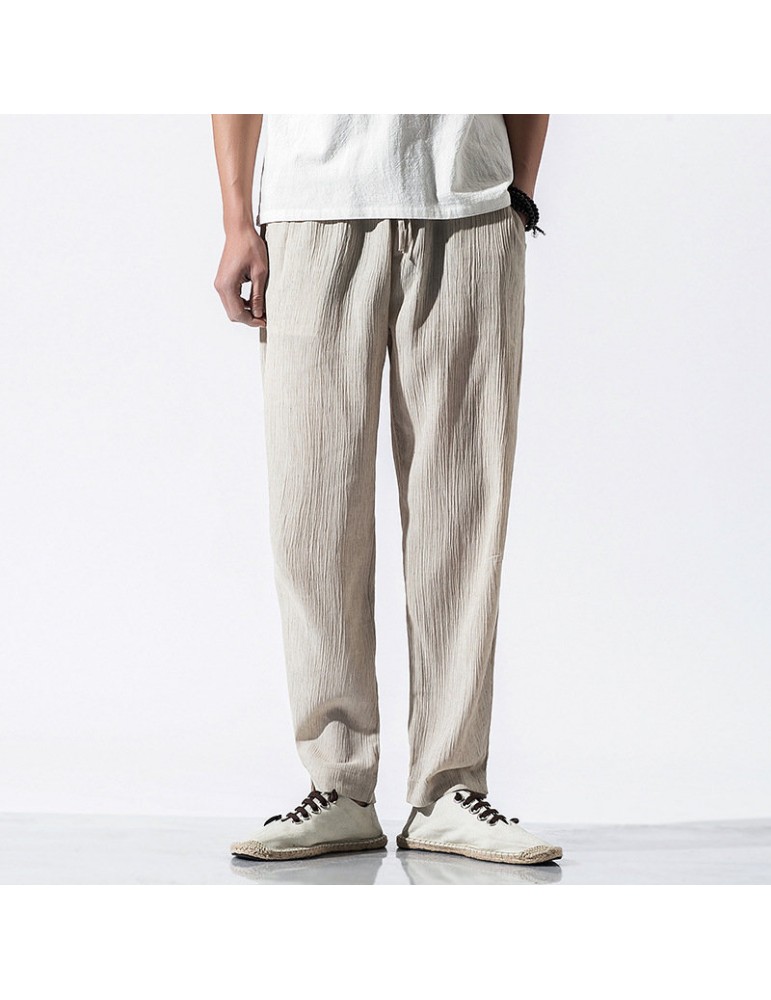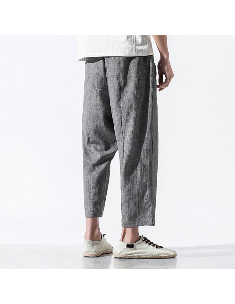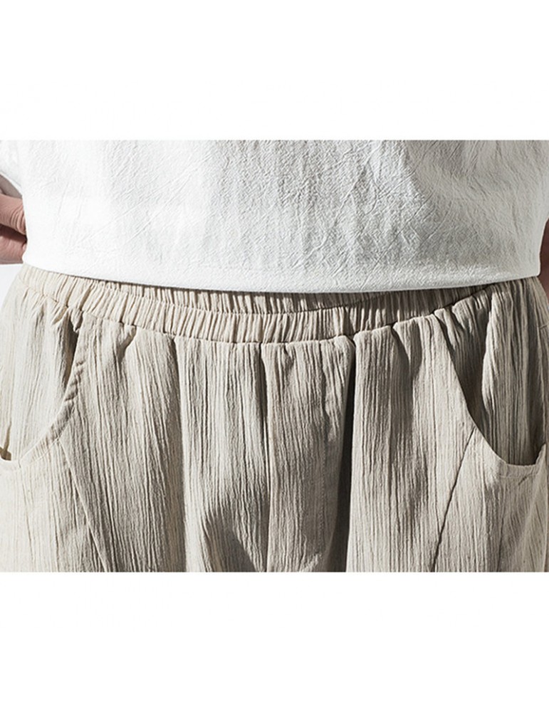 Mens Chinese Style Retro Casual Pants Cotton Linen Loose Beathable Pants