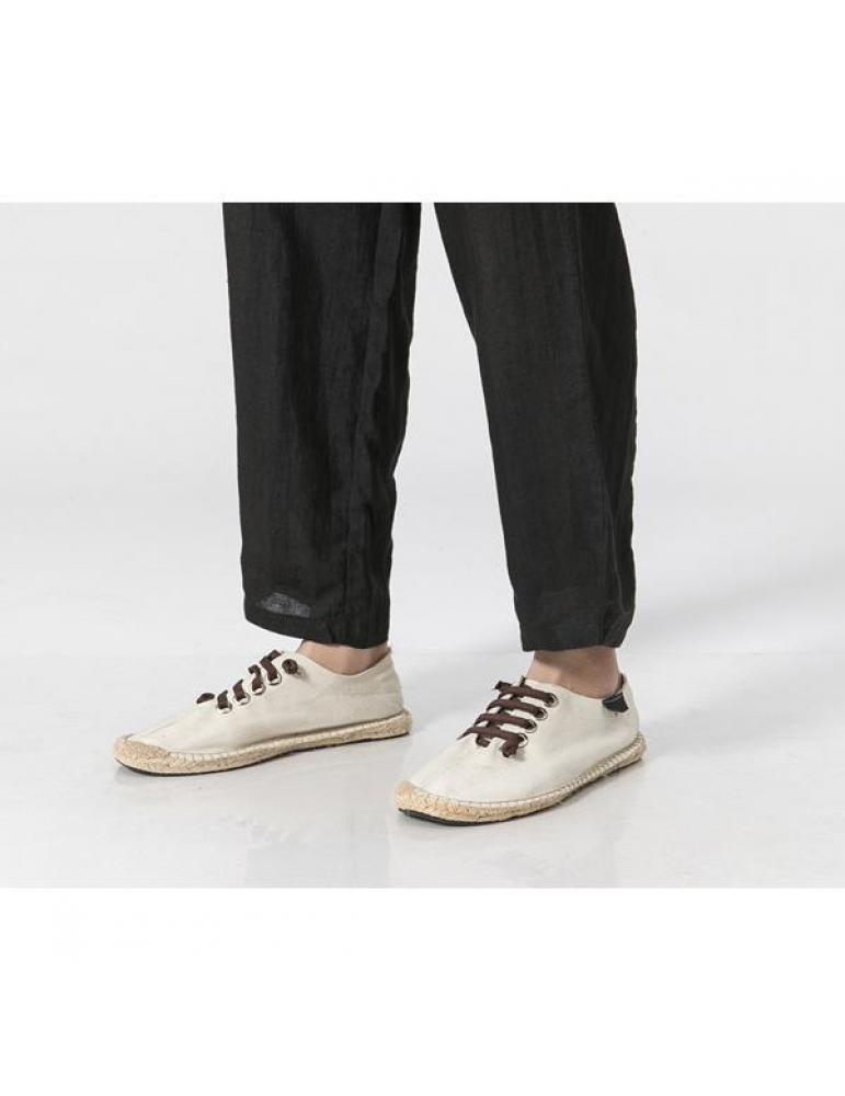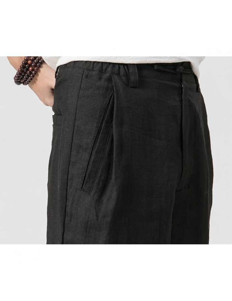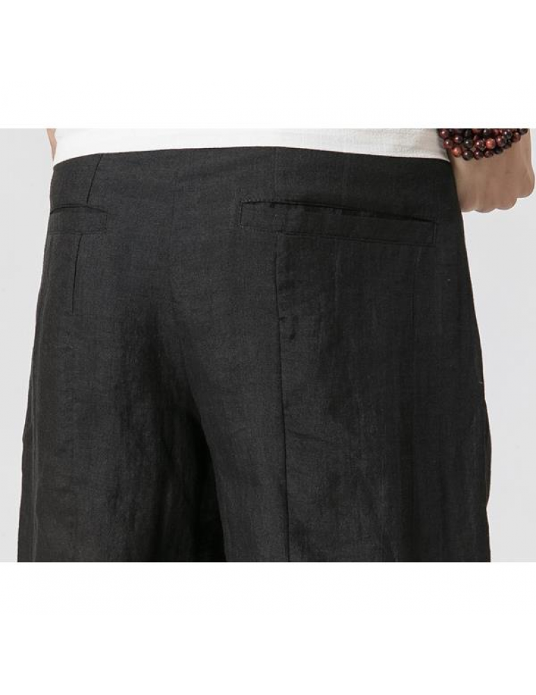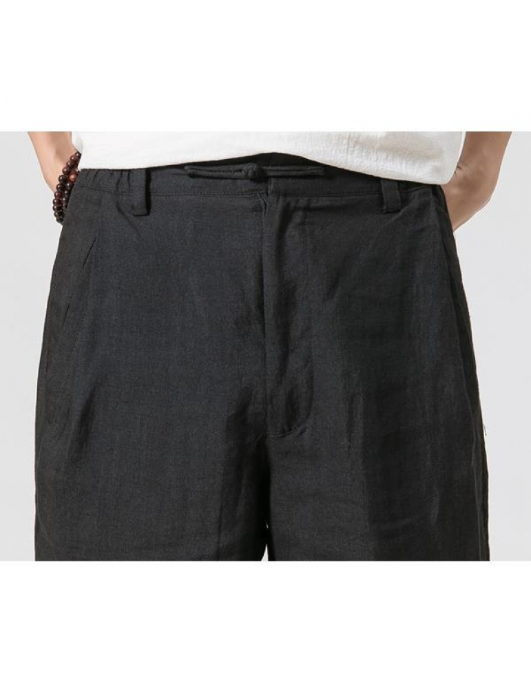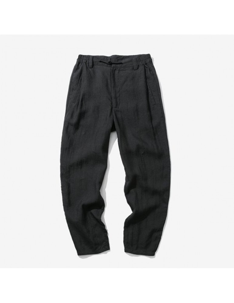 Mens Cotton Linen Breathable Loose Pants Zip Fly Elastic Waist Solid Color Casual Pants