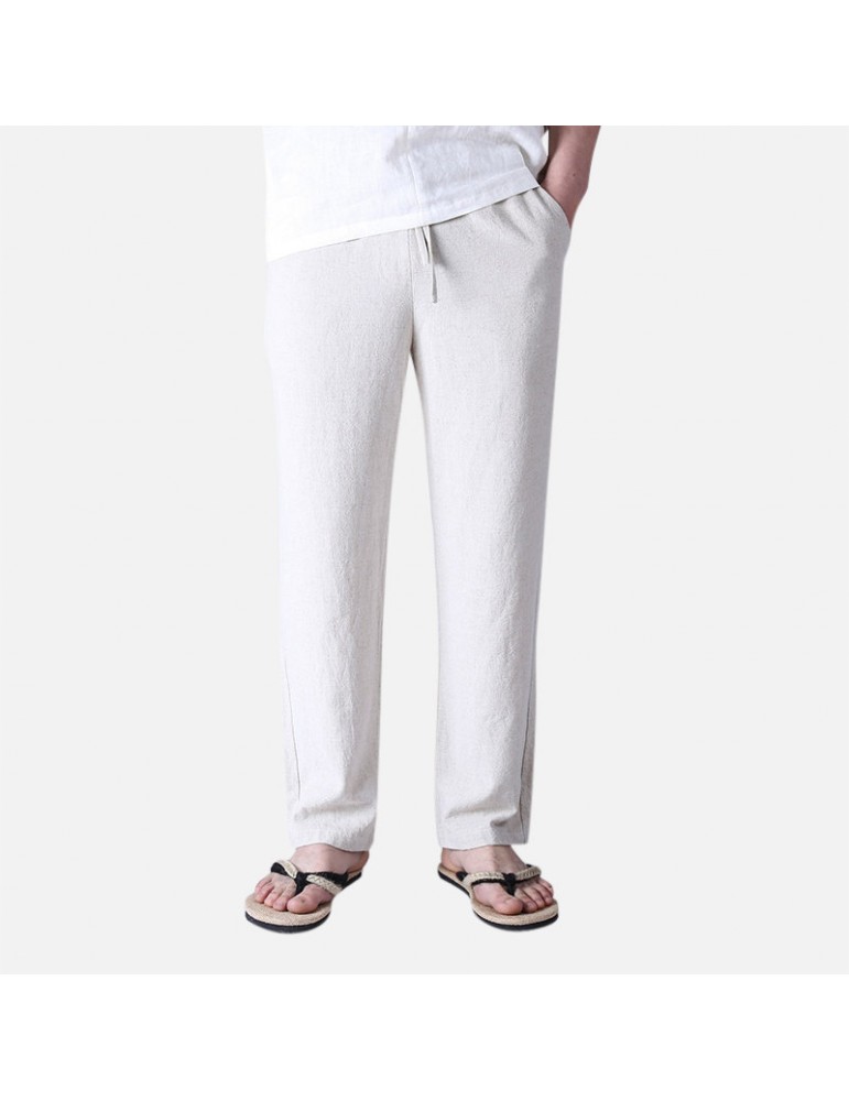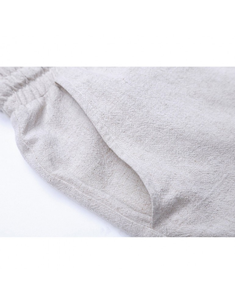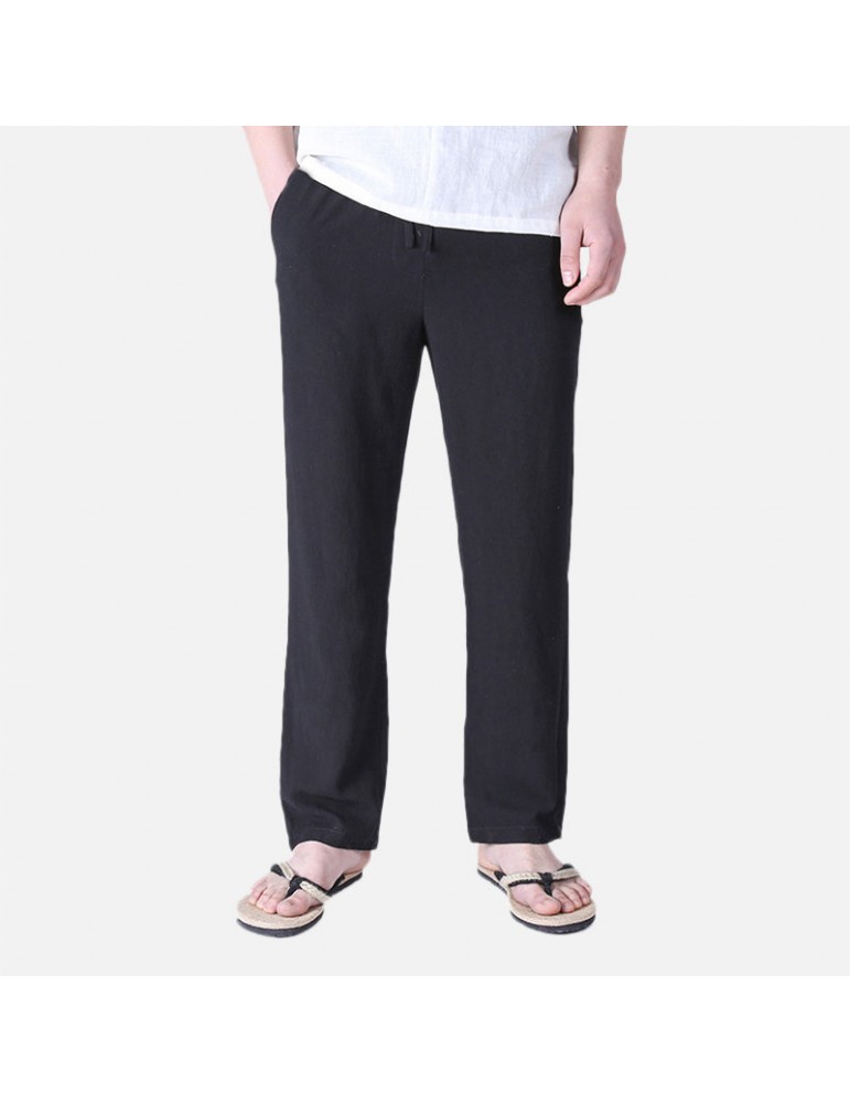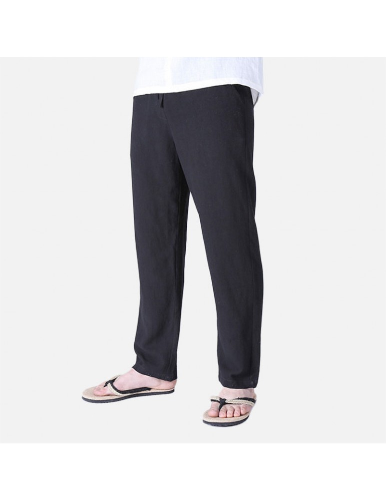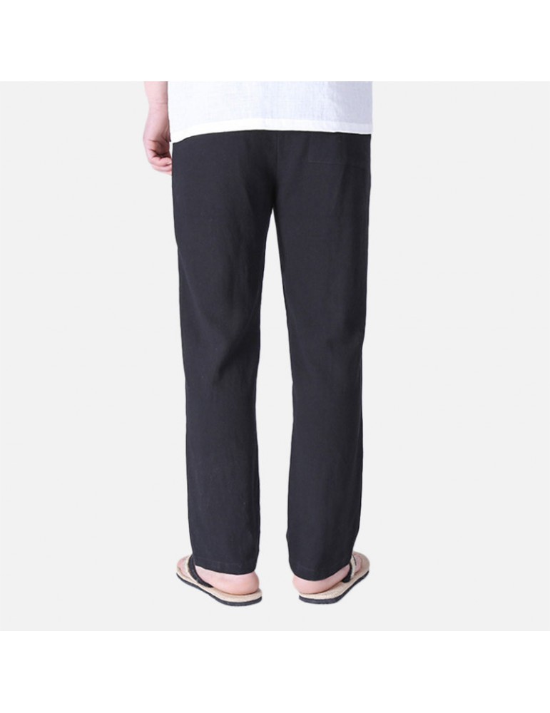 Mens Casual Loose Straight Pants Elastic Waist Retro Cotton Pants